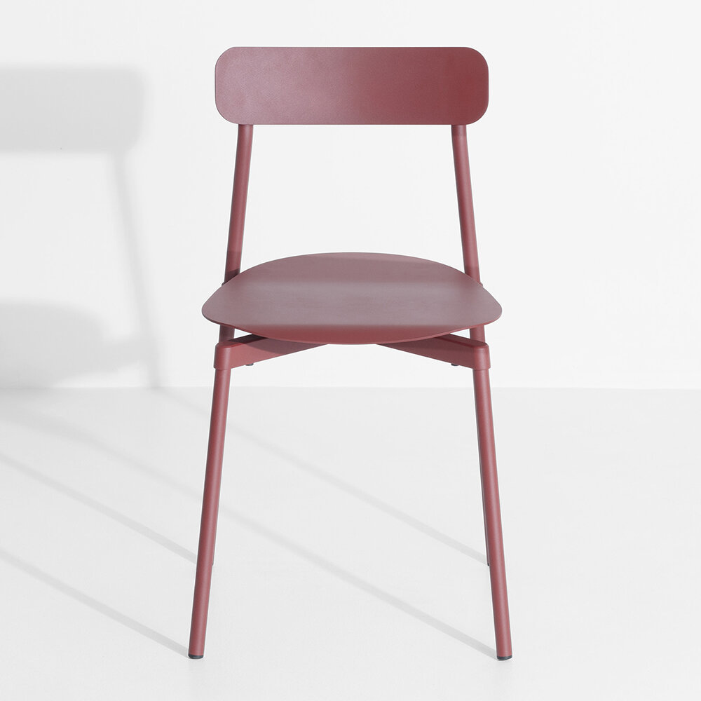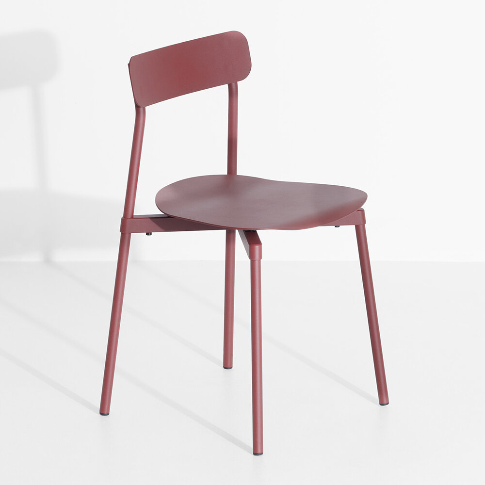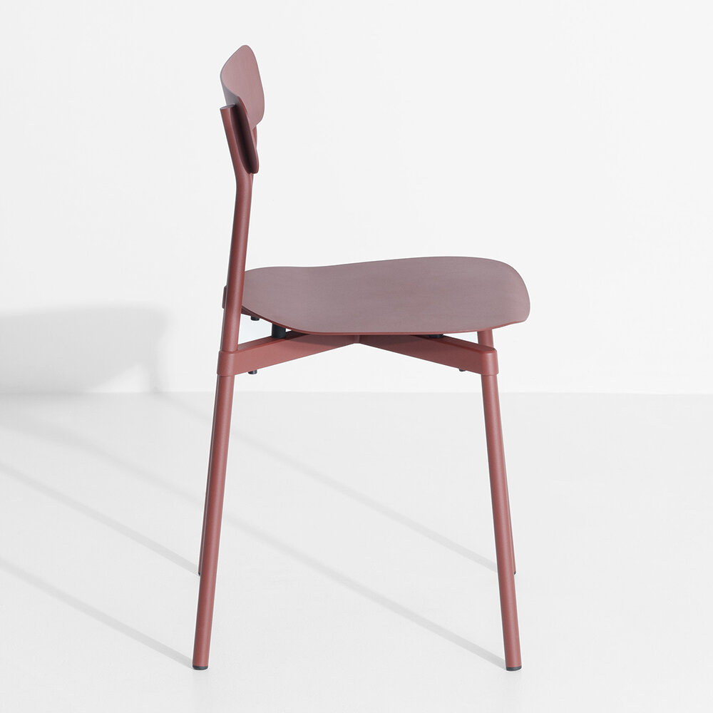 Comfort meets style and practicality with the Fromme dining chair from Petite Friture. Crafted from aluminium and finished with matte grained powder coating in a range of colours, this chair is suitable for both indoor and outdoor use. Designed by Tom Chung, it was inspired by his frequent uphill climbs on his bike, as he looked to recreate the technical performance as he climbed the Fromme Mountain outside of Vancouver. This chair is distinguished by its pure lines, and thanks to the absorbers placed under the seat it has a unique soft and very comfortable flexibility. Key features: * Outdoor suitable dining chair * Material: aluminium * Dimensions: L45xD47xH78cm * Seat height: 45cm * Finished with matte grained powder coating in brown/red * Anti-UV coating for outdoor use * Absorbers under the seat give soft & comfortable flexibility * Designed Tom Chung