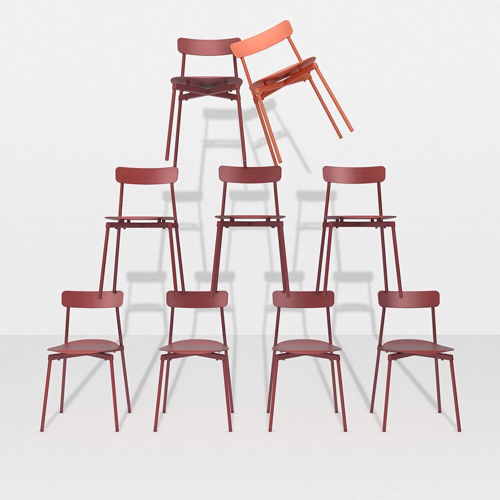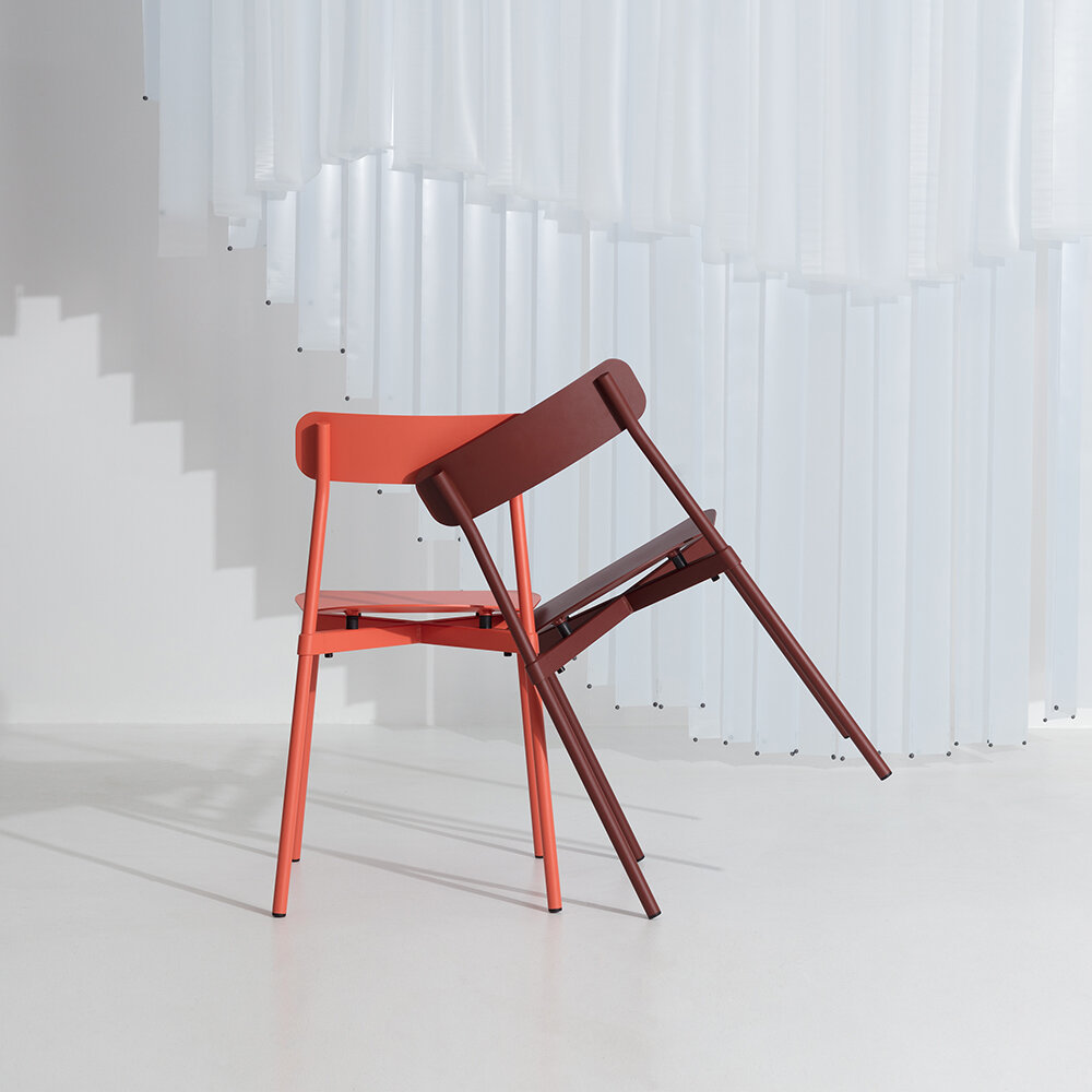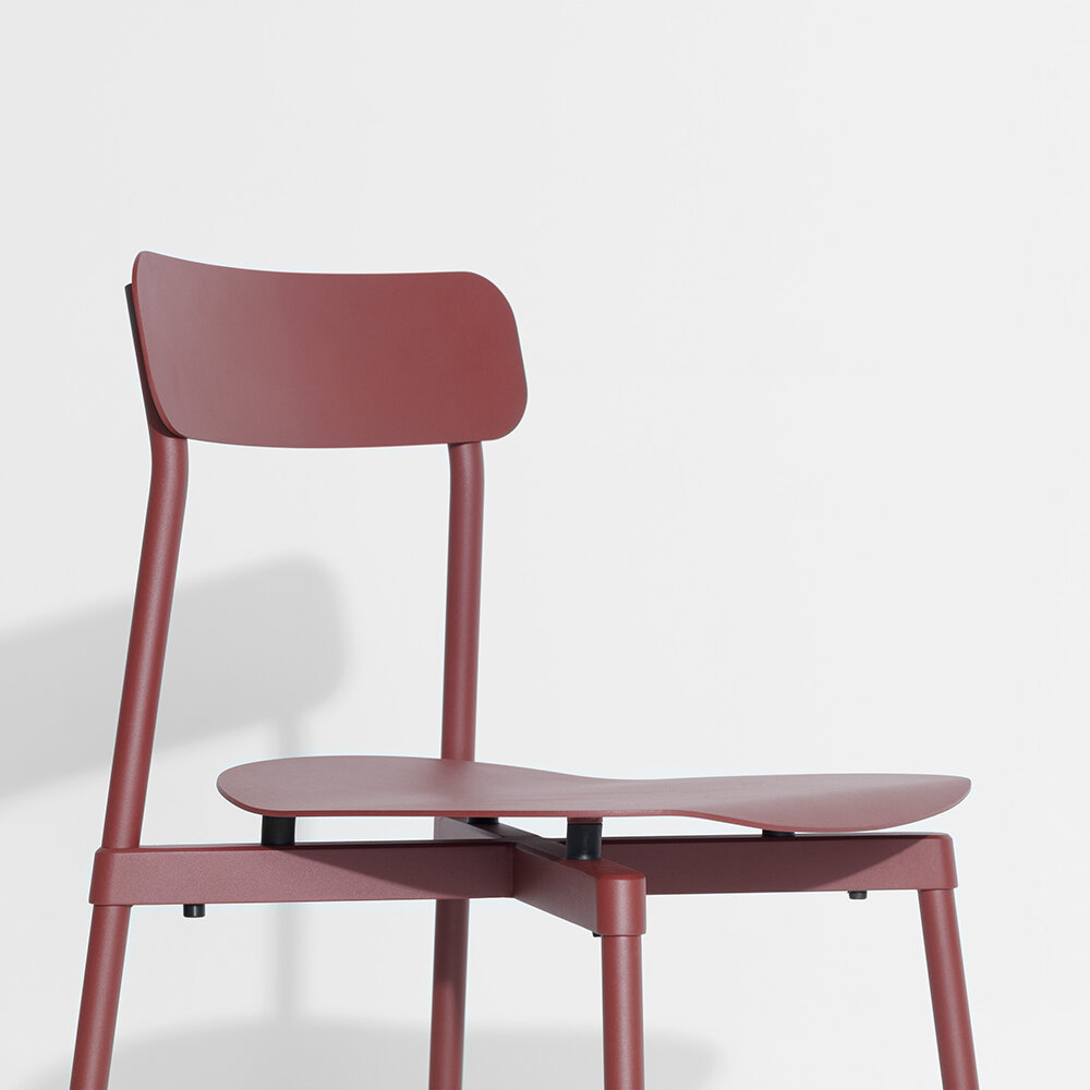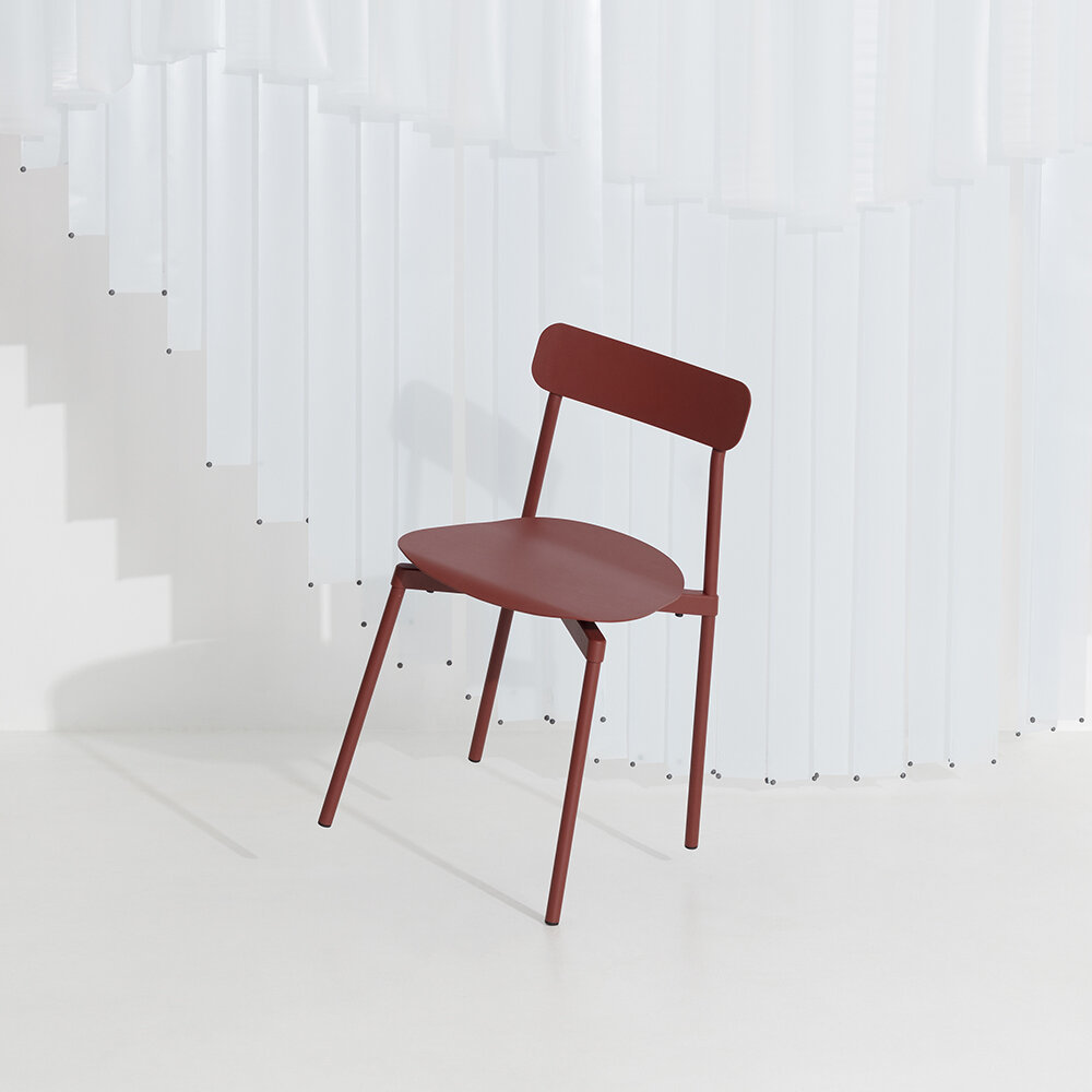 Comfort meets style and practicality with the Fromme dining chair from Petite Friture. Crafted from aluminium and finished with matte grained powder coating in a range of colours, this chair is suitable for both indoor and outdoor use. Designed by Tom Chung, it was inspired by his frequent uphill climbs on his bike, as he looked to recreate the technical performance as he climbed the Fromme Mountain outside of Vancouver. This chair is distinguished by its pure lines, and thanks to the absorbers placed under the seat it has a unique soft and very comfortable flexibility. Key features: * Outdoor suitable dining chair * Material: aluminium * Dimensions: L45xD47xH78cm * Seat height: 45cm * Finished with matte grained powder coating in brown/red * Anti-UV coating for outdoor use * Absorbers under the seat give soft & comfortable flexibility * Designed Tom Chung
