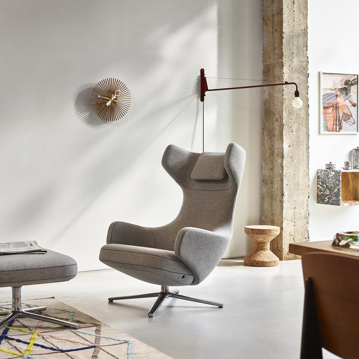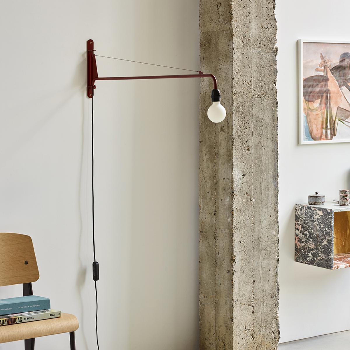 Originally designed by the celebrated Jean Prouvé in 1950, the purist Petite Potence Wall Light is presented here in Japanese red. A streamlined, practical design, the pivotable Petite Potence boasts a striking powder-coated tubular steel body complemented by a fabric handle. Use it as a mid-century statement for your reading room, office and other smaller spaces. Jean Prouvé is one of the twentieth century's most influential designers, manufacturers, and educators. Playing a pivotal role in the development of mass production techniques in post-war modernist Europe, his wide-ranging portfolio spans from prefabricated housing solutions to furniture for the office, classroom and home.