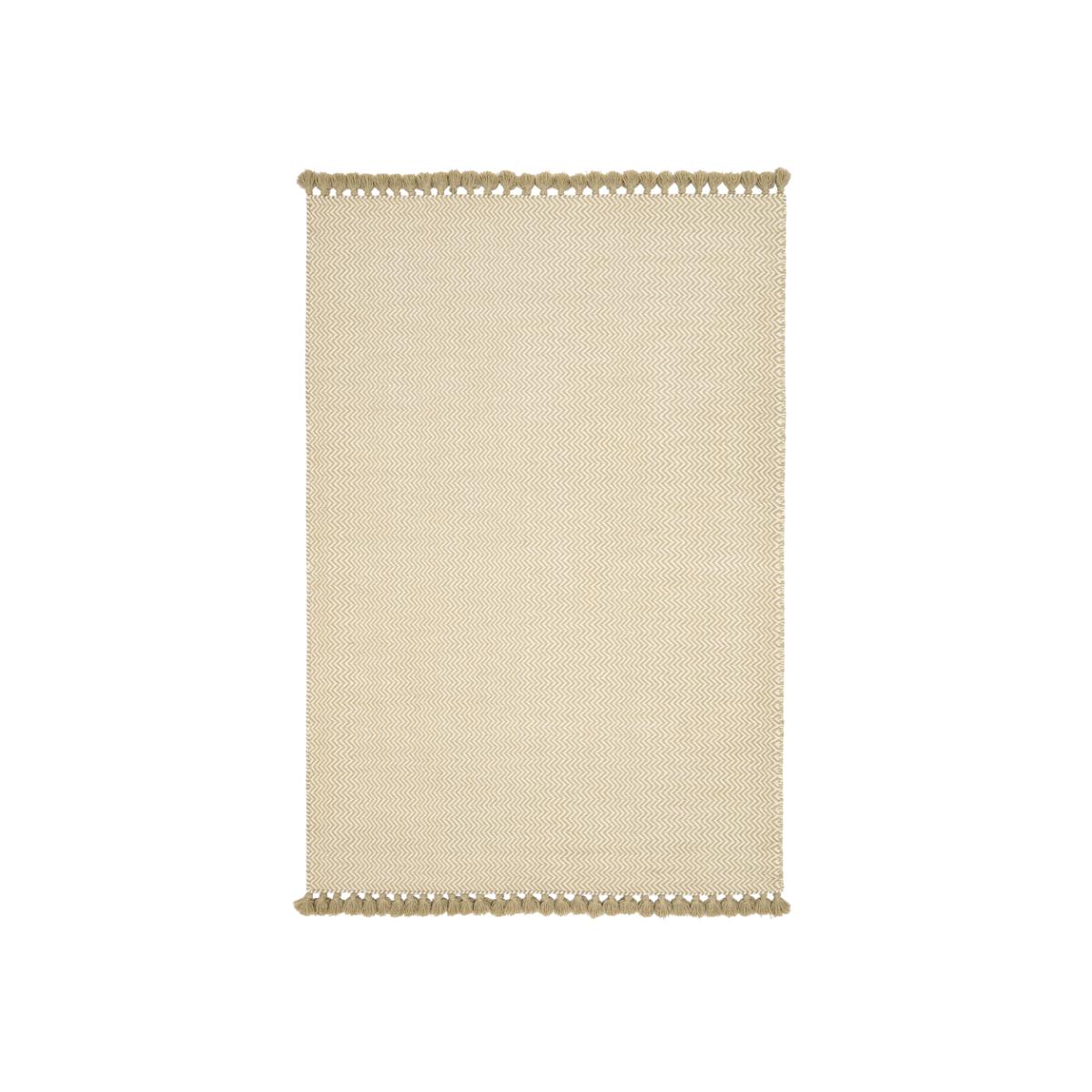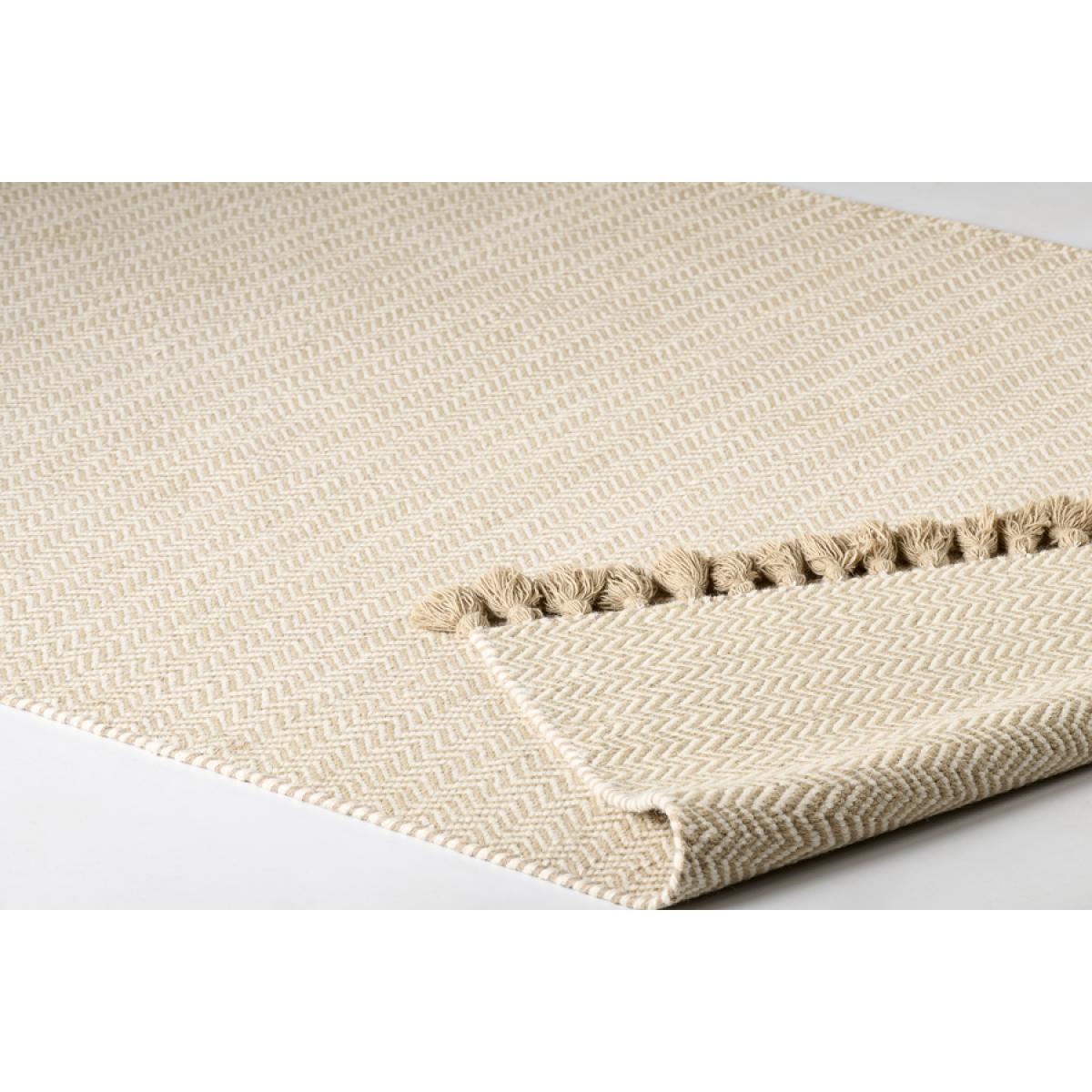A timeless herringbone rug featuring a flat-woven design and decorative tassels. Hand-woven 100% wool. Wool rugs shed fibres during vacuum cleaning and everyday use; this is not a fault but a natural characteristic. Please use only a suction-type vacuum cleaner, as rotating brush vacuum cleaning may damage the rug. Spills should be cleaned immediately to help avoid staining – use a clean white absorbent cloth to dab the spillage, and avoid scrubbing.