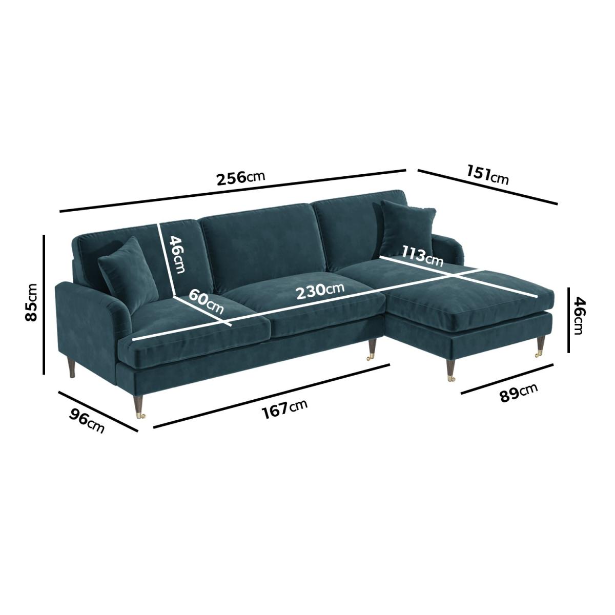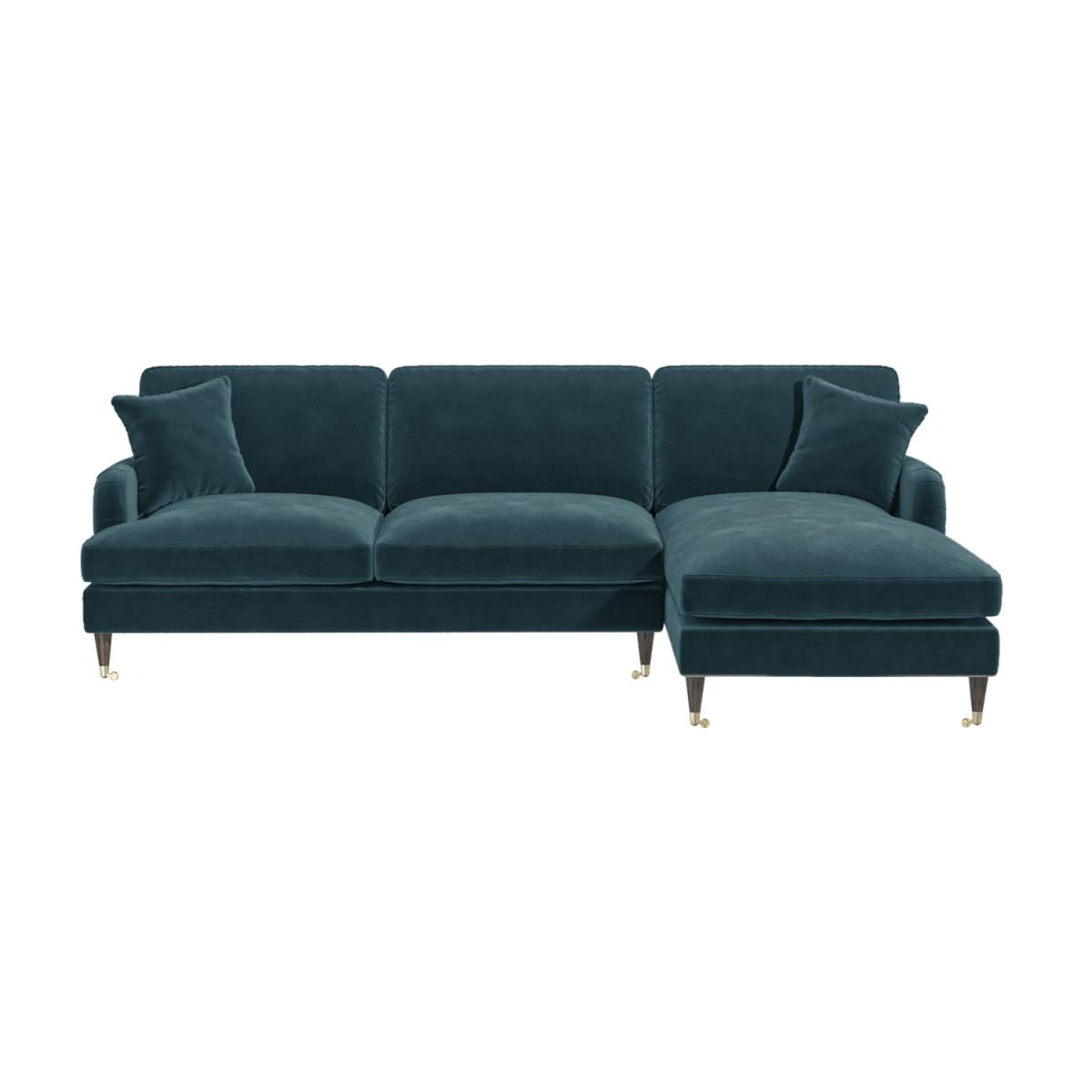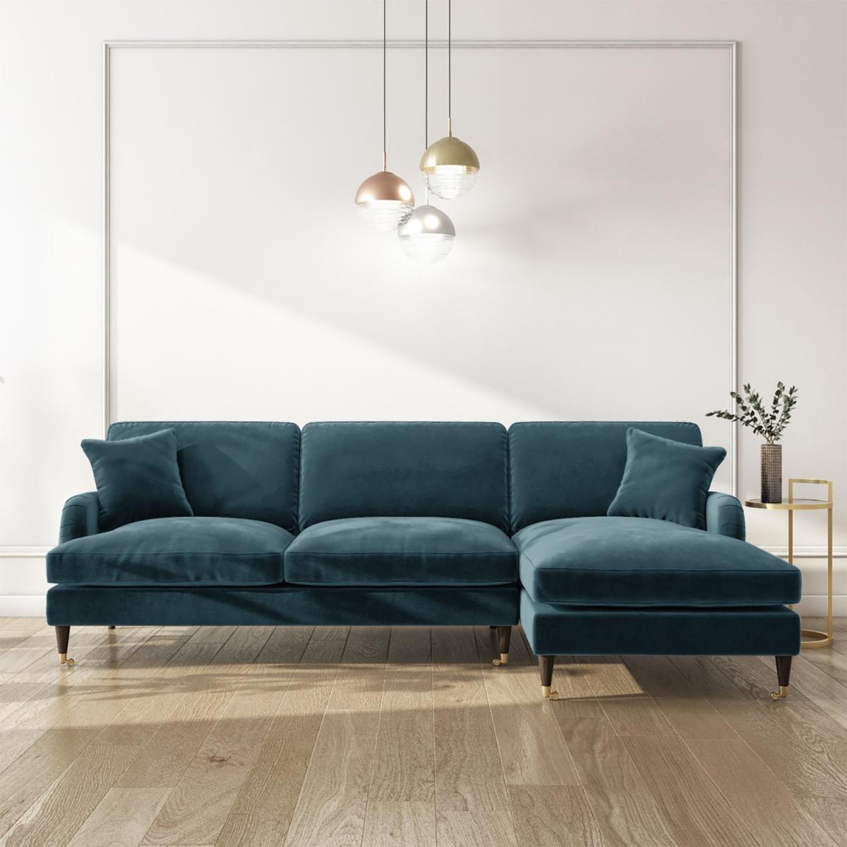 Petrol Blue 3 Seater L Shaped Sofa in Velvet - Right Hand Facing - Payton