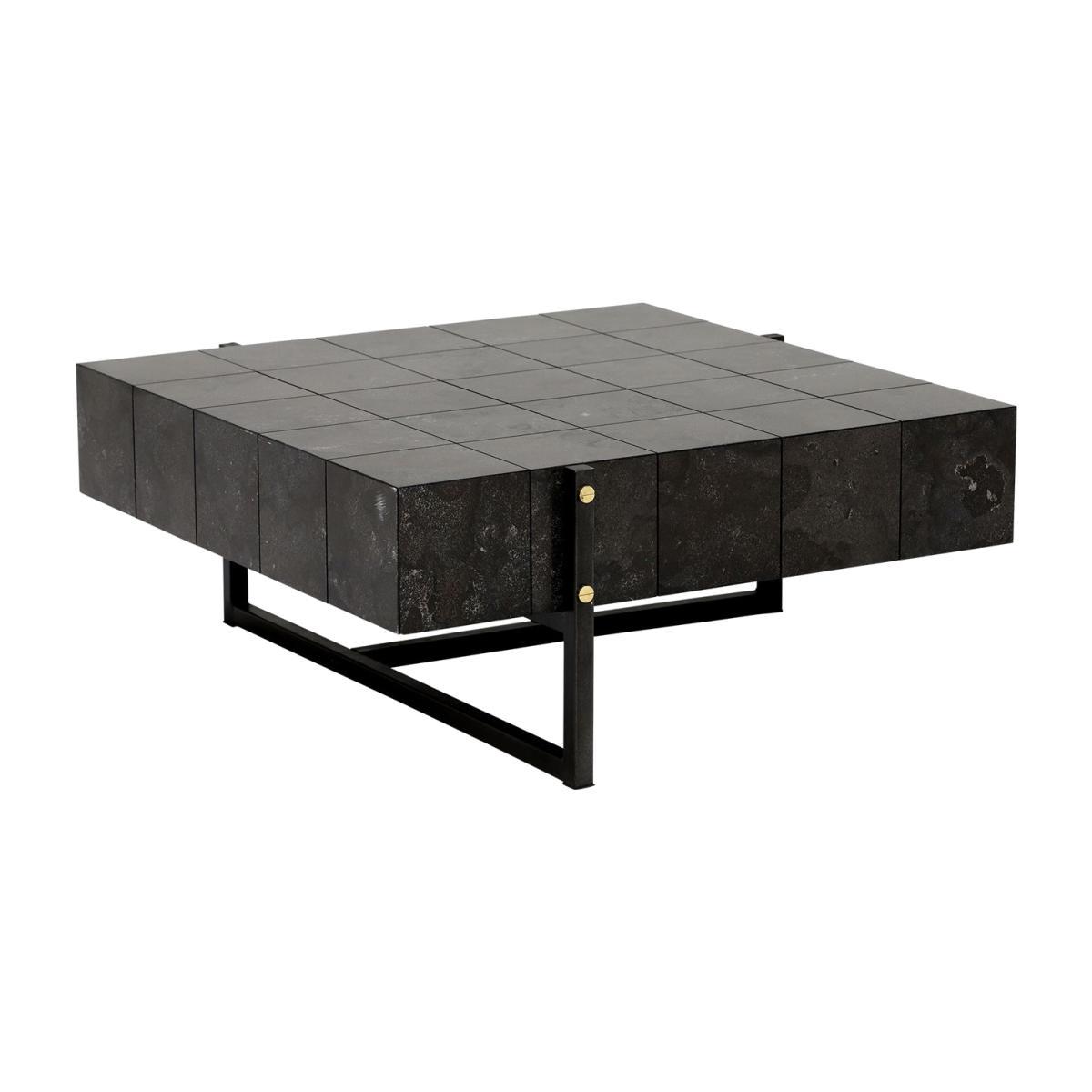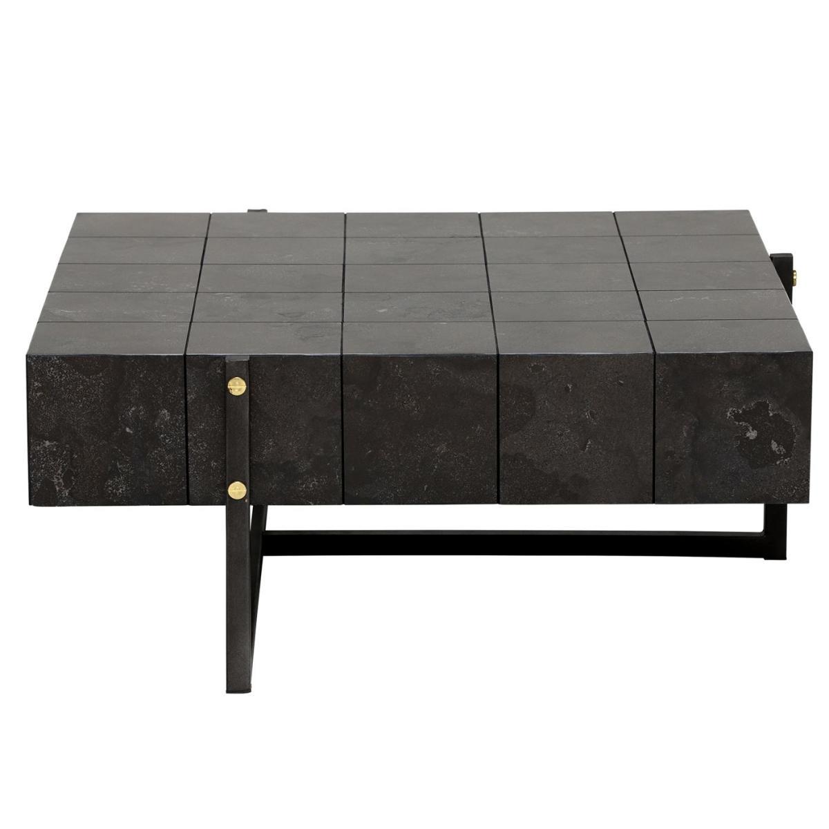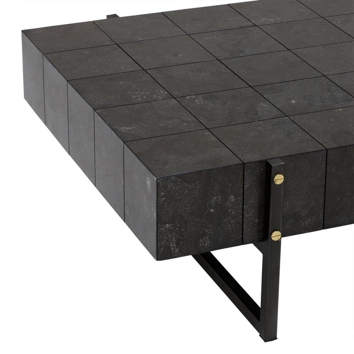 Design. A sleek and suave design that’s deep toned bluestone veneer works perfectly with geometric, modular shaping, the Pettazzi Coffee Table’s masculine look is the ideal choice for swanky industrial interiors that have a luxurious edge. A sturdy metal base with a light rustic finish that contrasts well with its metallic button detailing, the Pettazzi is a great centrepiece for adding depth and texture to your living space. As much a match for rustic leather as it is luxe velvet, this versatile table can be suited to a range of decors.