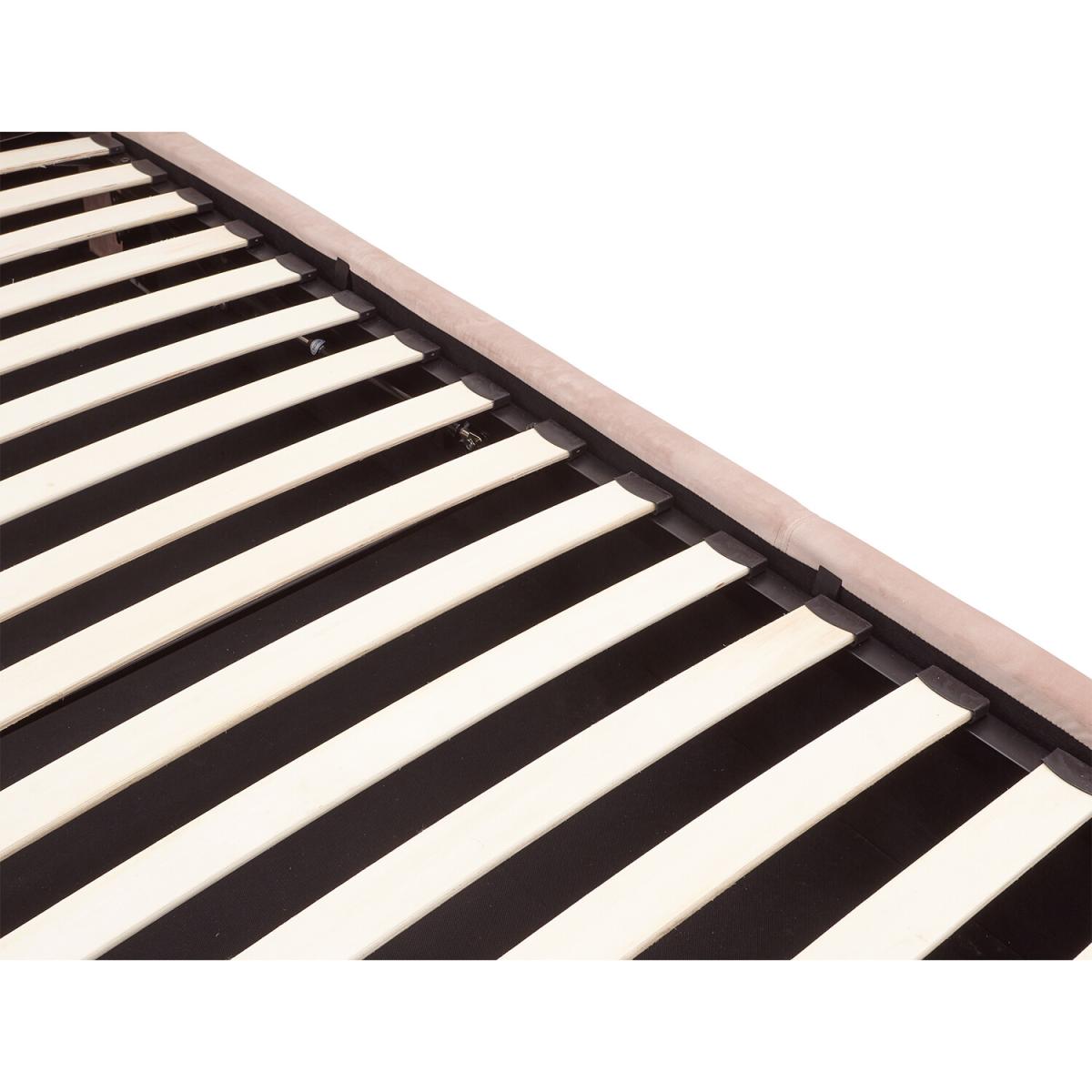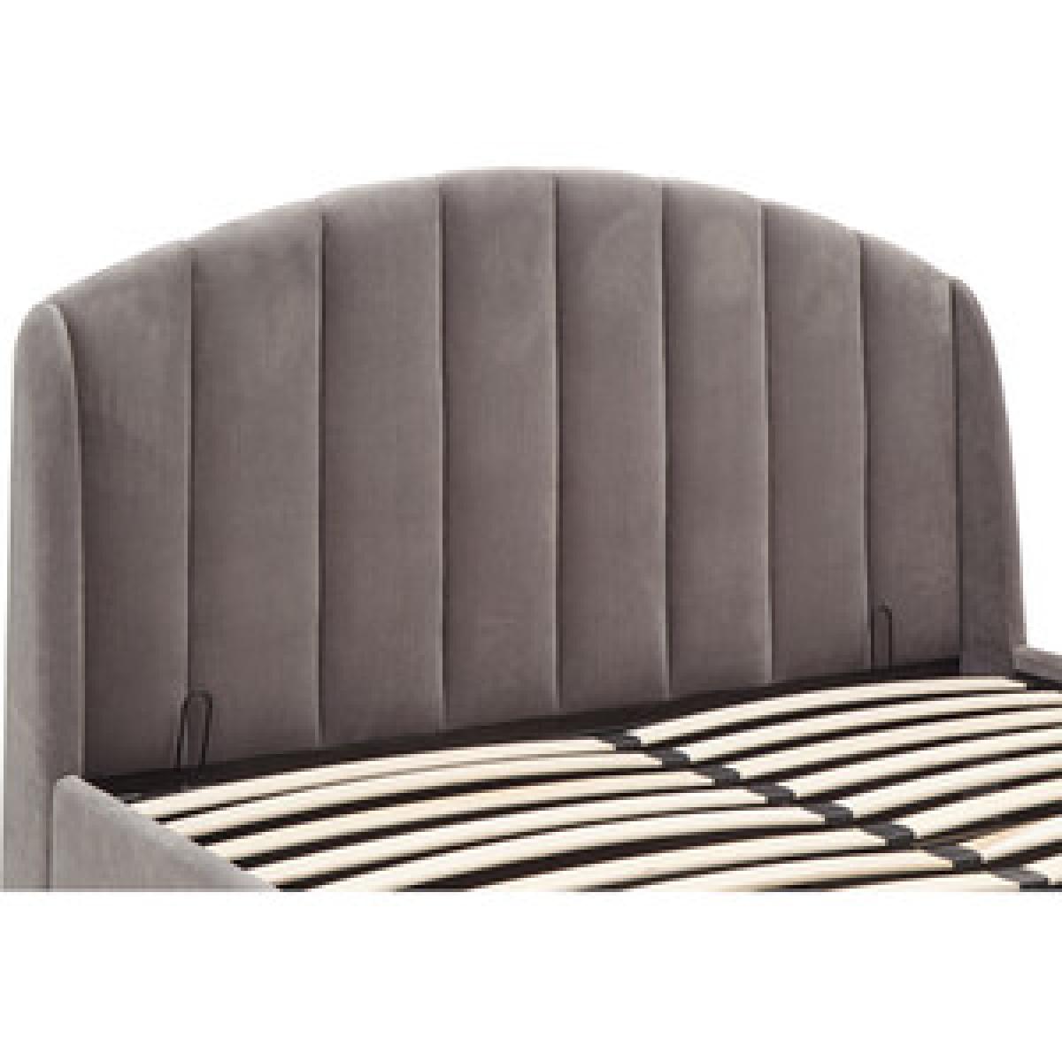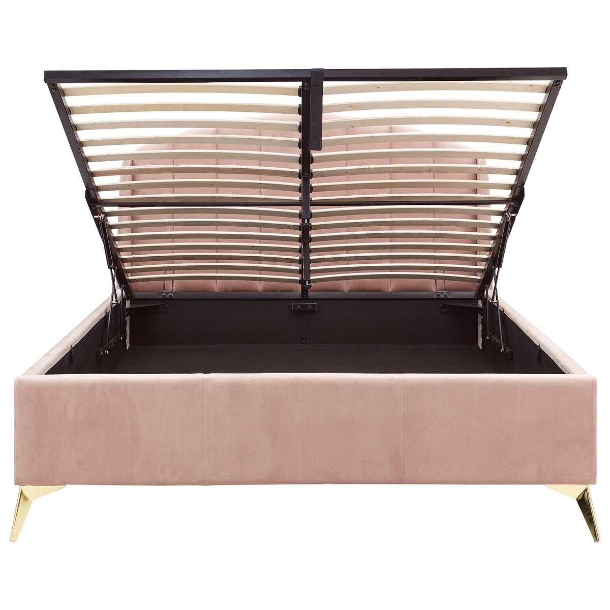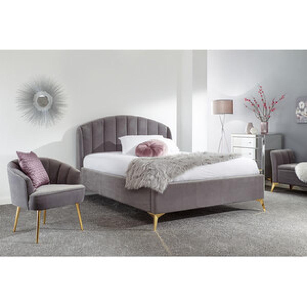 Transform your bedroom into a romantic boudoir with this wonderful Pettine End Lift Ottoman Bed. The softly padded frame and heavy-duty sprung slat system provides a sturdy base for your mattress. The headboard's winged design evokes the soft contours of a scallop shell, an impression that's enhanced by the gorgeous plush fabric with velvety pile in a choice of pink and grey colourways. The angled gold-effect metal legs offer a contemporary contrast to the classic lines of the frame. Hydraulic pistons allow the slatted base to lift with ease, revealing a storage compartment beneath.
