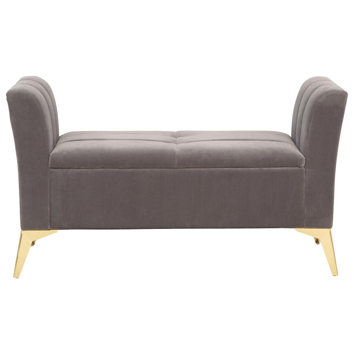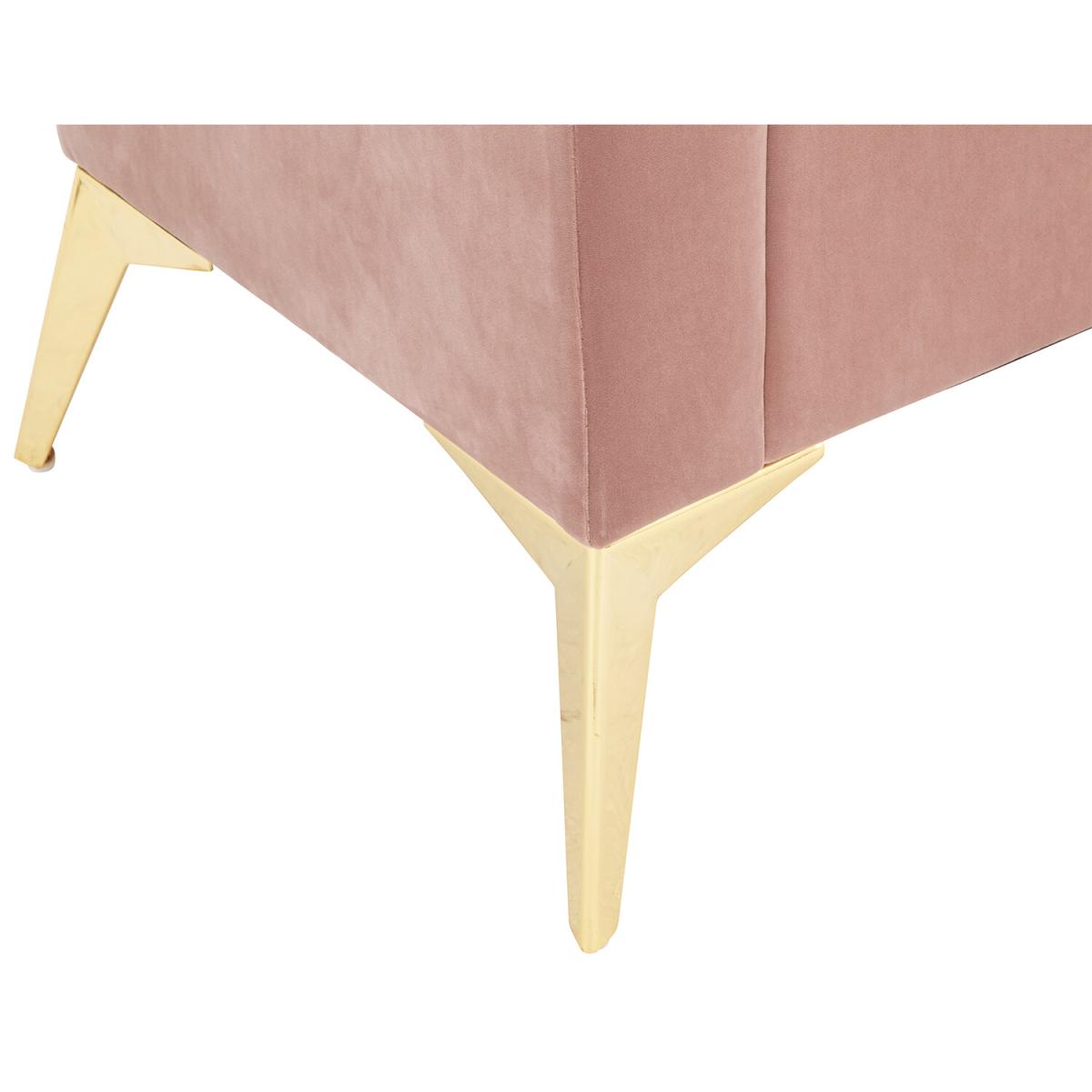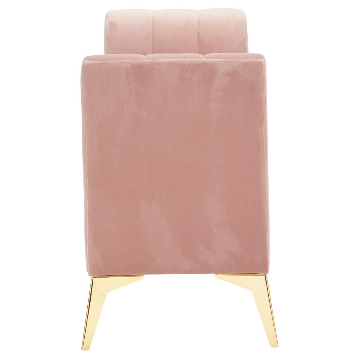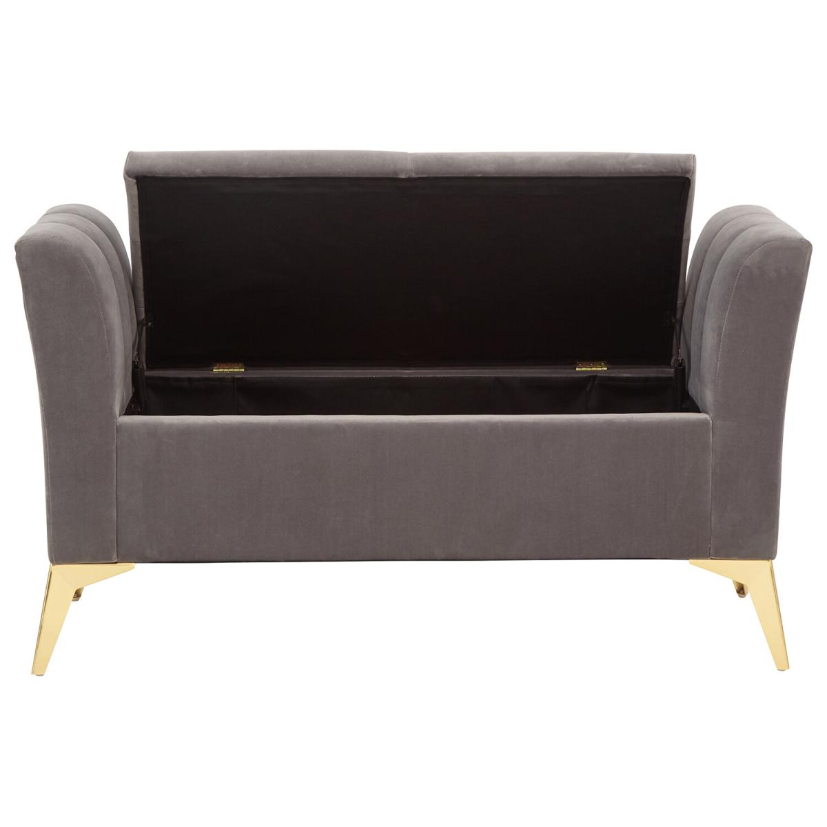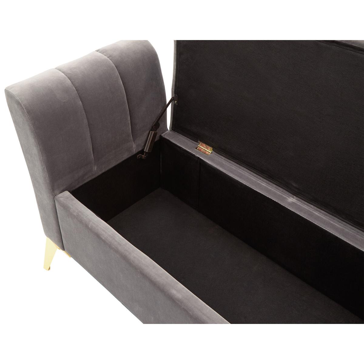 Give an underused window bay or another bedroom nook, an eye-catching feature with this gloriously elegant Pettine Ottoman Storage Bench. The gently flared arms feature a classic sculpted design and flank a comfortable seat beneath which is concealed a useful lined storage compartment, perfect for blankets and throws. The deep padded frame and seat is upholstered in a tactile plush fabric with a matt velvet pile that looks and feels wonderfully indulgent. The angled gold-effect metal legs add a contemporary contrast to the seat's classic lines. Pick from blush pink and soft grey colourways.