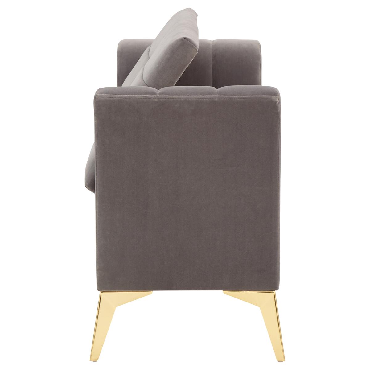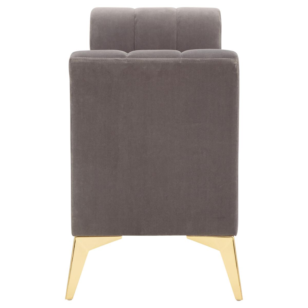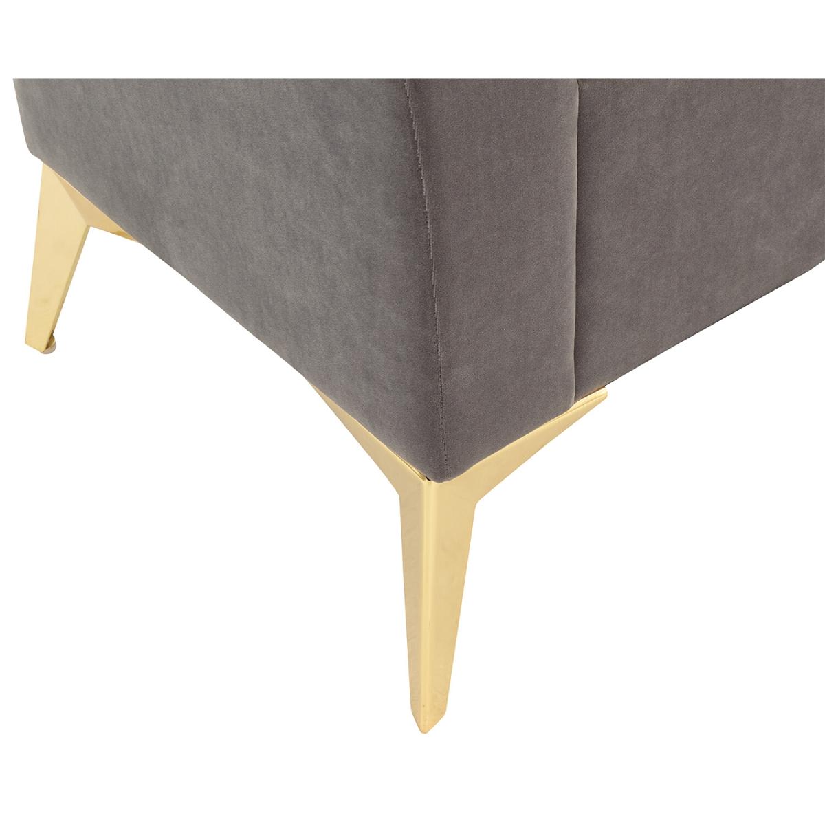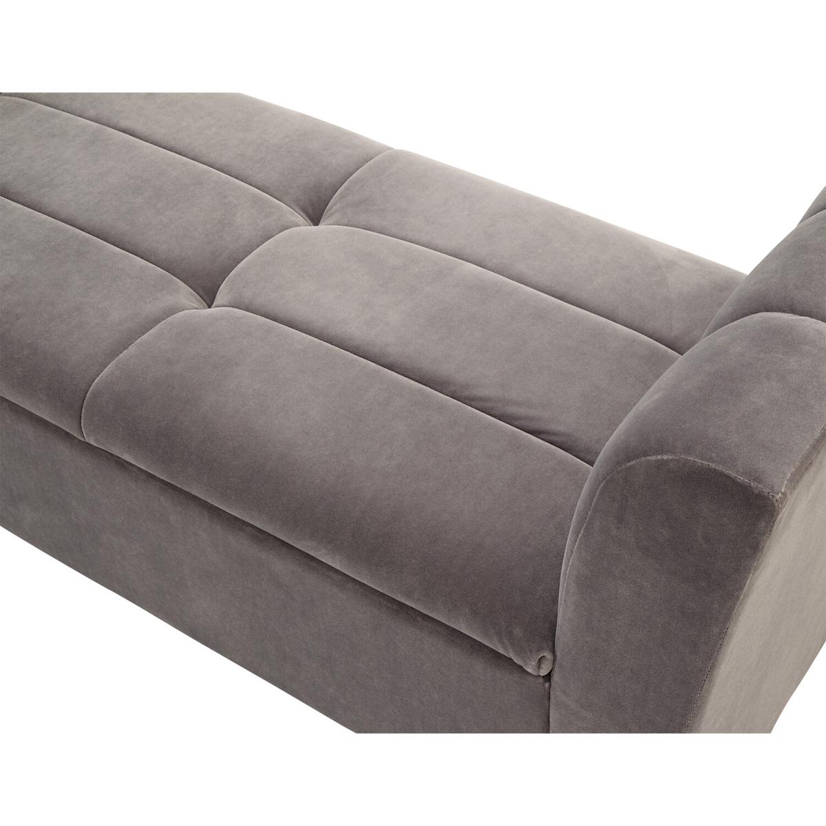 Give an underused window bay or another bedroom nook, an eye-catching feature with this gloriously elegant Pettine Ottoman Storage Bench. The gently flared arms feature a classic sculpted design and flank a comfortable seat beneath which is concealed a useful lined storage compartment, perfect for blankets and throws. The deep padded frame and seat is upholstered in a tactile plush fabric with a matt velvet pile that looks and feels wonderfully indulgent. The angled gold-effect metal legs add a contemporary contrast to the seat's classic lines. Pick from blush pink and soft grey colourways.