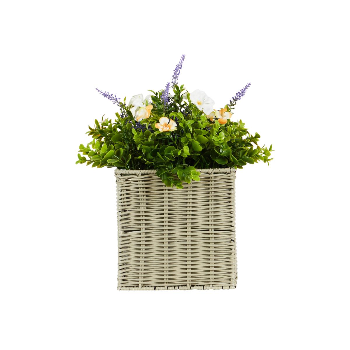 Make a stunning spring addition to your home with this Petunia and Lavender in Rattan Pot. Beautifully crafted, the stylish grey basket with arranged floristry will instantly brighten your home. Easy to maintain, it makes a fantastic addition to any room, adding a touch of greenery to dull corners.