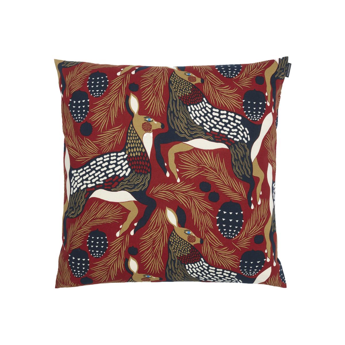 Expressive and colourful, the Peura pattern features deer running between pine trees. With alert eyes and powerful movement, they leap further and further into the safety of the forest. Initially painted on paper with brush and ink, the Peura motif is a continuation of the tales of Aino-Maija Metsola. Cheerful, chic and graphic, the collection of Marimekko cushion covers brightens up your interior! Their original patterns blend together wonderfully. Created in 1951, Marimekko is a state of mind, a way of life based on creativity, freedom of spirit and inventiveness. Its notoriety dates back to 1960, the year in which Jackie Kennedy made several public appearances in dresses designed by Marimekko. The brand went on to enjoy enormous success, which continues today with a range of clothing and decorative accessories in vibrant colours, for a house full of inspiration! PLEASE NOTE:Cushion cover sold on its own: the filling is sold separately.