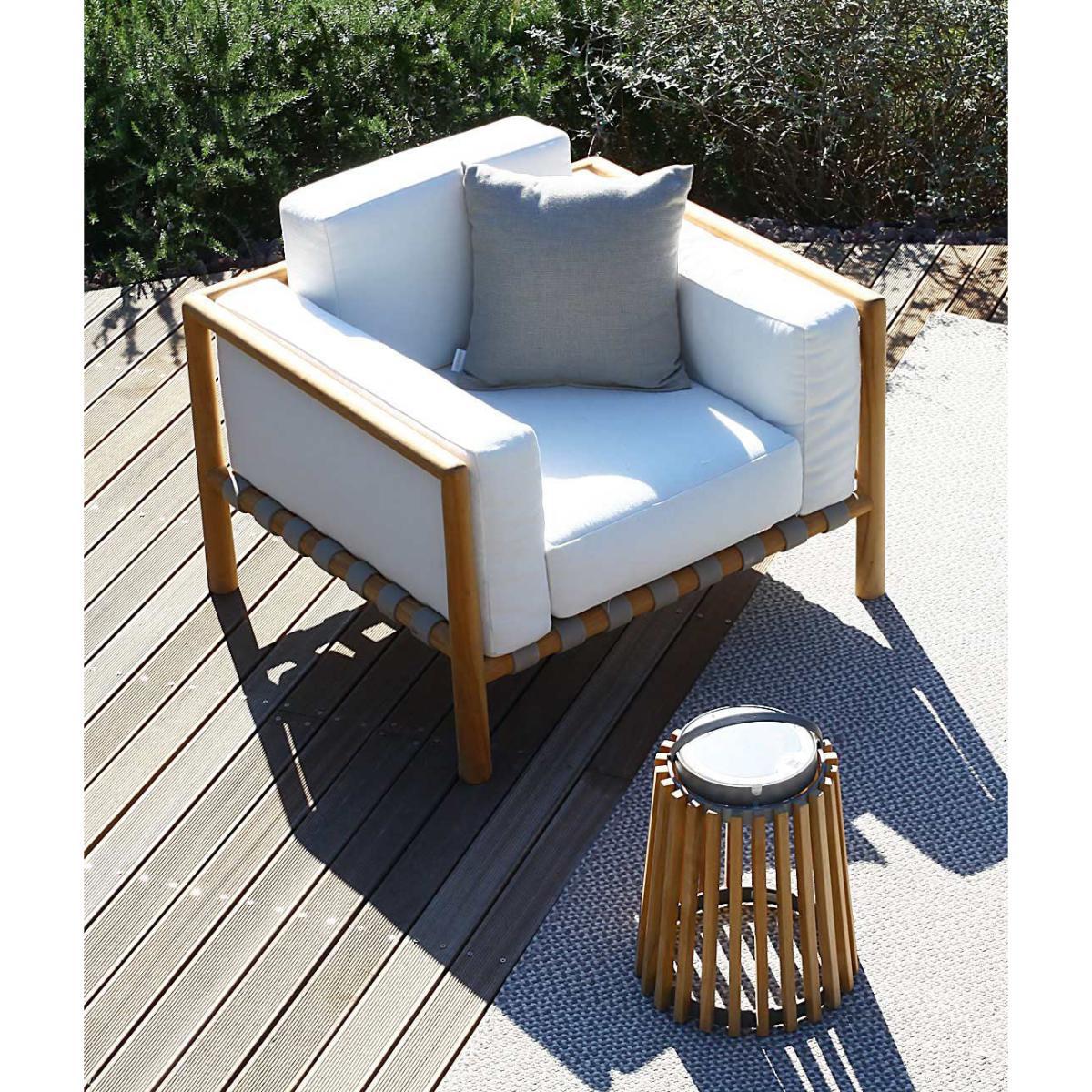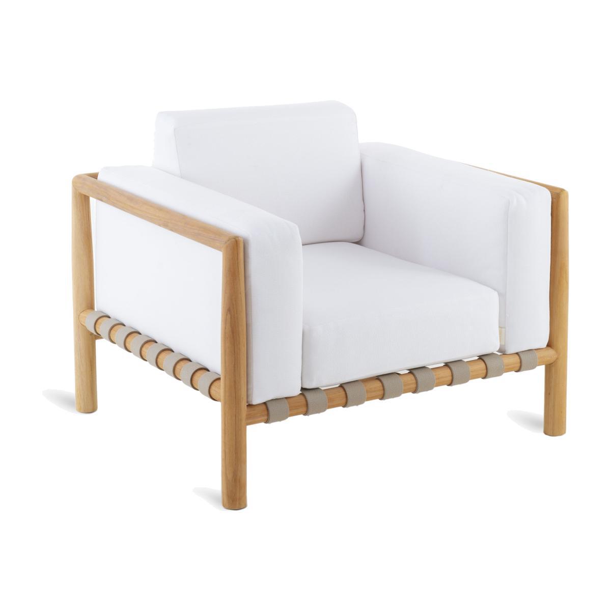 I love the Pevero armchair for its clean, natural aesthetic and versatile appeal. Its teak frame offers durability and warmth, making it a great addition to both modern and coastal-inspired interiors. Because of its neutral wood tone and crisp white cushions, it works well in minimal schemes, brightening up an accent corner or standing out in a relaxed lounge. To style it effectively, consider pairing with soft textiles like linen throws or colourful cushions to inject personality, or place it alongside other natural materials like rattan or stone for a cohesive, earthy look. Practical tip: it’s ideal for outdoor spaces too, so positioning it on a patio or terrace can create a seamless indoor-outdoor flow.