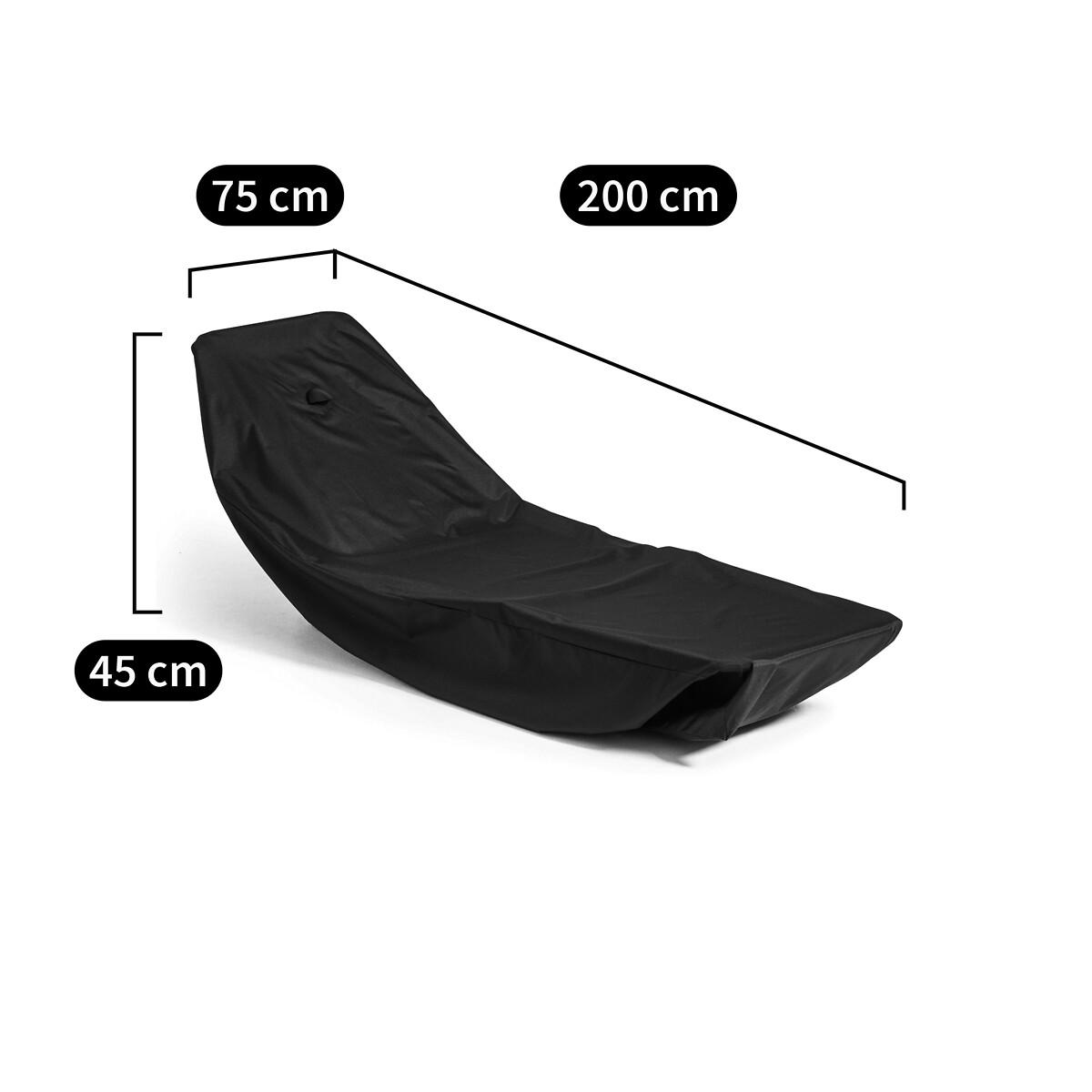 Water-repellent, waterproof and essential for overcoming winter, the Pext protective cover is designed to protect your garden furniture from bad weather, humidity and dust thanks to its many patented systems.. In a black colour, it is delivered in a storage bag.Product Details • Protective cover for sun loungers with dimensions less than L200 x D75 x H45cm. • Premium fabric: 100% mass-dyed polyester canvas, PU coated 160 gr/m², water-repellent, waterproof • 1 PVC aerator: Prevents condensation and mould. • Patented hook-up fastening system: Polyester cord with stopper, eyelets along the entire length, hook-and-loop strips at each corner to perfectly hold the cover in place at the level of the feet. • Delivered folded in a strong and elegant storage bag. Dimensions • Length: 200cm • Height: 45cm • Width: 75cm
