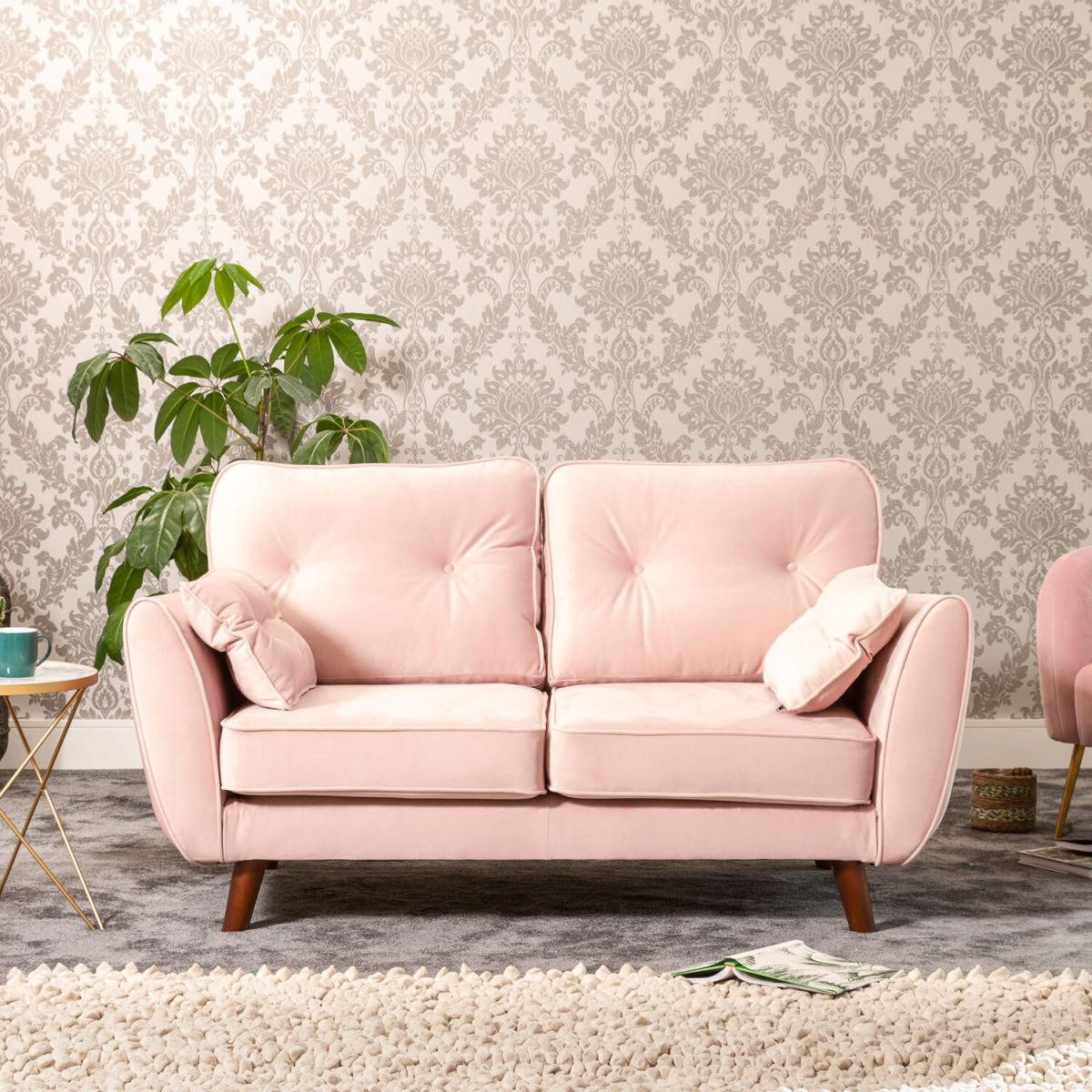 I love this pink two-seater because it adds a soft, playful touch to both modern and traditional interiors. Its colour is versatile enough to pair with neutral palettes like grey, beige, or white for a fresh look, or with more vibrant hues for a lively feel. It works particularly well in cosy living rooms or as a statement piece in eclectic interiors. Practical styling tips include adding textured cushions or throws to enhance comfort and layering with other pastel or metallic accessories for a chic feel. Keeping the surrounding furniture simple will allow the sofa to thrive as a key focal point.