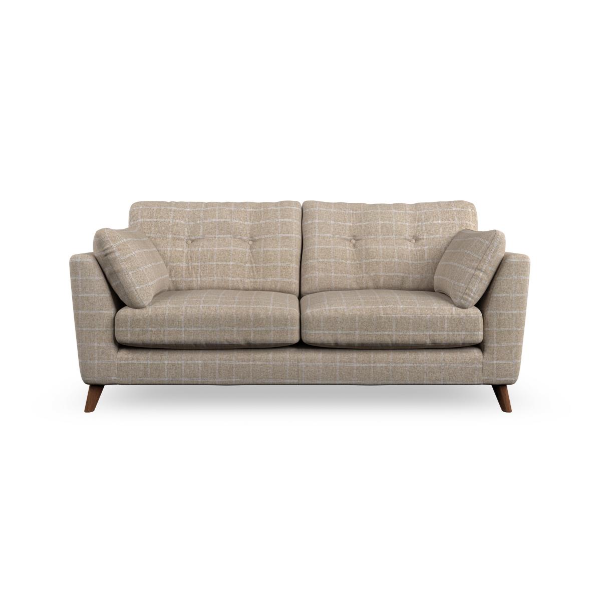I love the Peyton sofa for its clean lines, warm natural check and solid timber legs - it feels both fresh and comfortable. Its neutral palette makes it a perfect fit for Scandi-inspired schemes, relaxed coastal rooms or even a modern farmhouse setting. For a pulled-together look, layer with cushions in soft linen or boucle, perhaps in dusky pinks or sage greens, and add a knitted throw over one arm. Position it against a muted wall or whitewashed brick, then balance with a low wooden coffee table, a textured jute rug and a few leafy plants to keep the space feeling inviting yet pared-back.