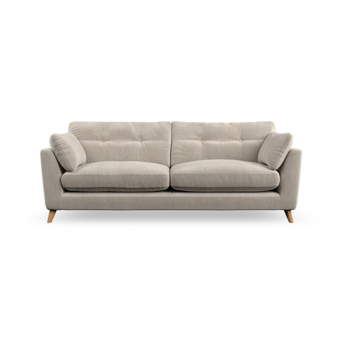 * Mid-century style* Pillow top arms* Button pull details* Choose fabric type, leg colour and cushion filling With its high legs and plush fibre-filled arm pads, this sofa combines sleek design with an inviting feel. Button-pull details on the supportive, fibre-filled back cushions add a touch of refinement, while the higher back cushions provide excellent support for your back and shoulders. Customise your Peyton sofa by choosing between a low-maintenance foam seat or a more relaxed 'Qualofill Blue' fibre seat for a softer sit. Built with serpentine seat springs for durability and long-lasting comfort, this sofa also features splayed hardwood legs available in two finishes for a personal touch.