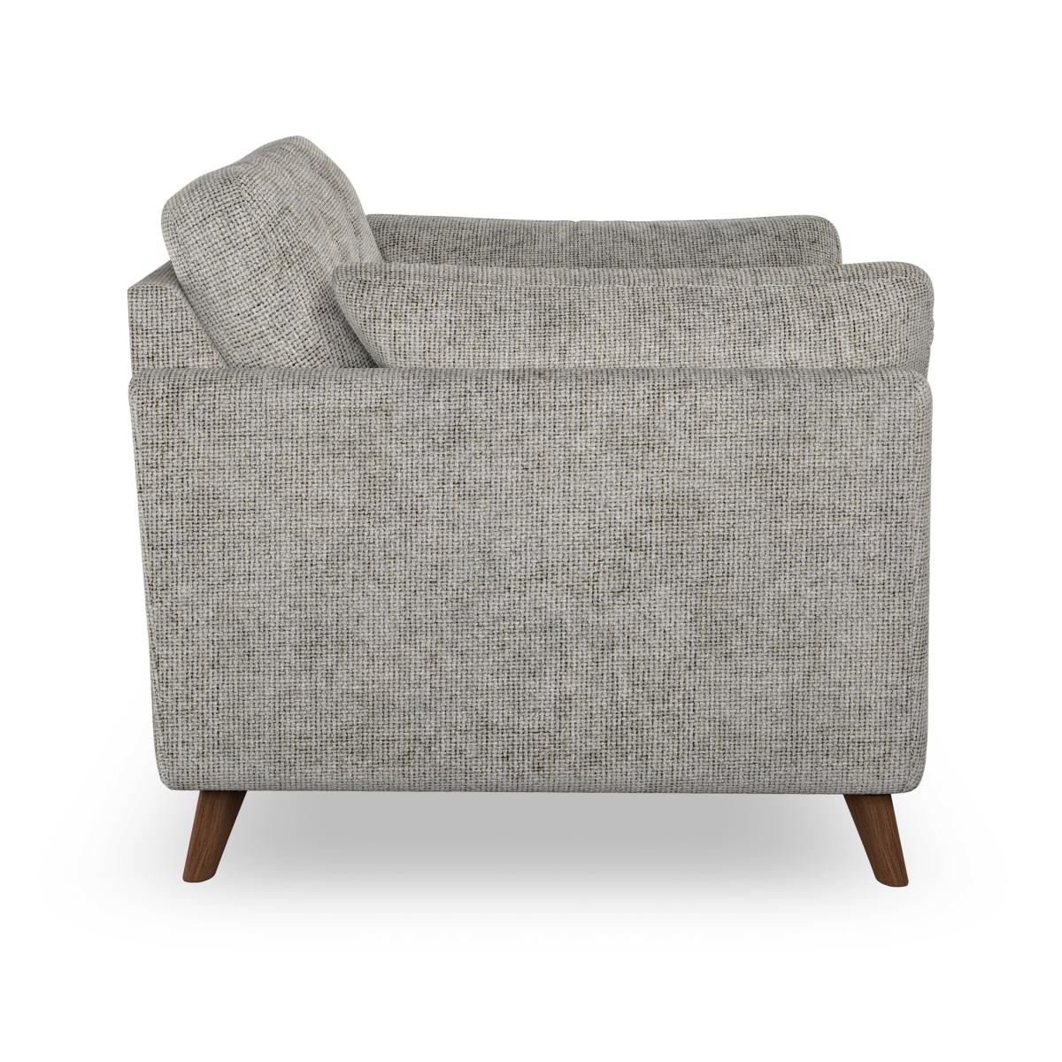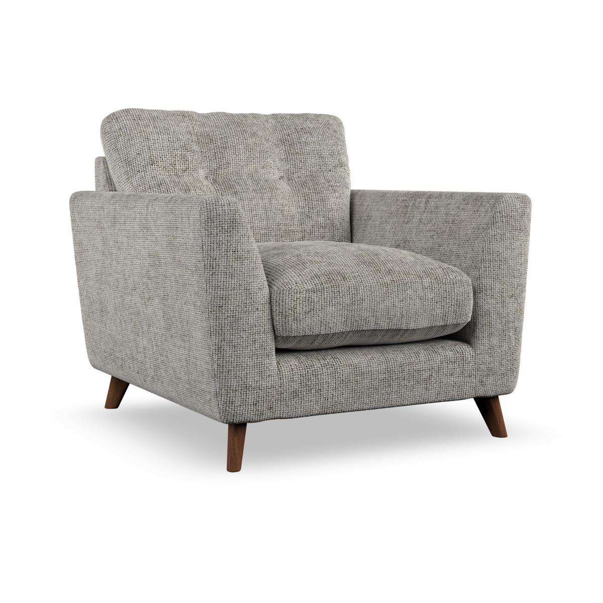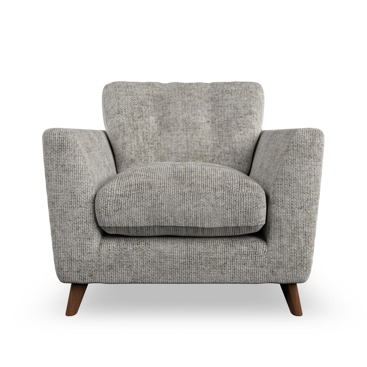 * Mid-century style* Pillow top arms* Button pull details* Choose fabric type, leg colour and cushion filling With its sleek, high-leg design and plush fibre-filled arm pads, this armchair offers both style and relaxation. The button-pull details on the supportive, fibre-filled back cushion add a refined touch, while the higher back cushion provides excellent support for your back and shoulders. Customise your Peyton armchair by selecting from a low-maintenance foam seat or a more relaxed 'Qualofill Blue' fibre seat. Featuring serpentine seat springs for durability, the chair is built to offer lasting comfort. The splayed hardwood legs, available in two finishes, are easy to fit and add a customisable element to the overall design.