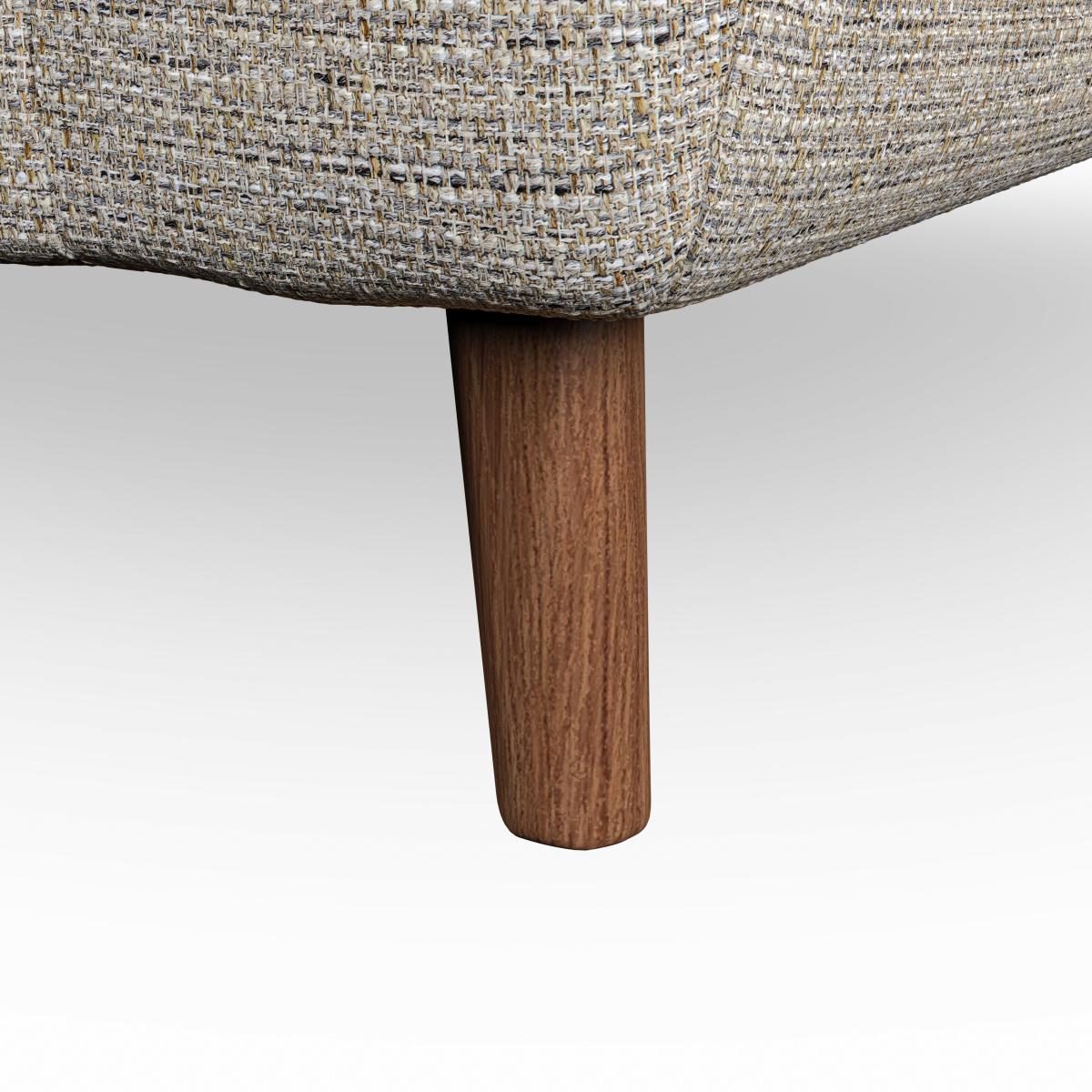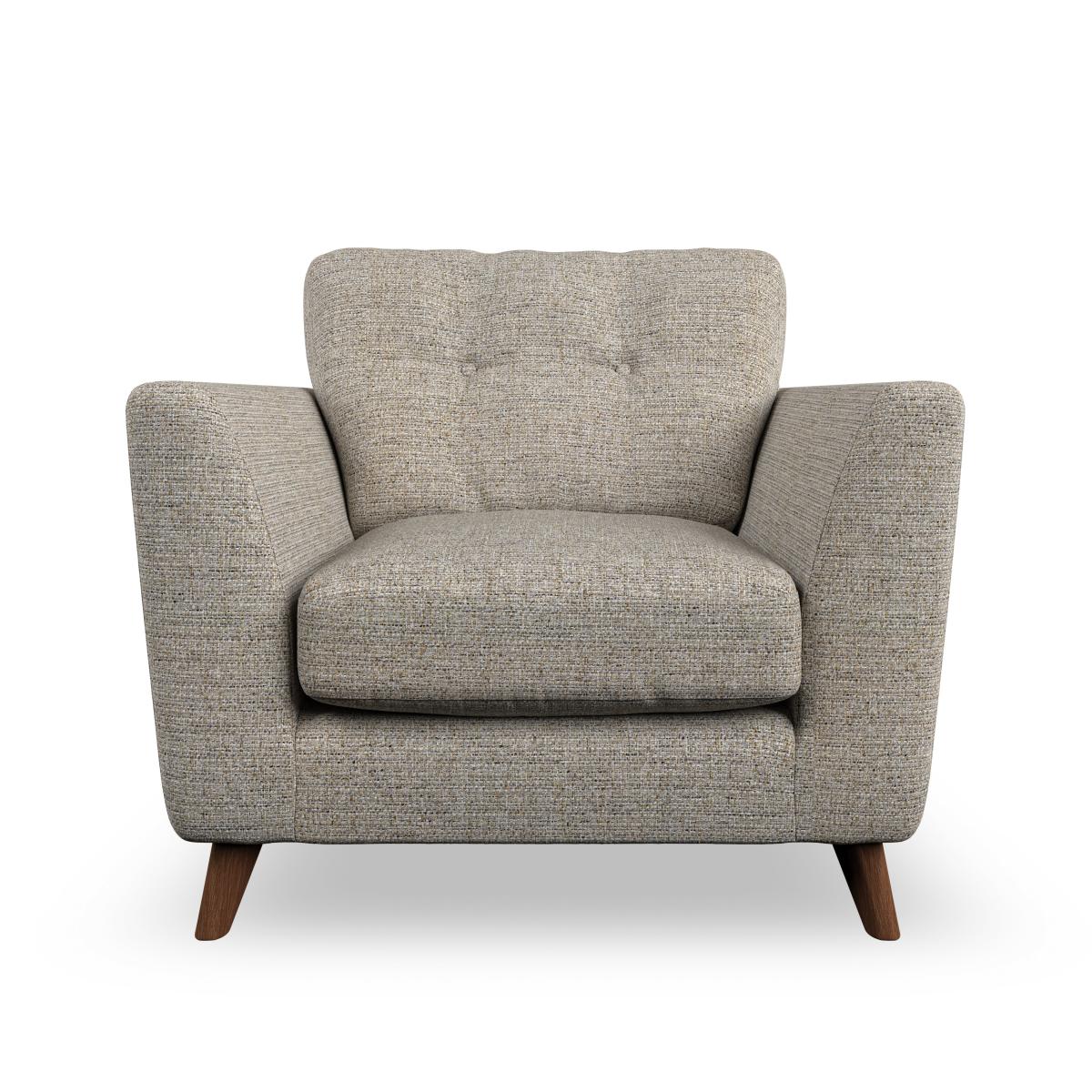 * Mid-century style* Pillow top arms* Button pull details* Choose fabric type, leg colour and cushion filling With its sleek, high-leg design and plush fibre-filled arm pads, this armchair offers both style and relaxation. The button-pull details on the supportive, fibre-filled back cushion add a refined touch, while the higher back cushion provides excellent support for your back and shoulders. Customise your Peyton armchair by selecting from a low-maintenance foam seat or a more relaxed 'Qualofill Blue' fibre seat. Featuring serpentine seat springs for durability, the chair is built to offer lasting comfort. The splayed hardwood legs, available in two finishes, are easy to fit and add a customisable element to the overall design.