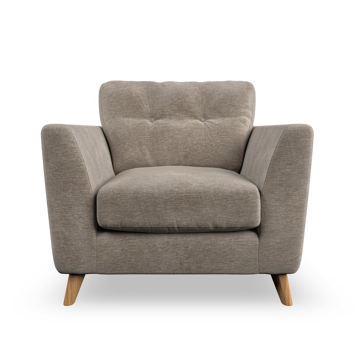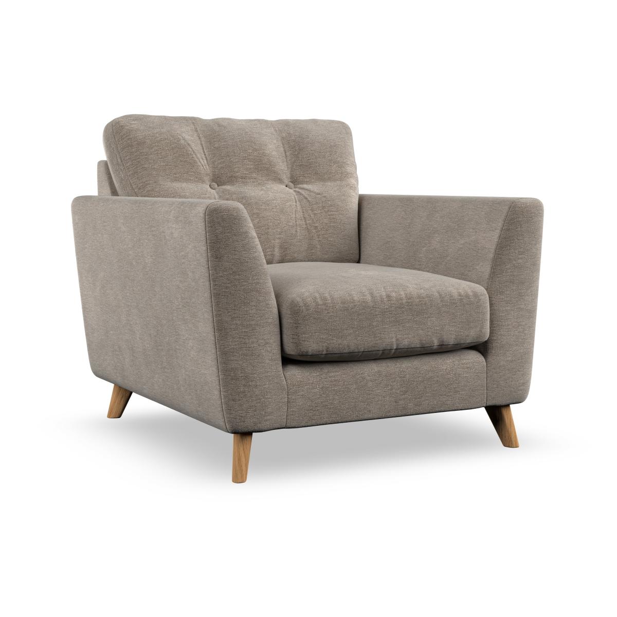* Mid-century style* Pillow top arms* Button pull details* Choose fabric type, leg colour and cushion filling With its sleek, high-leg design and plush fibre-filled arm pads, this armchair offers both style and relaxation. The button-pull details on the supportive, fibre-filled back cushion add a refined touch, while the higher back cushion provides excellent support for your back and shoulders. Customise your Peyton armchair by selecting from a low-maintenance foam seat or a more relaxed 'Qualofill Blue' fibre seat. Featuring serpentine seat springs for durability, the chair is built to offer lasting comfort. The splayed hardwood legs, available in two finishes, are easy to fit and add a customisable element to the overall design.