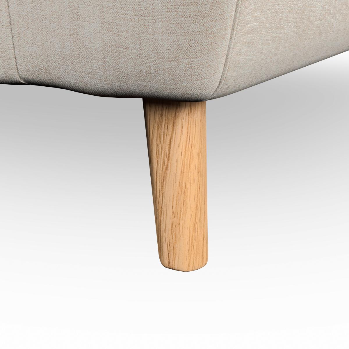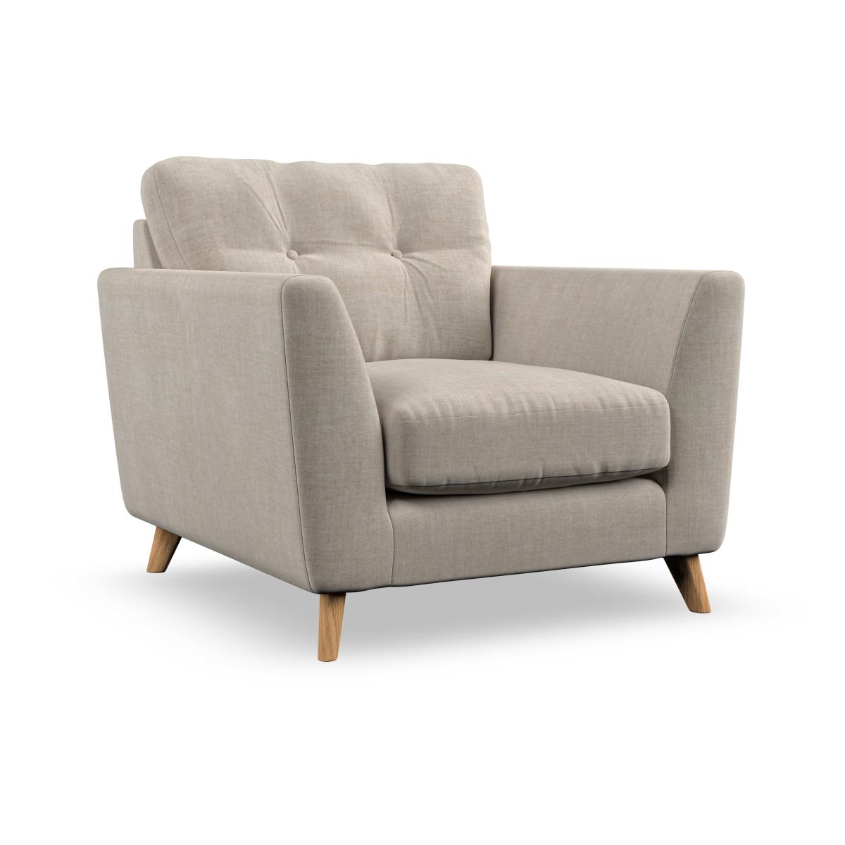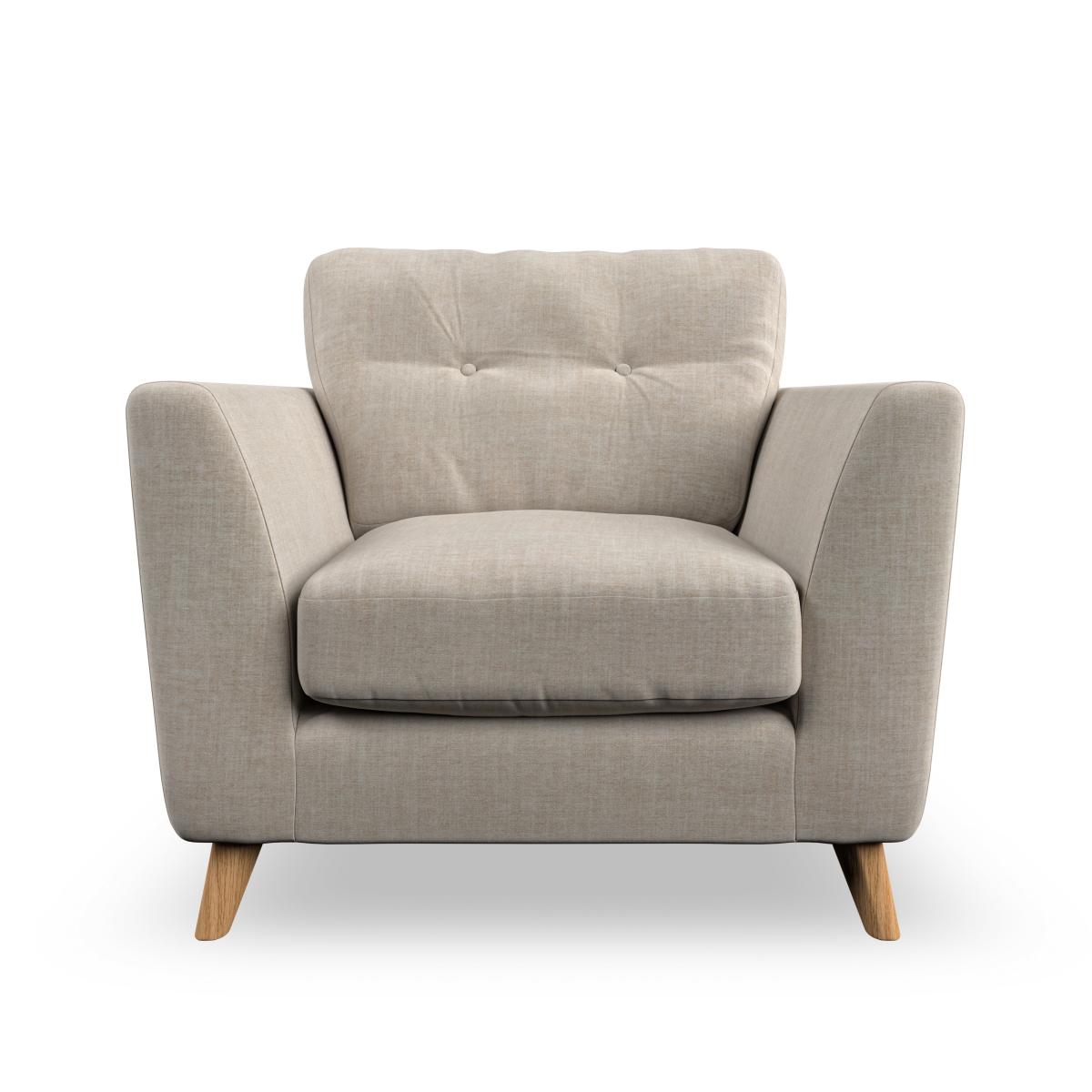* Mid-century style* Pillow top arms* Button pull details* Choose fabric type, leg colour and cushion filling With its sleek, high-leg design and plush fibre-filled arm pads, this armchair offers both style and relaxation. The button-pull details on the supportive, fibre-filled back cushion add a refined touch, while the higher back cushion provides excellent support for your back and shoulders. Customise your Peyton armchair by selecting from a low-maintenance foam seat or a more relaxed 'Qualofill Blue' fibre seat. Featuring serpentine seat springs for durability, the chair is built to offer lasting comfort. The splayed hardwood legs, available in two finishes, are easy to fit and add a customisable element to the overall design.