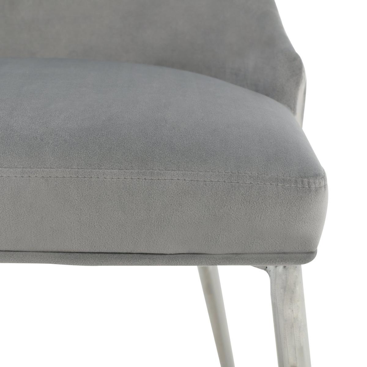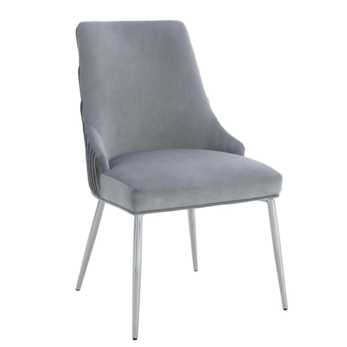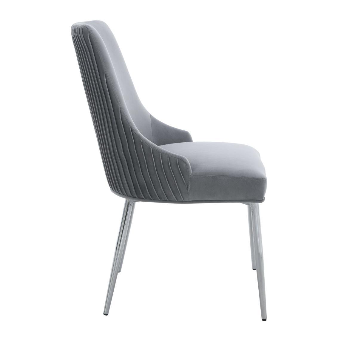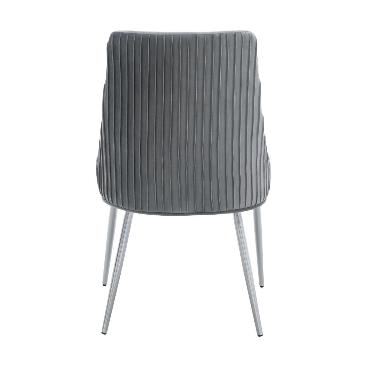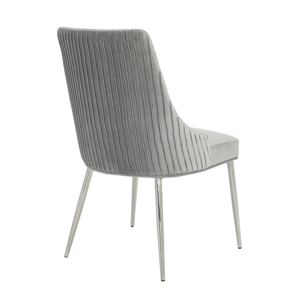 Upholstered in a luxuriously soft velvet fabric with a delicate pleated back, the Peyton chair would add a touch of modern luxury styling to any room. The grey velvet upholstery is perfectly complemented by the sleek chrome finished metal legs, whilst the foam padded seat and backrest provide luxurious comfort.