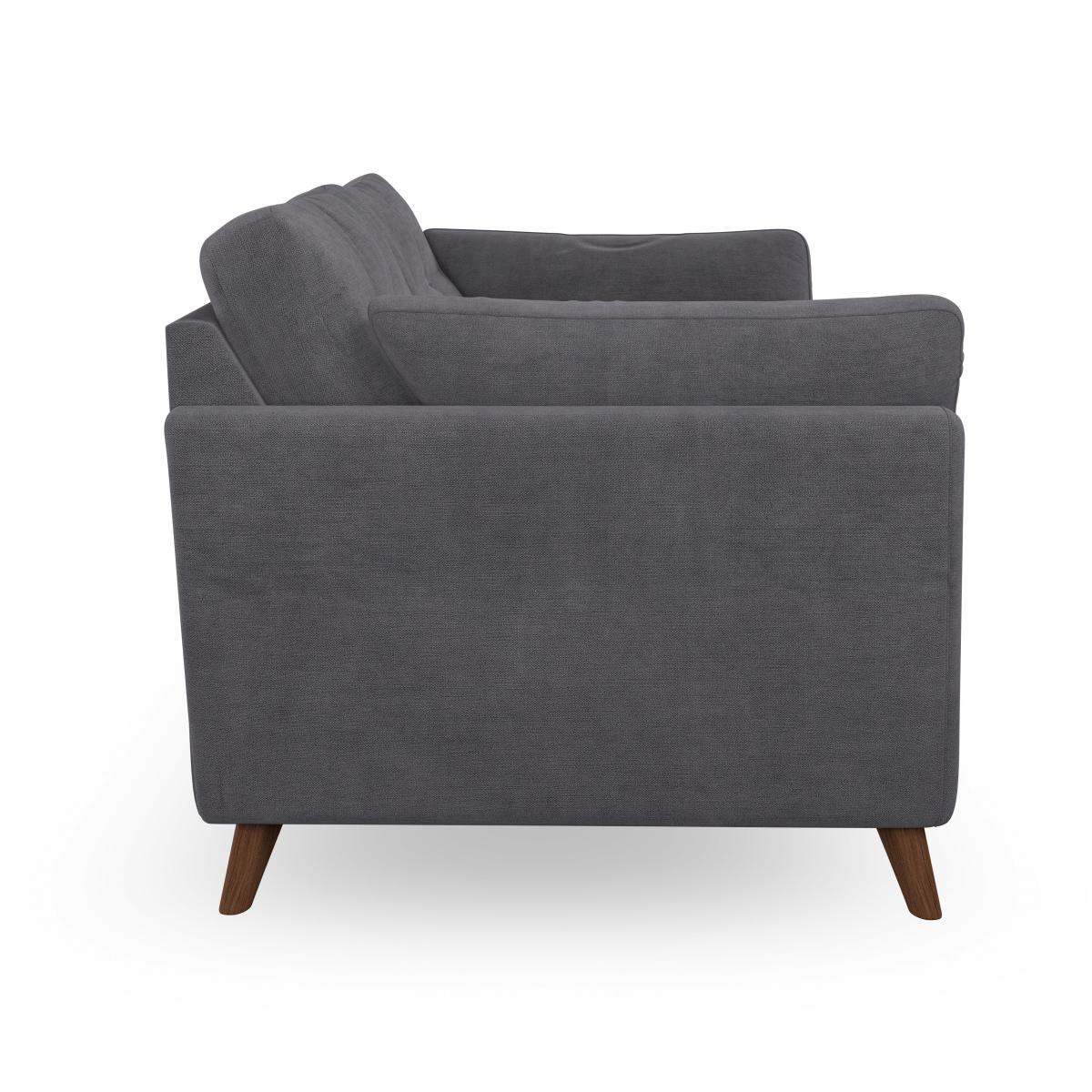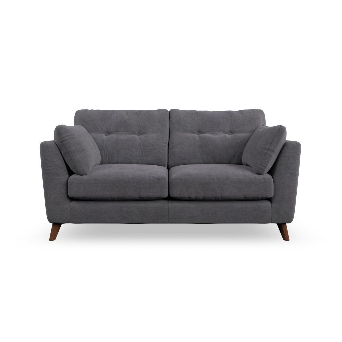 * Mid-century style* Pillow top arms* Button pull details* Choose fabric type, leg colour and cushion filling This sofa's high legs and soft fibre-filled arm pads offer a stylish yet inviting look, while the button-pull details on the supportive, fibre-filled back cushions bring a touch of elegance. The higher back cushions ensure excellent support for your back and shoulders, making this sofa as comfortable as it is stylish. Personalise your Peyton sofa with a choice between a low-maintenance foam seat or a more relaxed 'Qualofill Blue' fibre seat. Built with serpentine seat springs for long-lasting comfort and durability, the sofa is supported by splayed hardwood legs available in two finishes, offering a customisable touch.