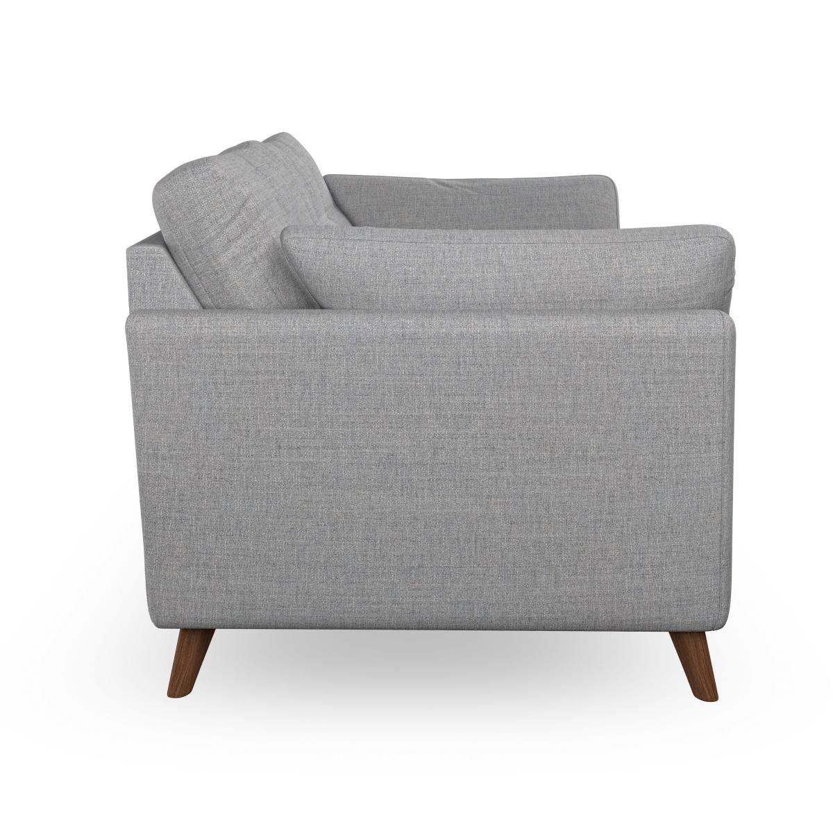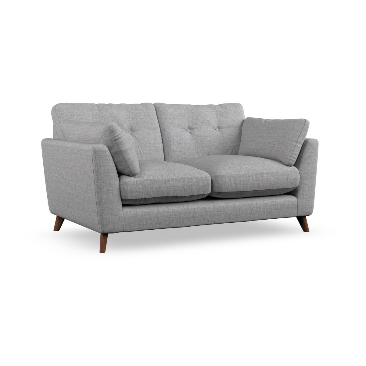 * Mid-century style* Pillow top arms* Button pull details* Choose fabric type, leg colour and cushion filling This sofa's high legs and soft fibre-filled arm pads offer a stylish yet inviting look, while the button-pull details on the supportive, fibre-filled back cushions bring a touch of elegance. The higher back cushions ensure excellent support for your back and shoulders, making this sofa as comfortable as it is stylish. Personalise your Peyton sofa with a choice between a low-maintenance foam seat or a more relaxed 'Qualofill Blue' fibre seat. Built with serpentine seat springs for long-lasting comfort and durability, the sofa is supported by splayed hardwood legs available in two finishes, offering a customisable touch.