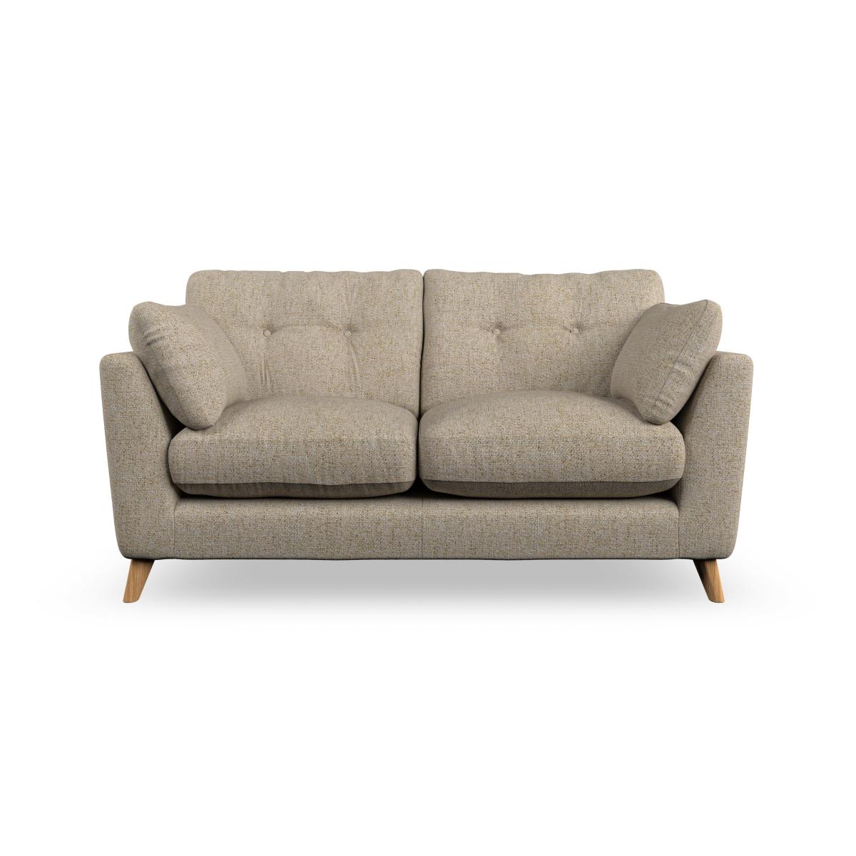 * Mid-century style* Pillow top arms* Button pull details* Choose fabric type, leg colour and cushion filling This sofa's high legs and soft fibre-filled arm pads offer a stylish yet inviting look, while the button-pull details on the supportive, fibre-filled back cushions bring a touch of elegance. The higher back cushions ensure excellent support for your back and shoulders, making this sofa as comfortable as it is stylish. Personalise your Peyton sofa with a choice between a low-maintenance foam seat or a more relaxed 'Qualofill Blue' fibre seat. Built with serpentine seat springs for long-lasting comfort and durability, the sofa is supported by splayed hardwood legs available in two finishes, offering a customisable touch.