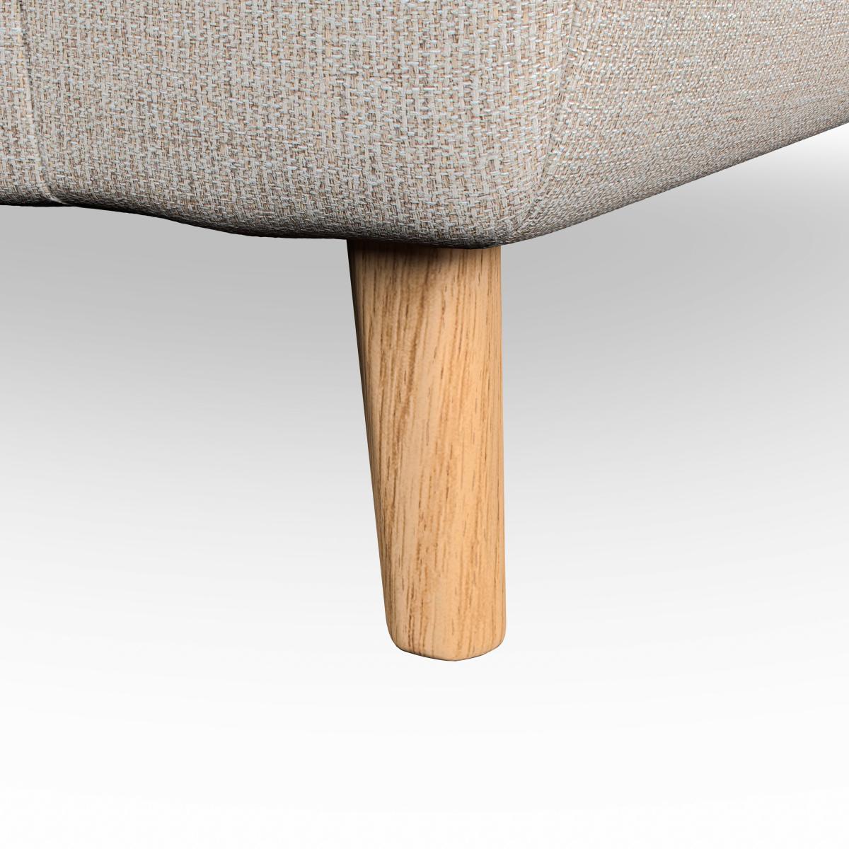 * Mid-century style* Pillow top arms* Button pull details* Choose fabric type, leg colour and cushion filling With its high legs and plush fibre-filled arm pads, this sofa provides a stylish yet inviting atmosphere. The button-pull details on the supportive, fibre-filled back cushions enhance its elegant design, while the higher back cushions ensure excellent support for your back and shoulders. You can customise your Peyton sofa by choosing between a low-maintenance foam seat or a more relaxed 'Qualofill Blue' fibre seat for added comfort. Featuring serpentine seat springs for durability and long-lasting support, the sofa is also equipped with splayed hardwood legs available in two finishes, allowing for a personalised touch.