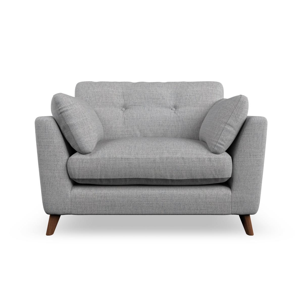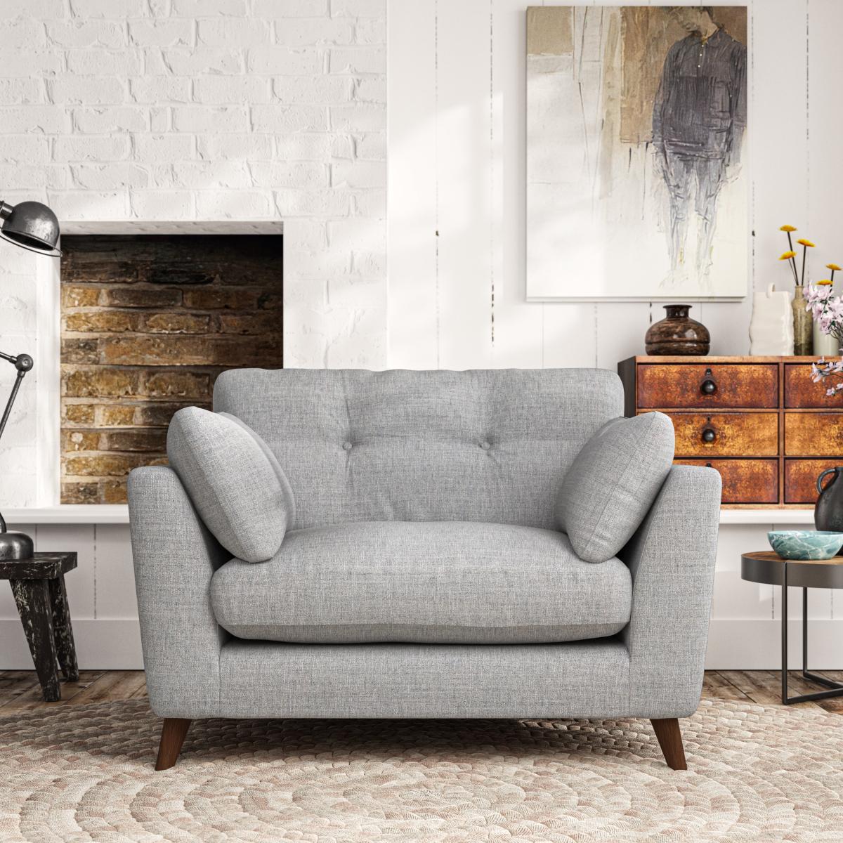 I love the Peyton Snuggle Chair for its chunky tonal weave, which offers both texture and visual interest without overwhelming a space. It works particularly well in cosy, relaxed interiors such as Scandinavian or mid-century modern schemes, where its neutral silver tone can be layered with soft throws and cushions in complementary hues. Practical styling tips include pairing it with a plush rug and accenting with natural materials like wood or leather accessories to create a balanced, inviting atmosphere. Its compact size makes it versatile for smaller living rooms or as an additional seating option in larger spaces, while its warm fabric hides wear and tear, making it a practical choice for everyday use.