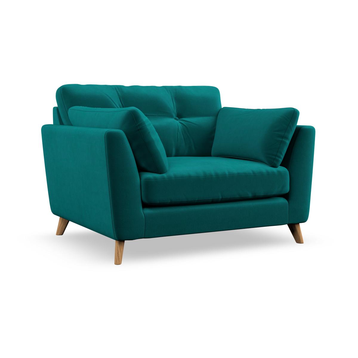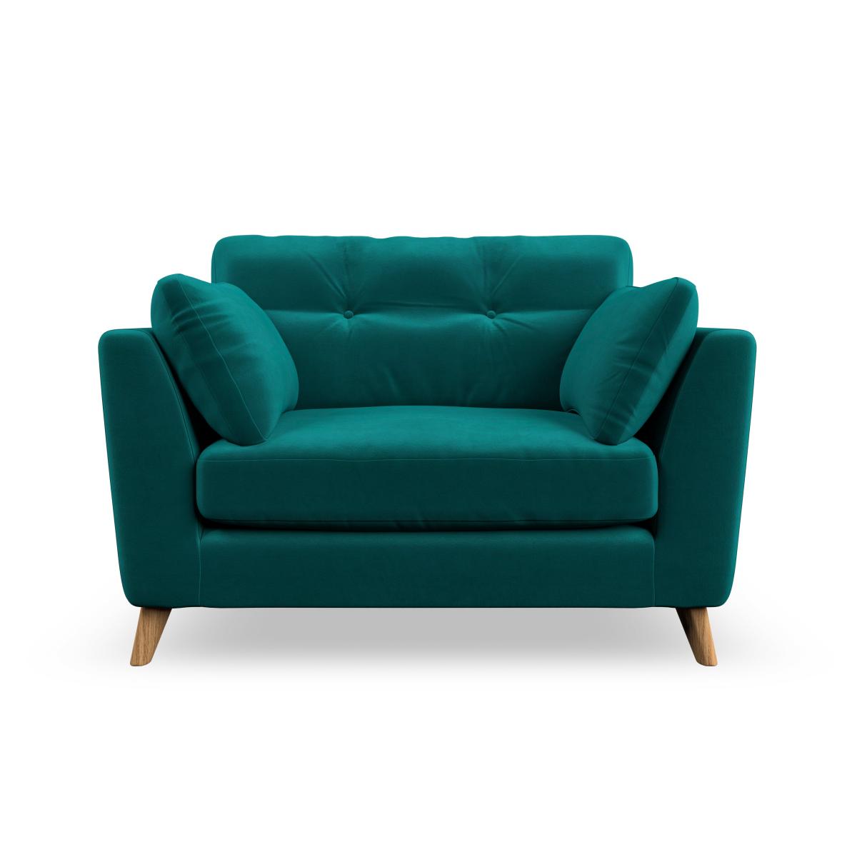 I love this snuggle chair for its cosy, plush velvet finish and compact size, making it a versatile piece for smaller living rooms or reading nooks. It works particularly well in contemporary or retro-inspired interiors, thanks to its clean lines and vibrant peacock colour. To style it effectively, consider pairing with neutral tones in cushions or throws to let the colour truly pop, and add soft lighting such as a floor lamp or table lamp to enhance its tactile quality. Practical tips include placing it near a window or a statement piece wall to make it a focal point, and pairing it with a small side table for functionality without cluttering the space.