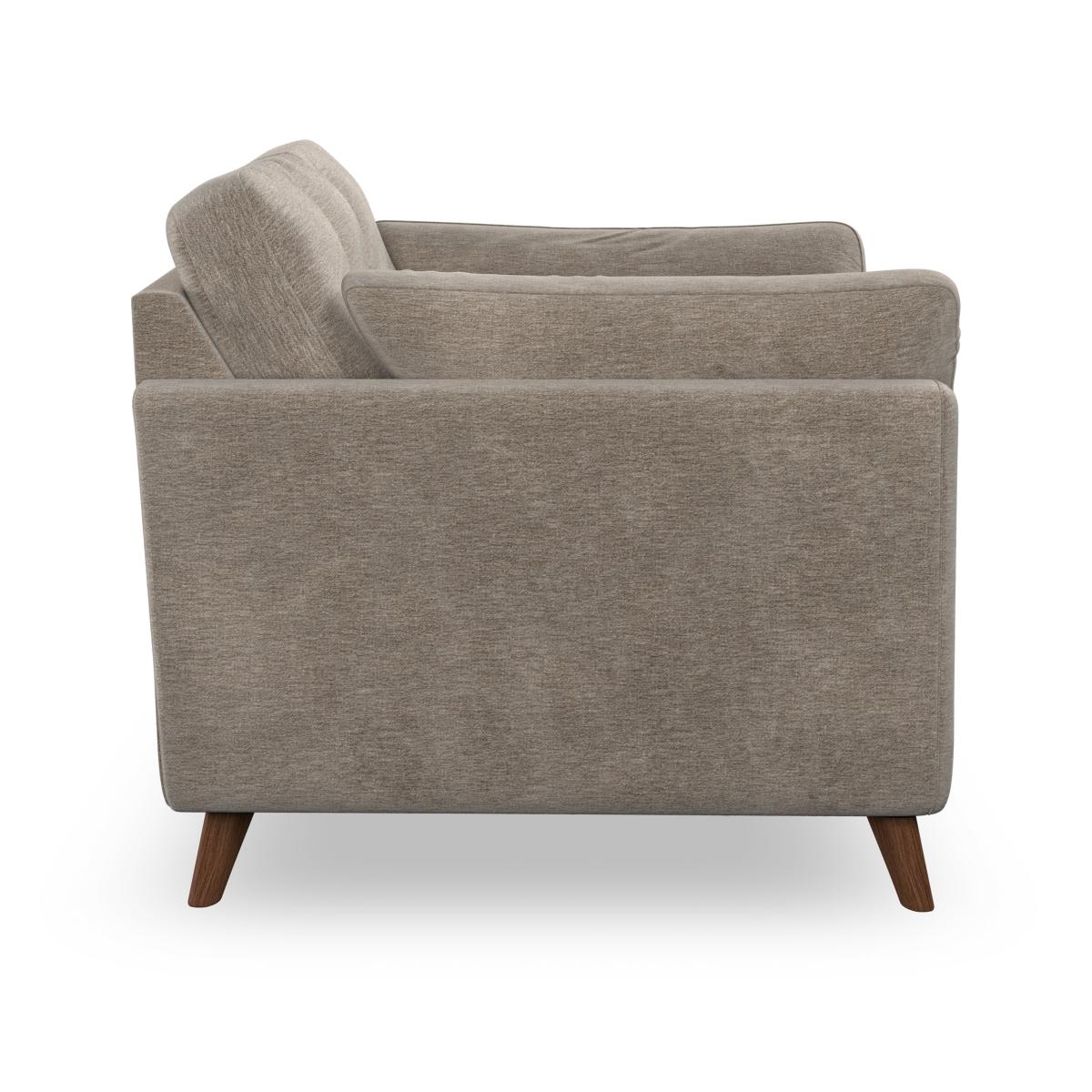 * Mid-century style* Pillow top arms* Button pull details* Choose fabric type, leg colour and cushion filling This chair showcases mid-century style with its elegant silhouette and plush pillow top arms, offering a perfect blend of comfort and sophistication. The button pull details on the supportive back cushions add a refined touch, enhancing its classic appeal. Customise your chair to suit your personal taste by choosing from a variety of fabric types, leg colours, and cushion fillings, allowing you to create a piece that perfectly fits your living space.