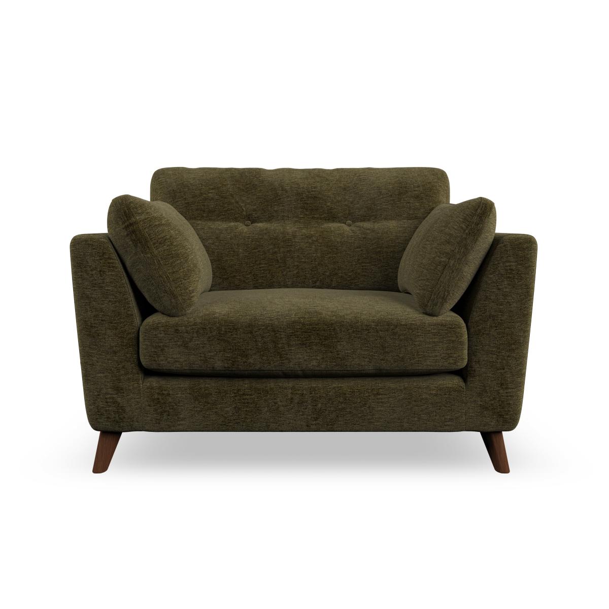 I love the Peyton Snuggle Chair for its practical yet elegant design, making it a versatile addition to many living spaces. Its luxurious chenille fabric in olive adds warmth and texture, perfect for creating cosy corners in both modern and vintage-inspired interiors. This loveseat works particularly well in eclectic, mid-century, or contemporary schemes, paired with natural woods, soft rugs, and plenty of cushions for added comfort. Practical styling tips include layering with patterned throws or contrasting cushions to inject personality, and placing it alongside a side table or reading lamp to enhance its inviting appeal. Its slightly retro vibe makes it a great focal point without overwhelming a space, offering both style and comfort in equal measure.