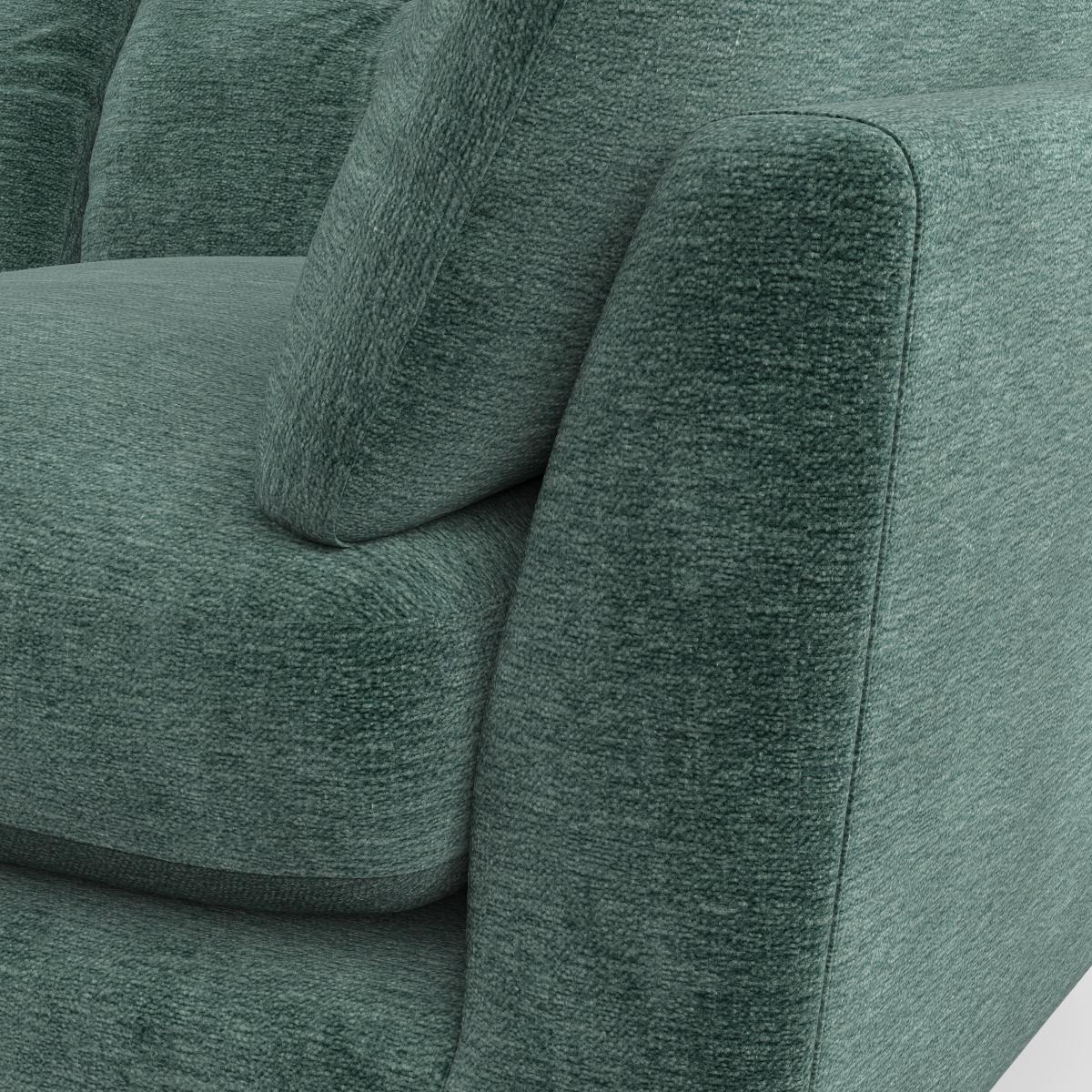 * Mid-century style* Pillow top arms* Button pull details* Choose fabric type, leg colour and cushion filling This chair showcases mid-century style with its elegant silhouette and plush pillow top arms, offering a perfect blend of comfort and sophistication. The button pull details on the supportive back cushions add a refined touch, enhancing its classic appeal. Customise your chair to suit your personal taste by choosing from a variety of fabric types, leg colours, and cushion fillings, allowing you to create a piece that perfectly fits your living space.