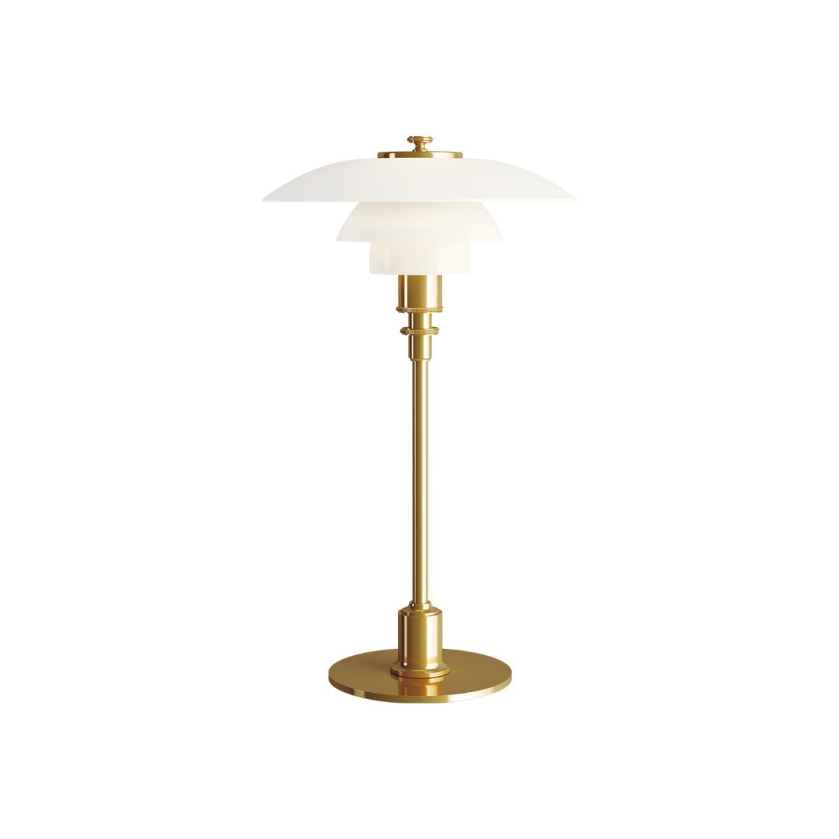 A dynamic-looking lamp by Copenhagen-born Poul Henningsen, the brass PH 2/1 Table Lamp was originally designed in 1925 and has since been crafted by Denmark's prestigious lighting manufacturer Louis Poulsen. Showcasing an intricate three-tiered shade for a glare-free emanation, the diffuser is crafted from mouth-blown opal glass and helps to reflect and direct light downwards. Glossy on its surface and sandblasted to give a matte finish on the underside, the PH 2/1 Table Lamp creates a subtly diffused light distribution. Accented with a polished metallised brass stem with a coordinating white fabric cord and an integrated switch, this design classic would lend impeccable style to any space. Forming a lifelong collaboration with Louis Poulsen in 1925, Poul Henningsen is renowned across the globe for his innovative and radical approach to all his creative practices. A pioneer of Danish design, Henningsen also turned his hand to journalism and architecture throughout his career. Requires: 1 x Max 33W G9 bulb
