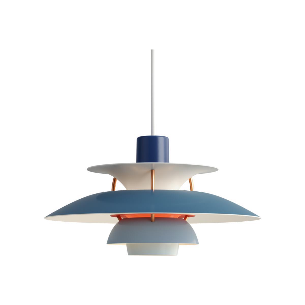 The striking PH 5 Mini Pendant in hues of blue is the first ever resize of the iconic PH 5 Pendant by Poul Henningsen. Providing 100% glare-free light and a uniform illumination, the PH 5 Mini Pendant has been launched by Danish lighting specialist Louis Poulsen in the spirit of Poul Henningsen, offering a brand new selection of innovative colourways that were developed with colour expert Louise Sass. Formed using blue powder-coated spun aluminium, the three shades of the PH 5 Mini Pendant Light are reflective and direct light downwards for a bright emanation, the signature system of Henningsen. A pioneer of lighting design, Poul Henningsen meticulously analysed light and created innovative designs throughout his long career. Finished with a coordinating red anti-glare disc and rolled aluminium struts in a bronze finish, the PH 5 Mini Pendant looks particularly striking when hung in a cluster. Finished in impeccably curated hues of blue, the PH 5 Mini Pendant Light is produced by Louis Poulsen, a Danish lighting manufacturer founded in 1874. Through collaborations with renowned designers such as Arne Jacobsen and Poul Henningsen, Louis Poulsen has established itself as one of the leading architectural lighting producers in the world. Requires: 1 x Max 40W E14 bulb (not included)