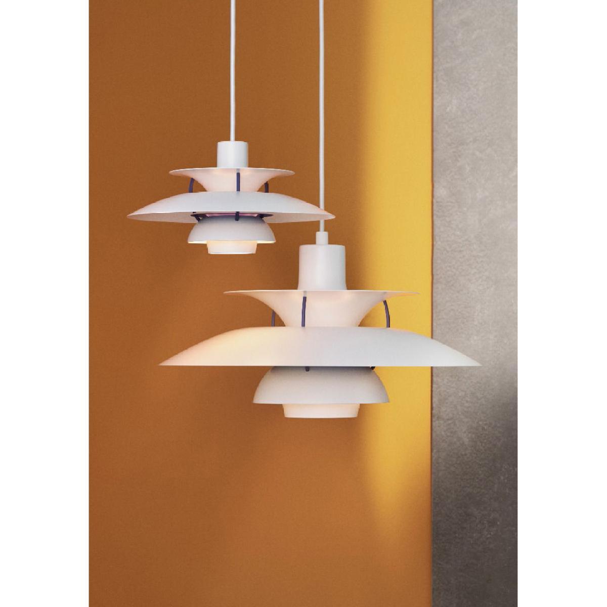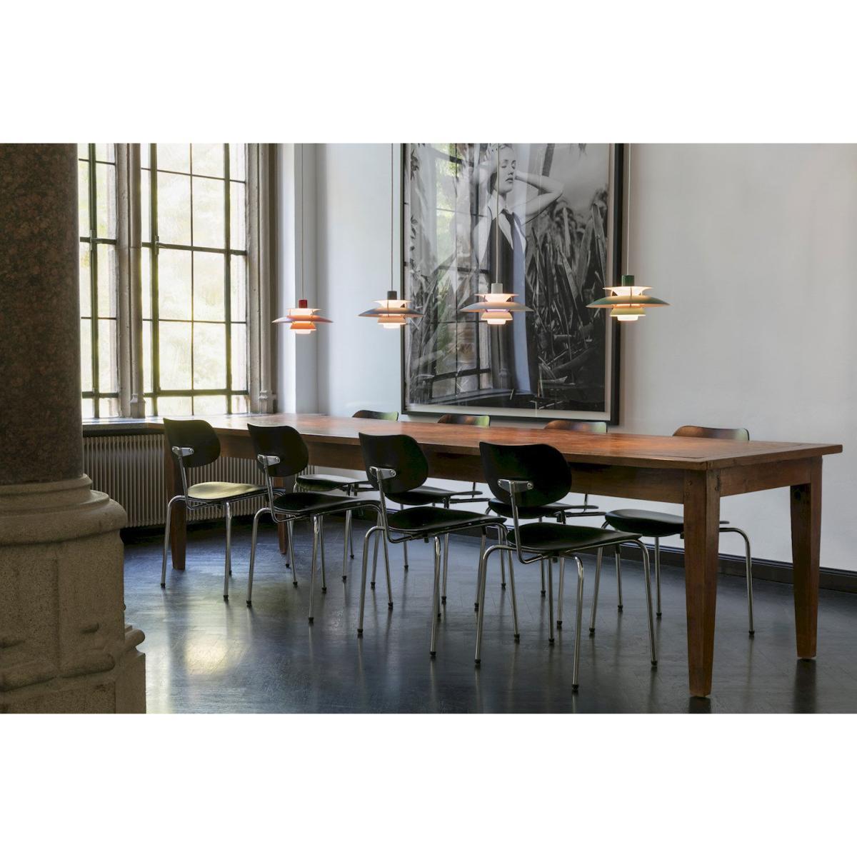 This is the smaller version of the famous PH 5 pendant, in a new range of subtle shades of colour. A true icon of Danish design, PH 5 is one of Denmark’s best-selling pendants! Designed by Poul Henningsen, the PH pendant was presented for the first time at the Museum of Art & Design in Copenhagen in 1958. Henningsen designed the PH collection of light fixtures in his quest for “perfect light”, “to achieve as natural a light as possible”. These lamps, encircled by metal lampshades serving as reflectors, cast a soft ambient light with no glare. The pendants distribute light both very comfortably and effectively, mainly downwards but also more gently at its sides. Its design makes it impossible to see the light source directly, so it will never be dazzling. It can be hung quite low, above a dining table for example, or higher up in the middle of a room. You can use a high luminosity bulb without compromising eye comfort. The pendant consists of three spherical lampshades mounted on a cone. Its mat lampshades are connected by rods. A vintage-style pendant that offers a perfectly homogeneous lighting, and which still attracts design enthusiasts the world over.