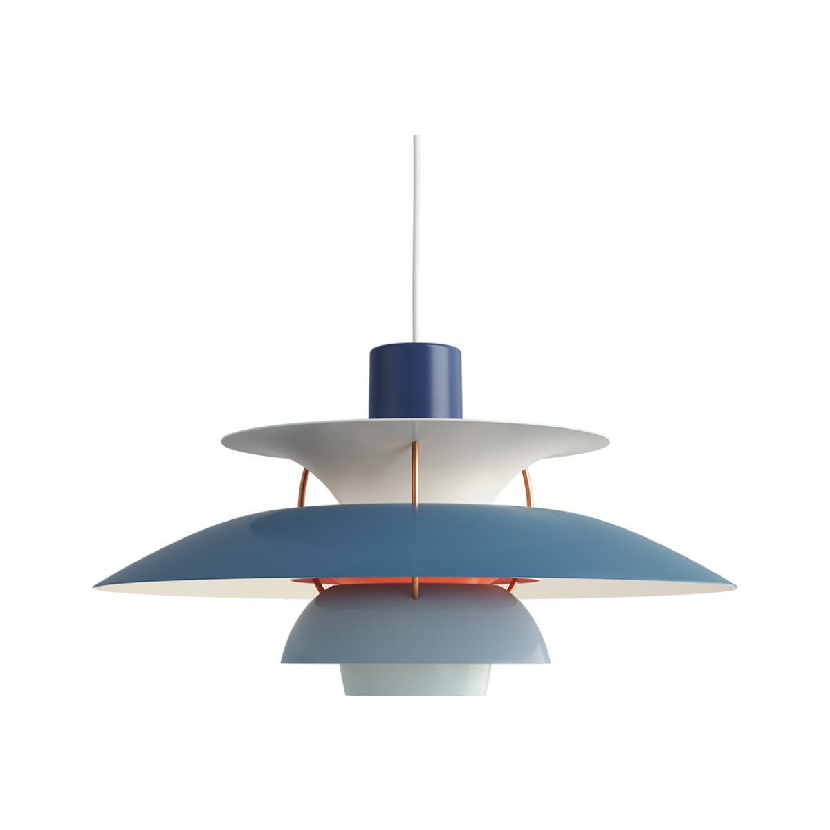 A dynamic-looking light by Copenhagen-born Poul Henningsen, the PH 5 Pendant Light was originally designed in 1958 and has since been produced by Denmark’s prestigious lighting manufacturer Louis Poulsen. A new take on Henningsen’s celebrated three-shade system, the PH 5 Pendant emits downward and lateral light to create a glare-free emanation. The lamp features four shades crafted from powder-coated spun aluminium in a range of hues and is accented with rolled aluminium struts in a bronze finish. Finished with a coordinating white ceiling rose and textile cord, the PH 5 Pendant Light is a truly refined design classic. Forming a lifelong collaboration with Louis Poulsen in 1925, Poul Henningsen is renowned across the globe for his innovative and radical approach to all his creative practices. A pioneer of Danish design, Henningsen also turned his hand to journalism and architecture throughout his career. Requires: 1 x Max 75W E27 bulb (not included).
