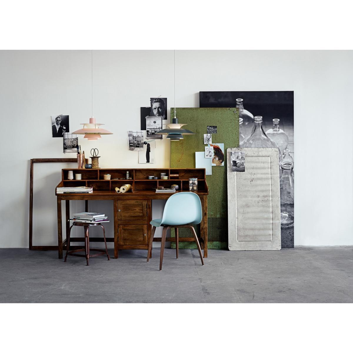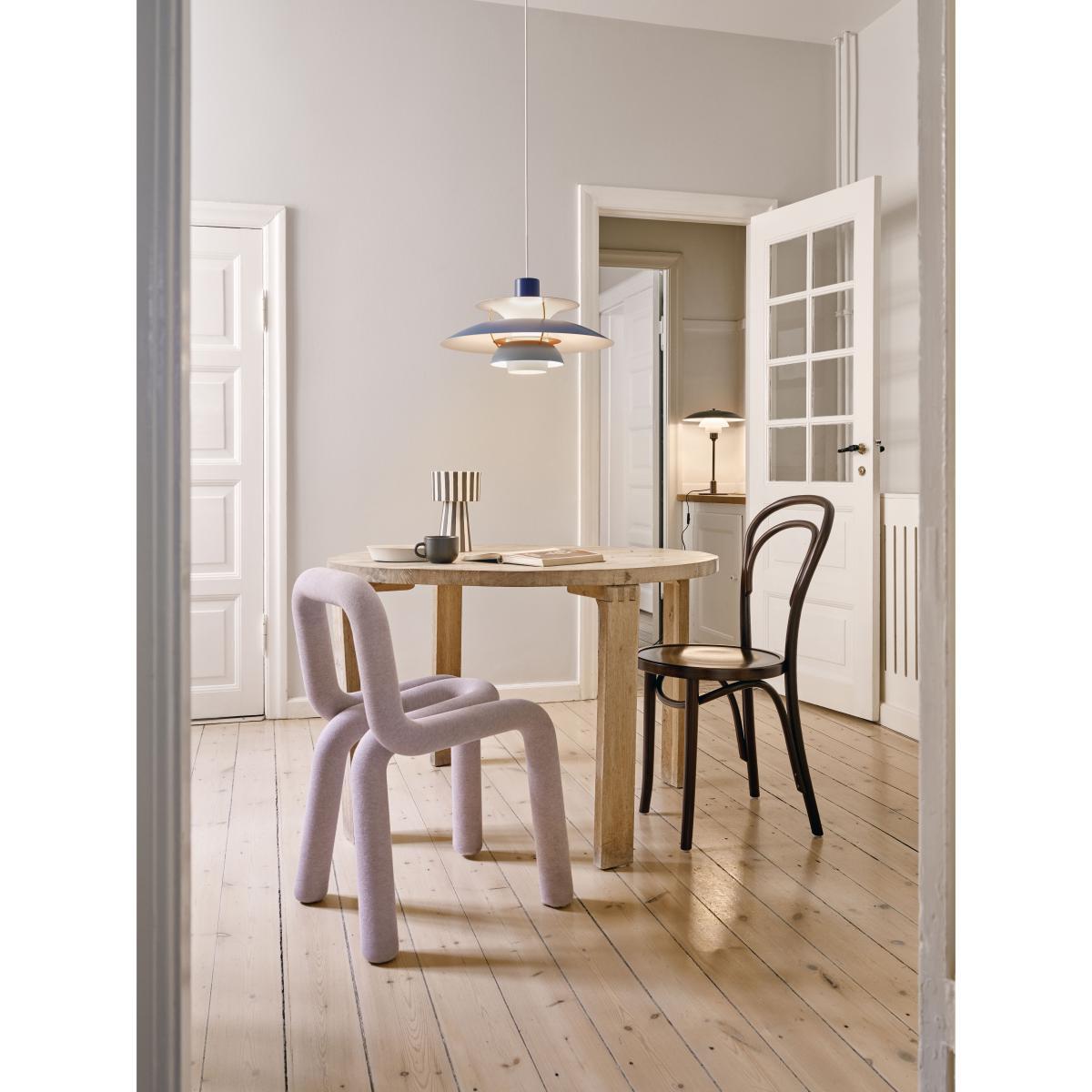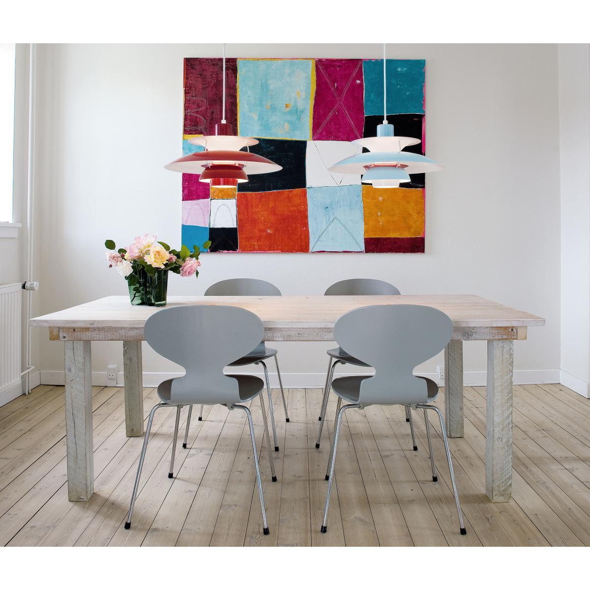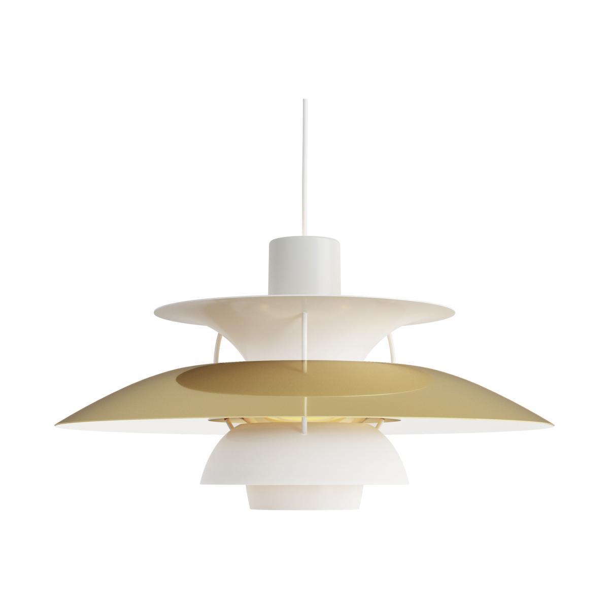 Designed by Poul Henningsen, the PH pendant was shown for the first time at the Copenhagen Art & Design Museum in 1958. A real Scandinavian design icon, it is one of the best-selling pendants in Denmark. In search of the "perfect light", Poul Henningsen designed the "PH" collection of lights to get as close as possible to natural light. These lamps surrounded by metal shades which play the role of reflectors, guarantee a diffuse, gentle light with no glare. These ceiling lights ensure an extremely comfortable and efficient diffusion of the light, mainly directed downwards, but which also leaves from the sides in a more subdued form. Due to its design, it is impossible to directly see the light source, which means there is absolutely no glare. It can be hung quite low above a dining table, or in the middle of the room in a higher position. It can be equipped with powerful light power all the while remaining comfortable on the eye. This pendant is made up of three spherical lampshades mounted on a cone. The lampshades are connected by white metal rods. This pendant with its vintage style still appeals to design fans all over the world today.