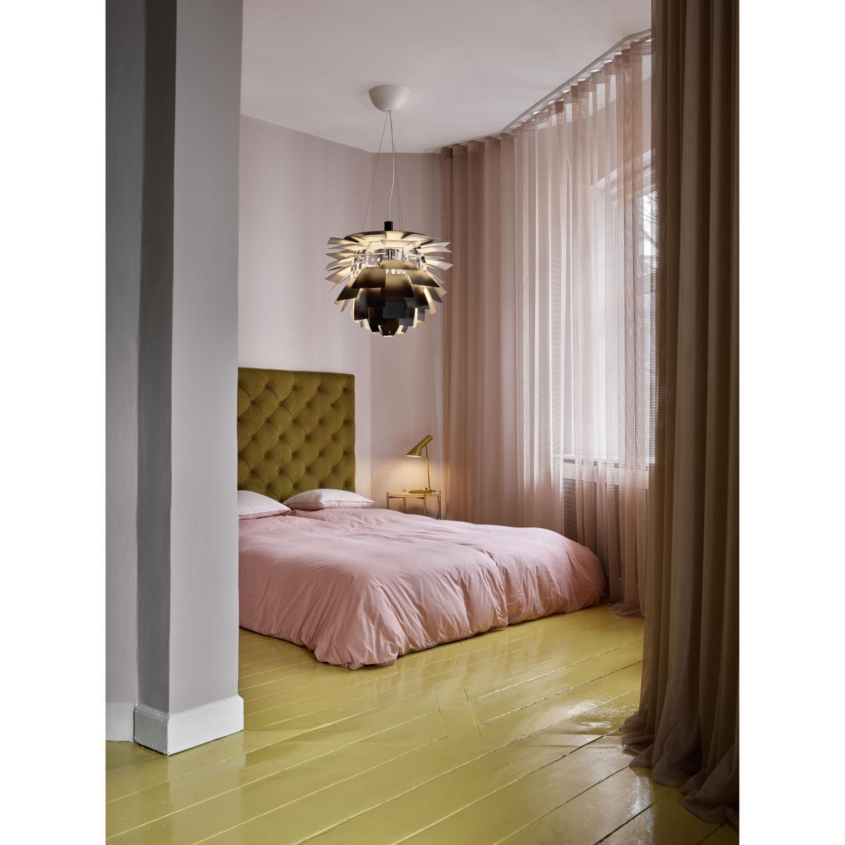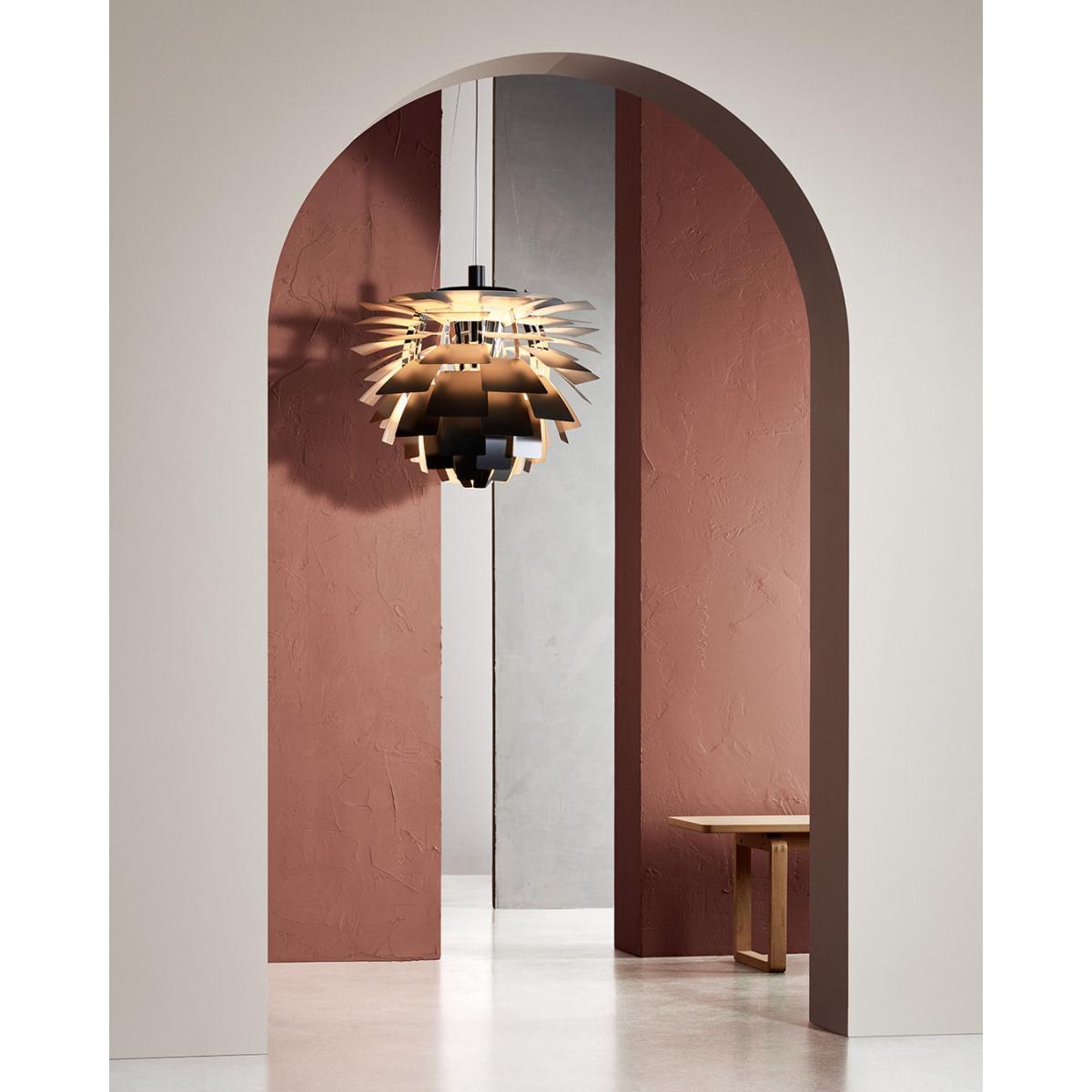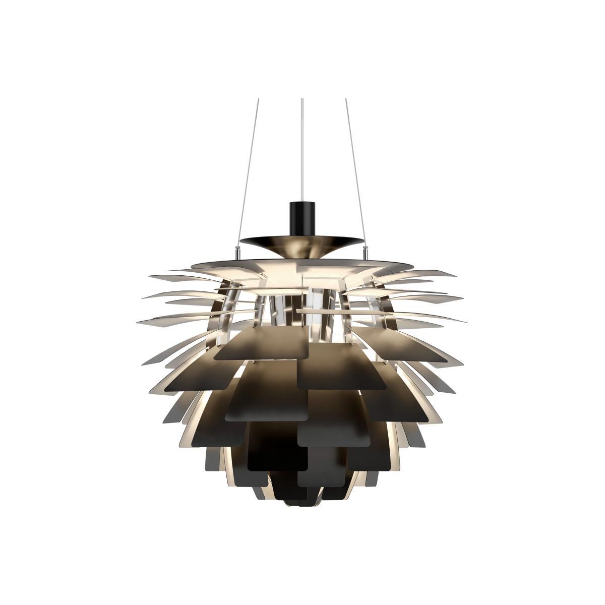 Enter the legend of Scandinavian design! The PH Artichoke (Pine Cone) pendant was originally designed in 1958 for “Langelinie Pavillonen”, a modernist restaurant in Copenhagen where it continues to delight visitors to this day. The legendary PH Artichoke pendant has since become a real icon. This timeless masterpiece is one of the iconic pieces of work by Poul Henningsen, a grand figure of Danish design: it is the result of deep research into how light diffuses. Its sculptural design expresses itself in new ways with each new finish. The characteristic shape and design of the pendant ensure completely glare-free lighting from any viewing angle, thanks to the 72 slats in their carefully thought-out position, which also inspired the pendant's name. Inspired by nature, the lampshade consists of several rows of overlapping leaves: 72 leaves in total mounted on 12 chromed steel arches. The leaves serve as light reflectors: their positioning has been designed to allow for a lighting that is both intense and direct while stopping the light from being glaring. Depending on the viewing angle, Artichoke offers a different light effect which highlights the aesthetics of the model. The leaves form a geometric, airy shape around the light source which they completely hide. PH Artichoke is still partially assembled by hand to this day to ensure a high level of quality. The quality of the lighting and elegance of the pendant are second to none. With its perfect frosted black finish, this version reinforces a bold style for an avant-garde interior, without compromising on design and quality of lighting. All PH Artichoke pendants come with a unique engraved identification number and certificate. You can register the light with its identification number on the Louis Poulsen website.