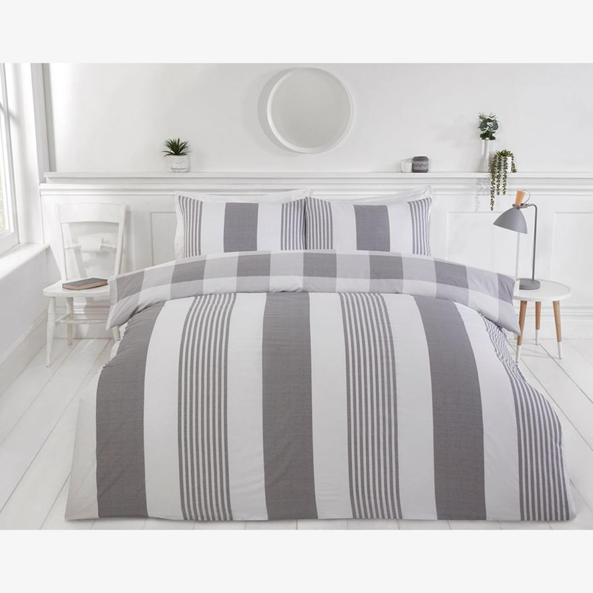 PH Chambray Polycotton Stripe Duvet Set With Pillowcase - Grey / Single
