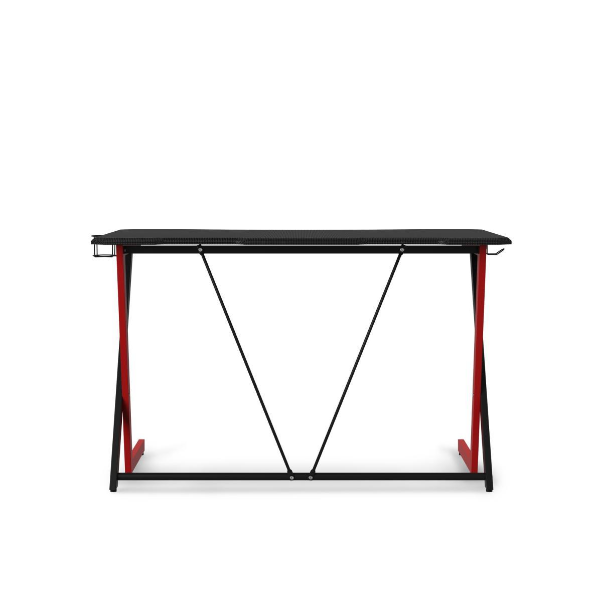 Stay ahead of the game with the Phantom desk, designed with an angled steel frame in stylishly contrasting black and red for a modern, open feel. This desk features a large and sturdy carbon fibre effect worktop perfect for holding multiple monitors and other hardware. The Phantom desks also includes a detachable headphone hanger and drinks holder, perfect for keeping your station neat and tidy.