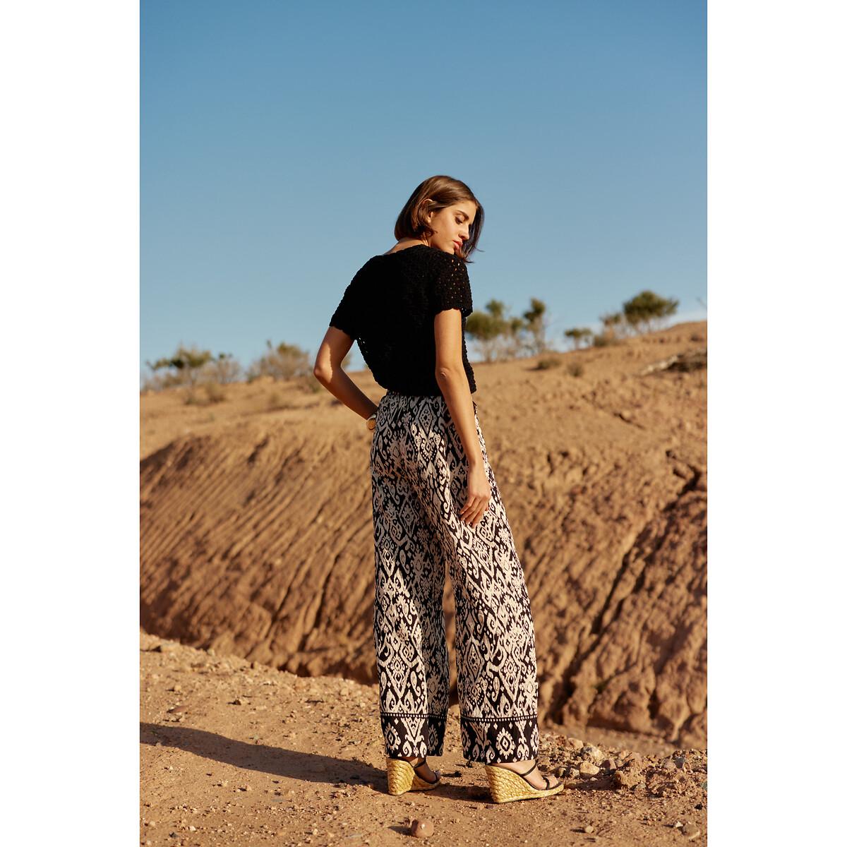 Women's Phara printed wide leg trousers. Straight cut printed trousers in a loose fit with an elasticated waist. Product details • Loose fit with wide leg • Mid rise • Graphic print Fabric content and care advice • 80% cotton, 20% polyamide • Please refer to the care instructions on the product label
