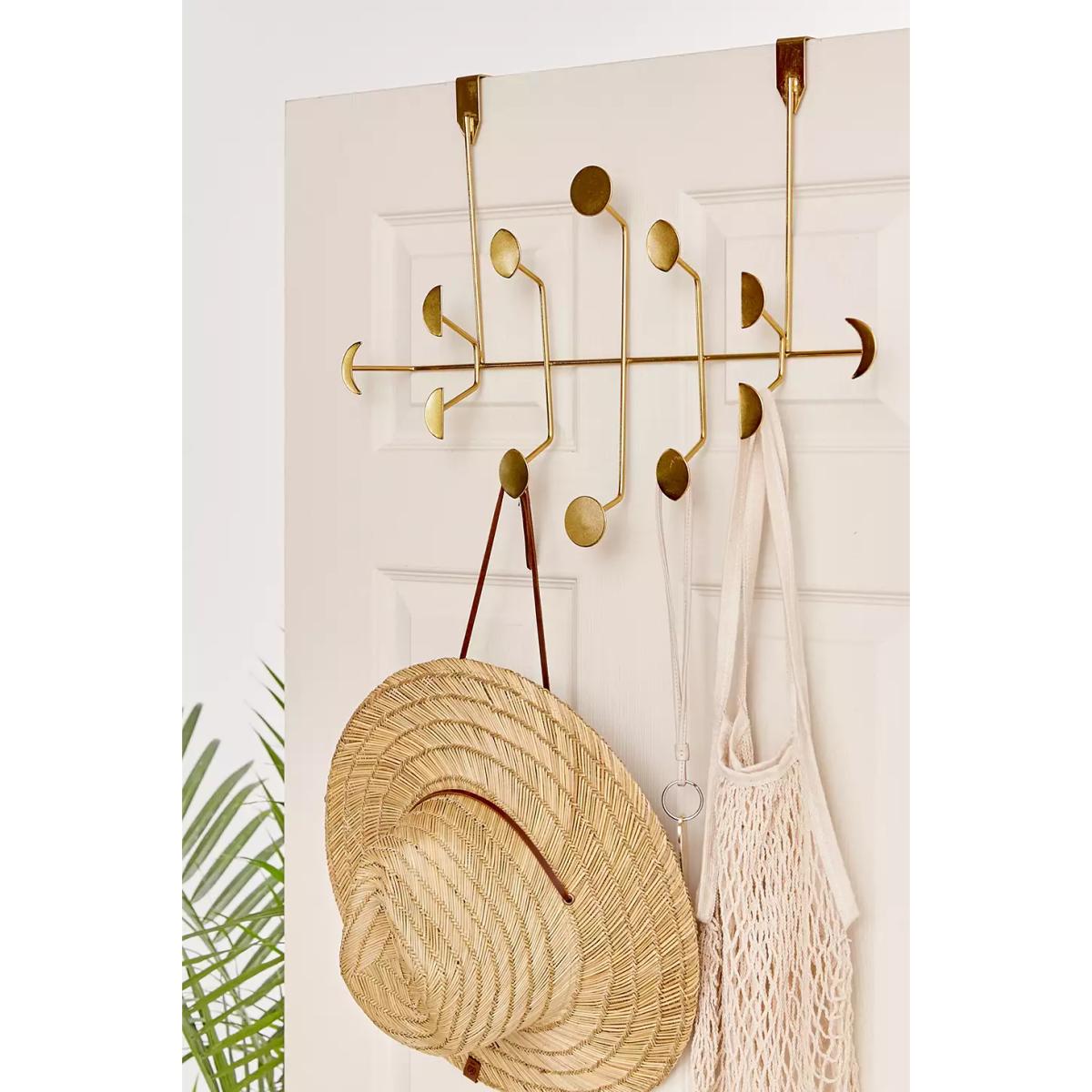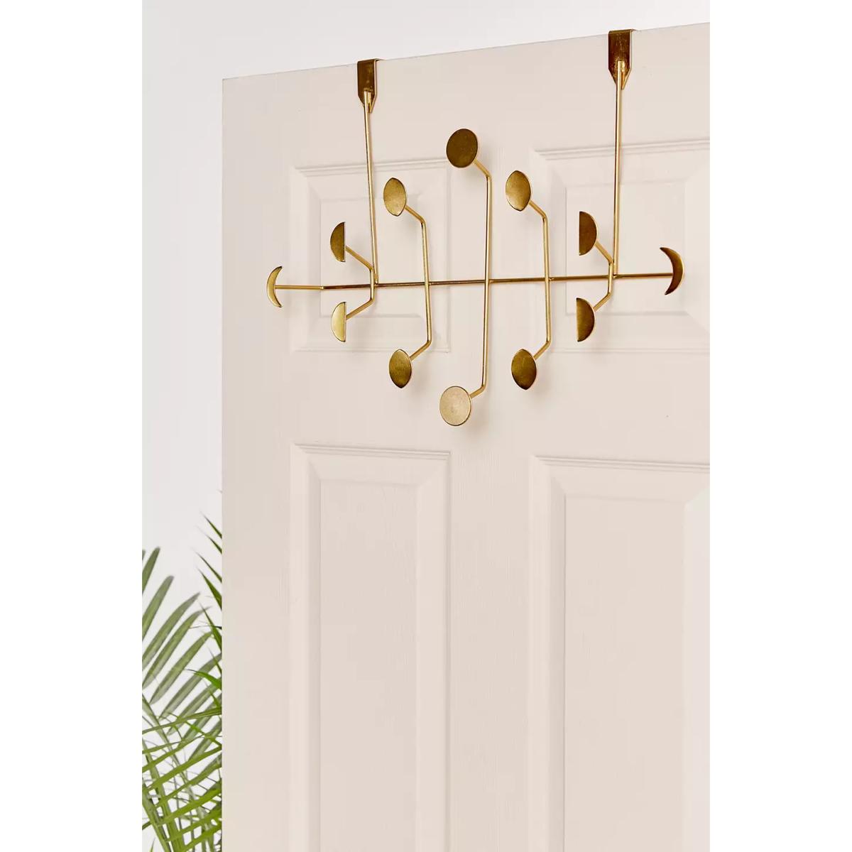 Declutter any space with this brass set of hooks. Features a moon phase motif + 10 individual hooks. Easily tops any door! **Content + Care** \- Brass \- Wipe clean **Size** \- 63.5cm (w) x 12.7cm (h)