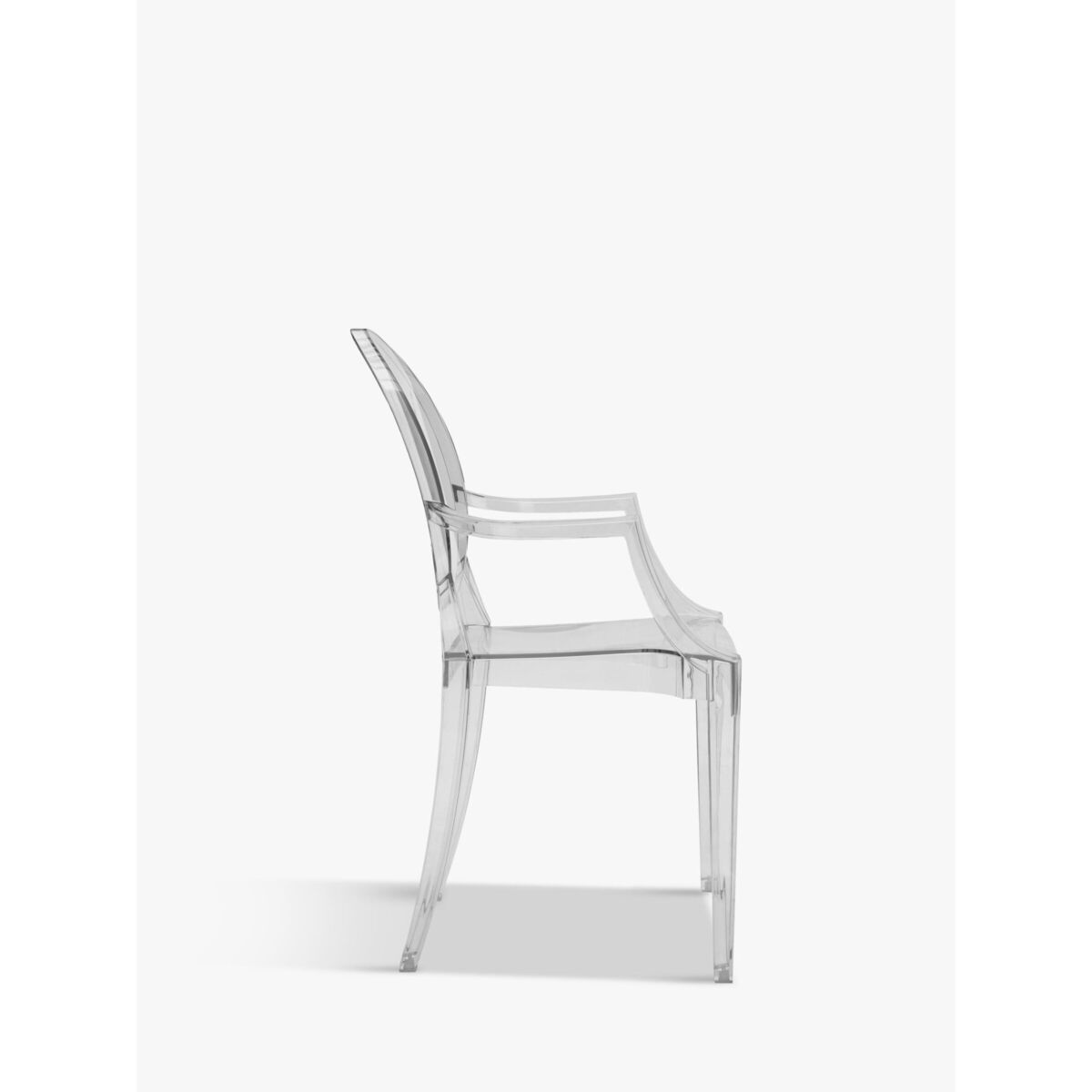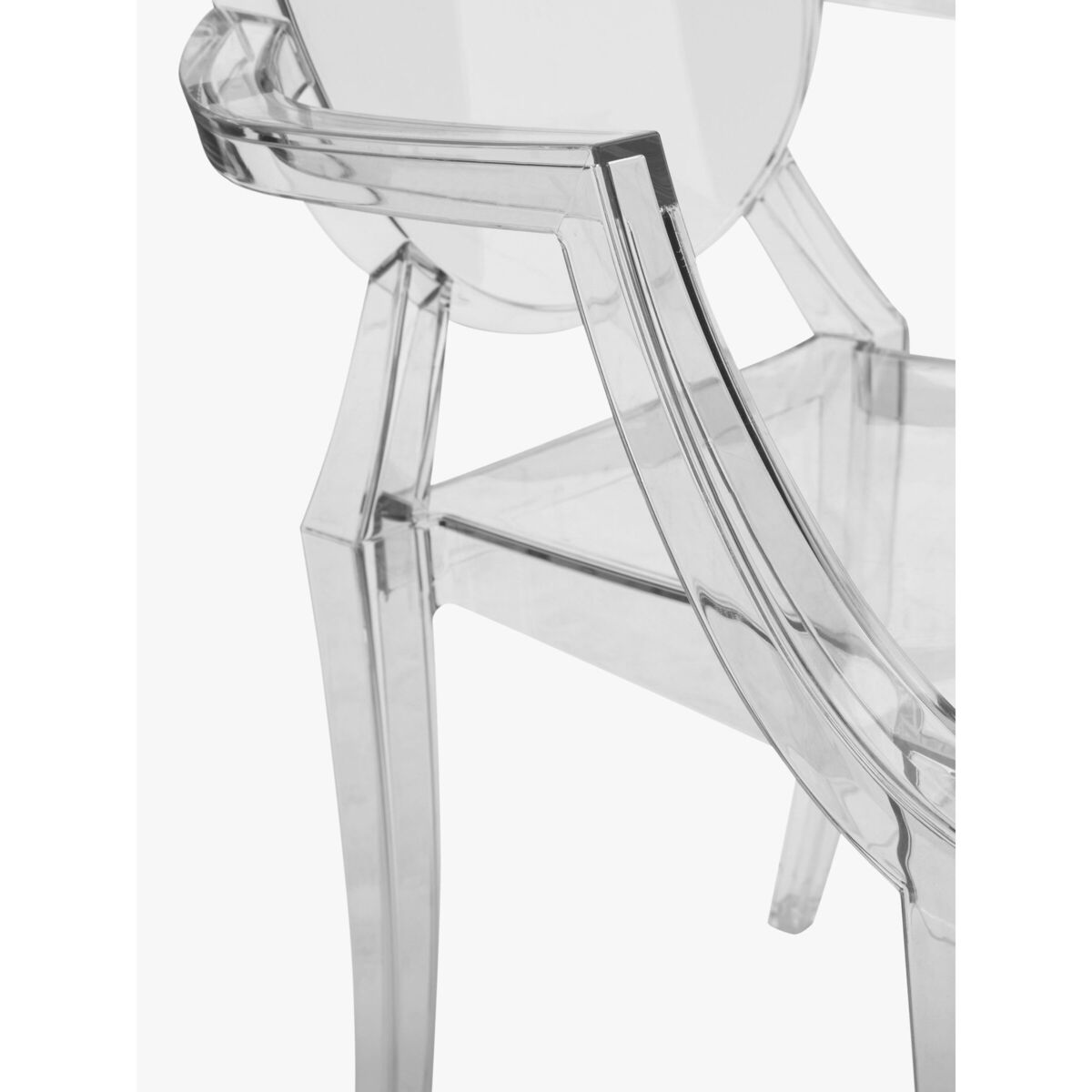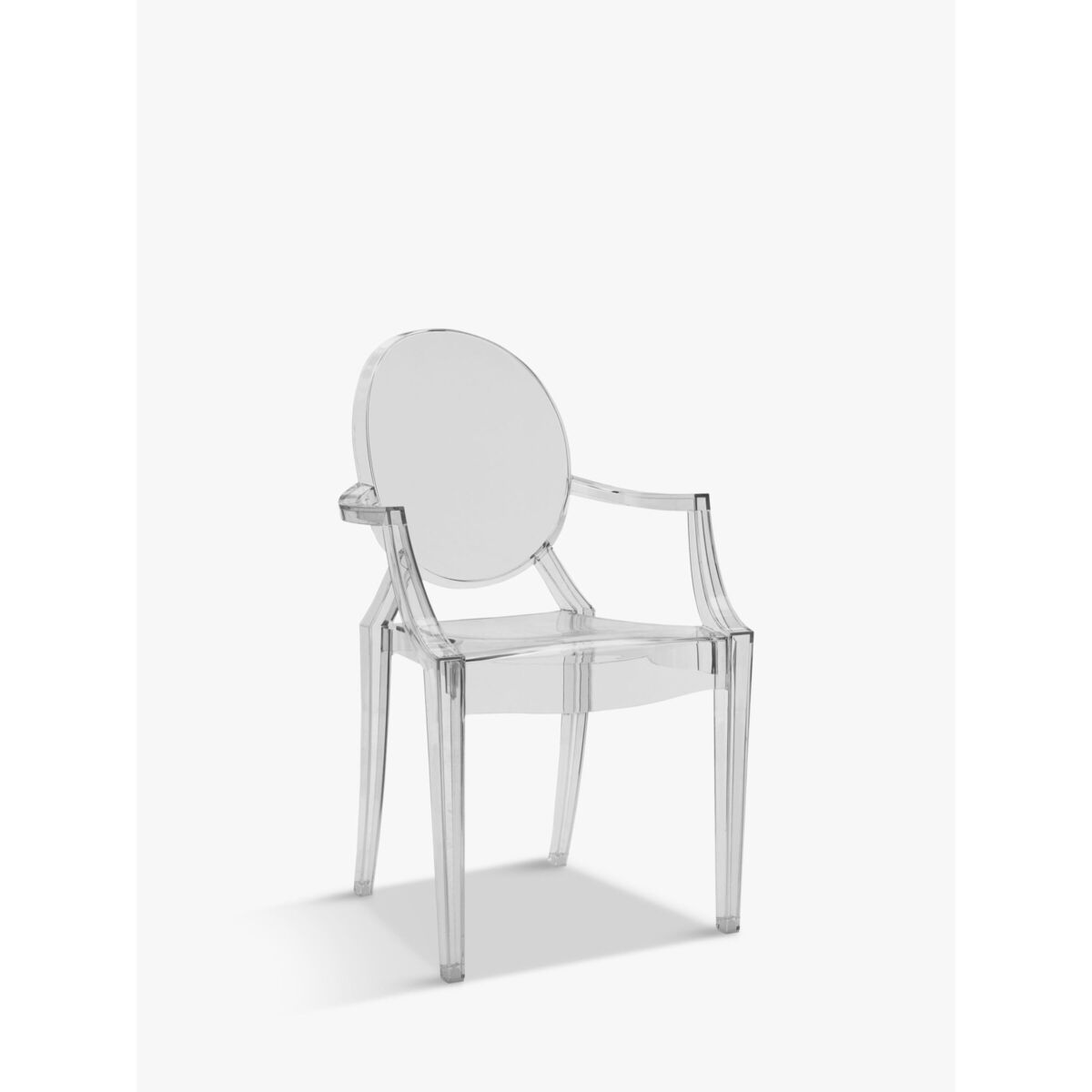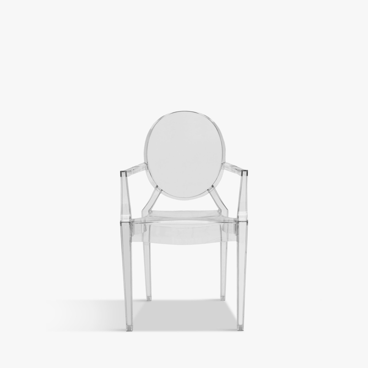 Created by innovative architect and product designer Philippe Starck, the Ghost chair has become a modern cult classic. The Baroque style, with its flamboyant flourishes, is boiled down into one single mould of polycarbonate, which is highly durable and easy to wipe clean. Up to seven of these chairs can be stacked. This chair is now made from polycarbonate 2.0, a new, ecological material with unchanged qualities of transparency, strength and durability. It reduces carbon dioxide emissions by 60% compared to fossil-based polycarbonates and highlights Kartell's commitment to innovative industrial products with a greener design. Philippe Starck is a legend of modern design whose repertoire has left permanent mark by producing some of the iconic shapes of the 20th century through his bold reworkings of everyday objects - from interiors to mass-produced consumer goods such as toothbrushes, chairs, and even houses. Want to see it first? You may want to see and get a feel for the furniture in one of our shops before ordering. We'll be able to tell you where the range you'd like to view is on display.