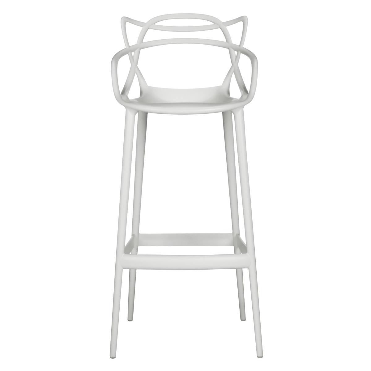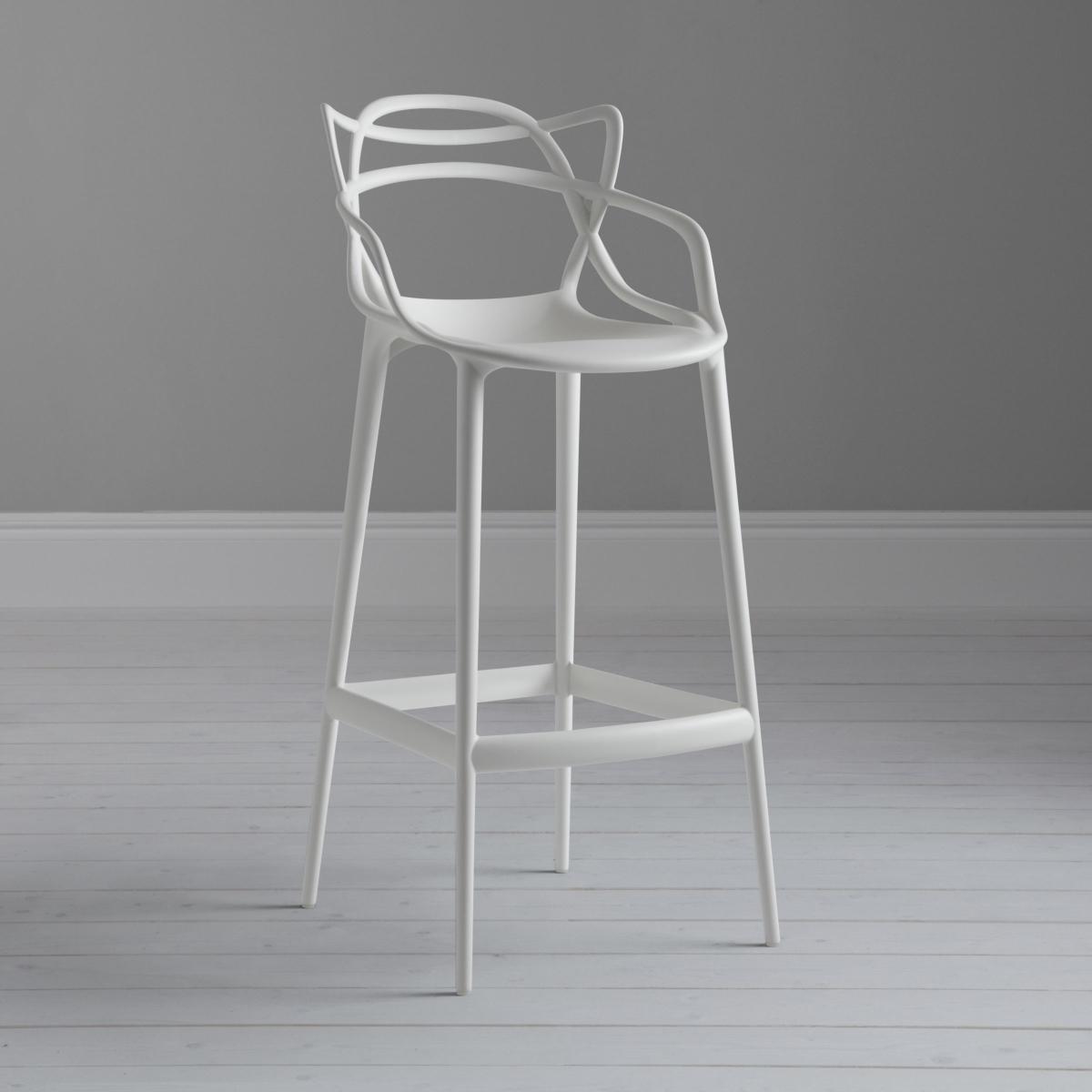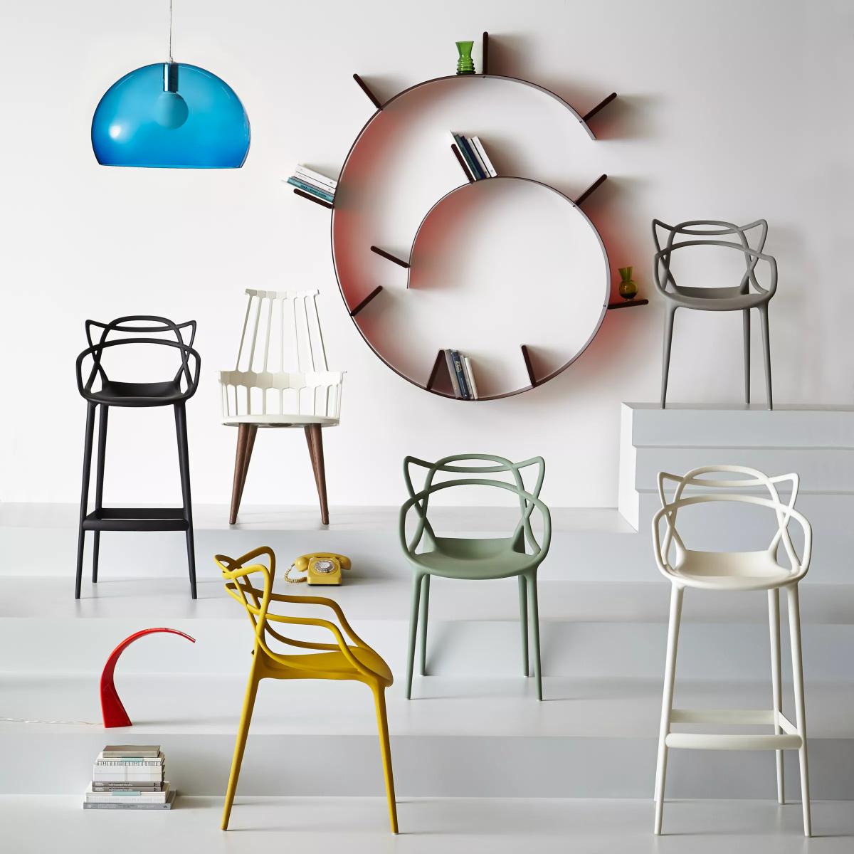 In the bar stool version of the Masters chair, the legs lengthen and the seat becomes more compact, but the unmistakable graphic style of its structure remains the same. Designed by Philippe Starck in collaboration with Eugeni Quitllet, it's a hybrid of three iconic Kartell designs: 'Serie 7' by Arne Jacobsen, the 'Tulip Armchair' by Eero Saarinen and the 'Eiffel Chair' by Charles Eames. Made from sturdy polypropylene, it's lightweight, practical and it also be used outdoors. Contains 100% recycled materials. Want to see it first? You may want to see and get a feel for the furniture in one of our shops before ordering. We'll be able to tell you where the range you'd like to view is on display.