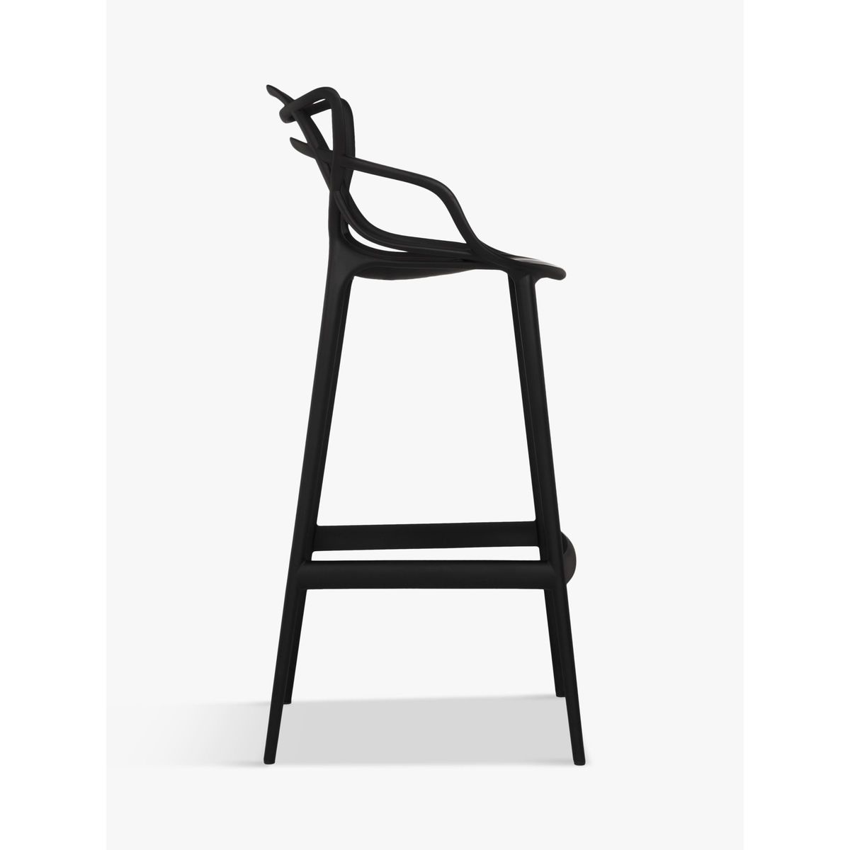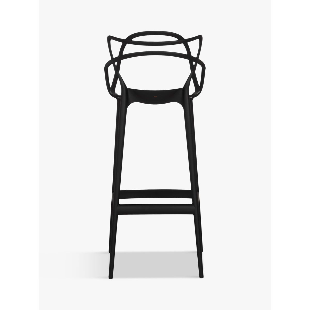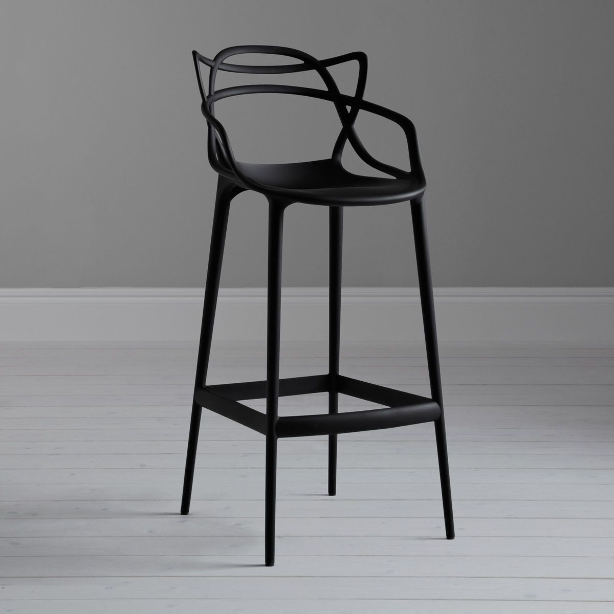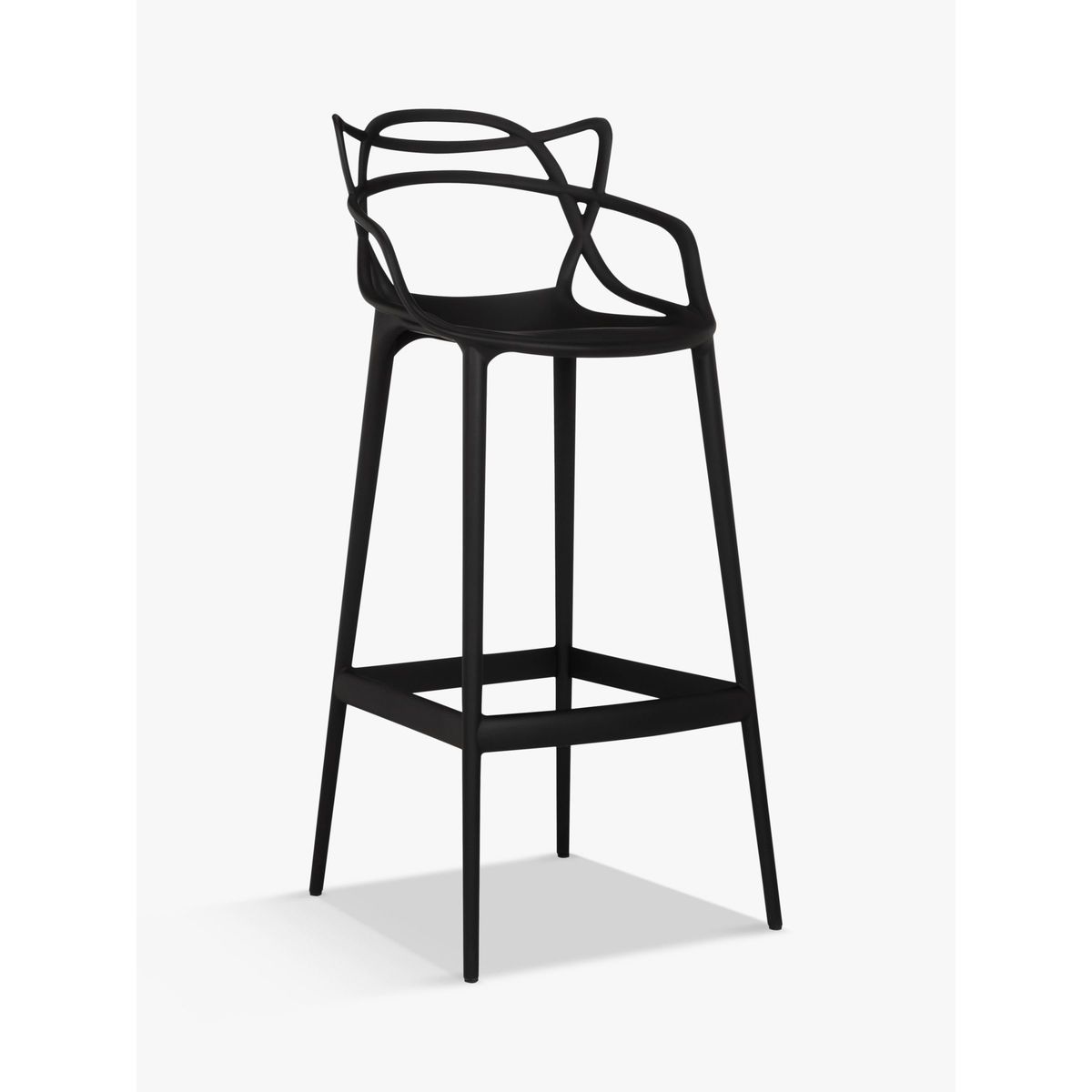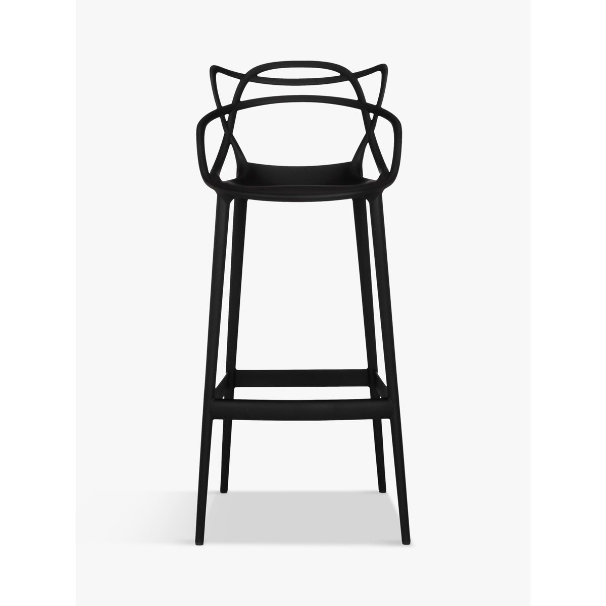 Designed by Philippe Starck in collaboration with Eugeni Quitllet, Masters is a hybrid of 3 iconic Kartell designs: the Series 7 by Arne Jacobsen; the Tulip armchair by Eero Saarinen and the Eiffel chair by Charles Eames. The Masters bar chair is roomy and comfortable. Supported on slender legs, the back shapes of the 3 original designs are create by solid lines and voids which flow down and join together along the perimeter. Philippe Starck is a legend of modern design whose repertoire has left permanent mark by producing some of the iconic shapes of the 20th century through his bold reworkings of everyday objects - from interiors to mass-produced consumer goods such as toothbrushes, chairs, and even houses. Please note: not all our ranges are on display in our shops.