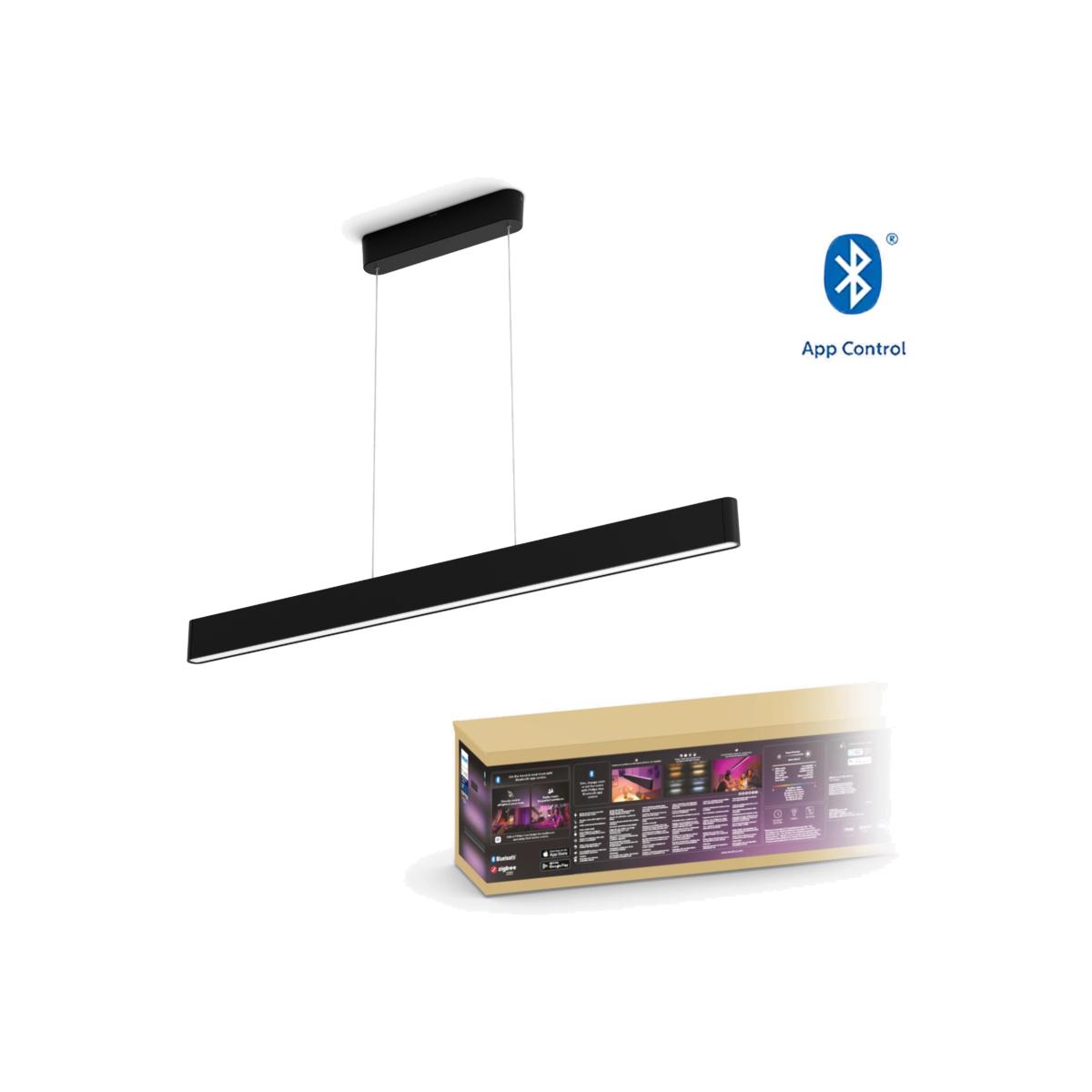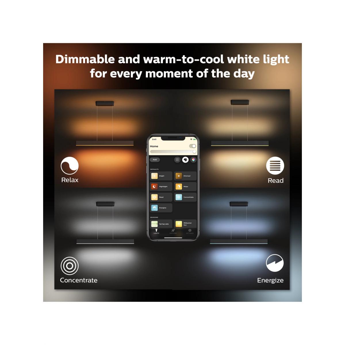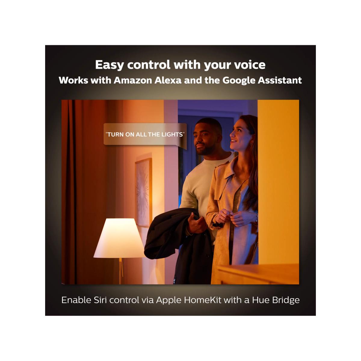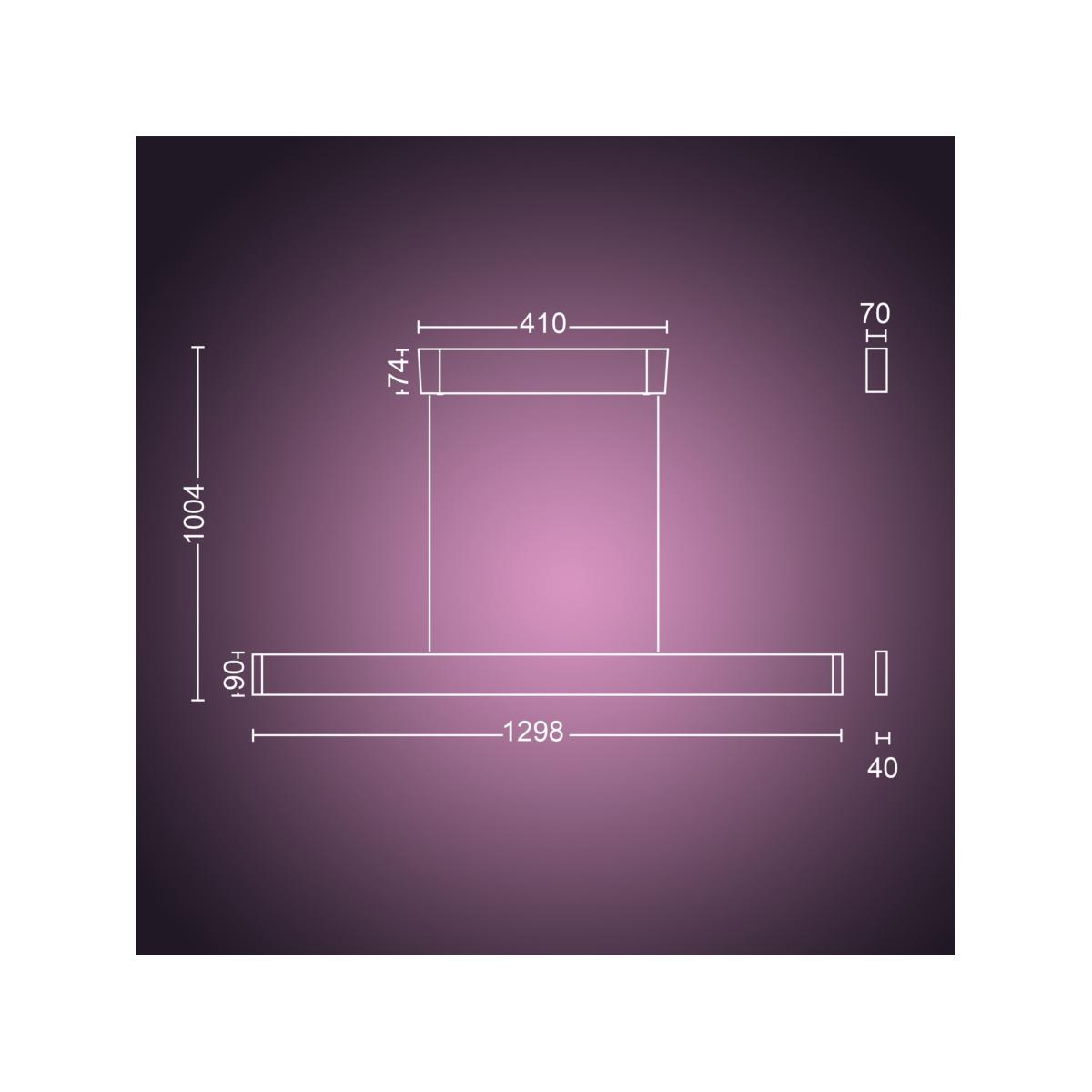 This LED pendant ceiling light will transform your room with coloured light. Smart control straight out of the box This light works with the free Philips Hue Bluetooth app. Simply install it and connect straight away to the Bluetooth app for instant, smart lighting control from anywhere in your home. You can add up to 10 smart lights on to one mobile device. Shades of light Choose from shades of warm-to-cool white light or use millions of colours of light to transform your space. This allows you to create the perfect ambience and choose the best light levels throughout the day, and around your activities. Built-in light recipes Cool-toned, bright-white daylight is best at the start of the day as it helps to energise your body and mind. A soft glow of warm white light is better in the evening and will help you to unwind and relax. Voice-assisted, hands-free control Control this light with simple voice commands. Philips Hue works with Alexa and the Google Assistant when paired with a compatible device. Unlock additional features with the Hue Bridge To experience the full potential of this smart light, connect to a Philips Hue Bridge (optional extra, available to purchase separately). Additional Philips Hue features include: setting timers and routines with light, controlling your lights remotely and automating your entire smart home lighting set up. There's also the option to add other accessories, including motion sensors and smart switches.