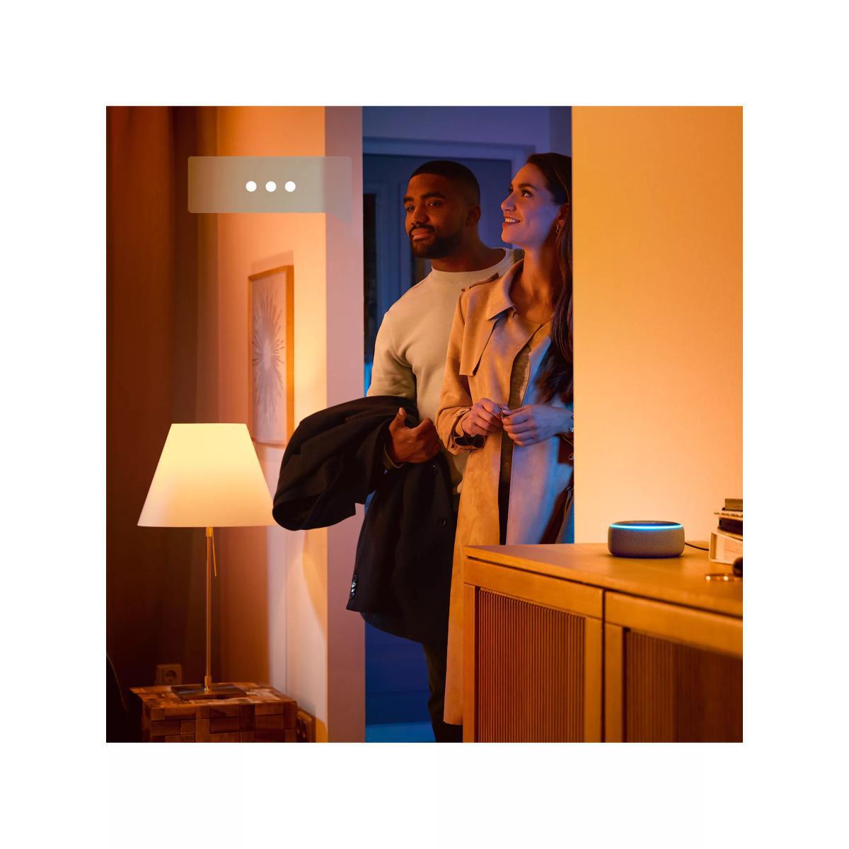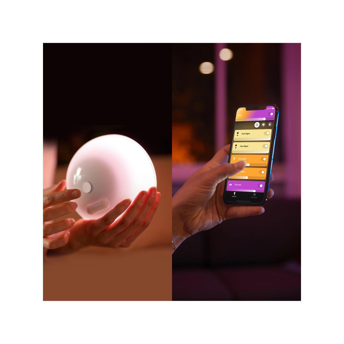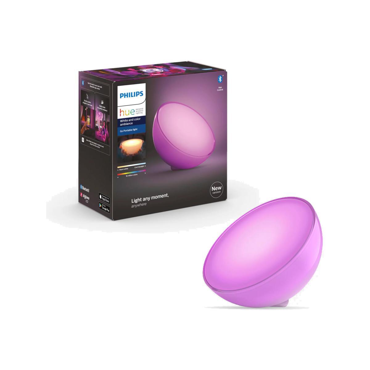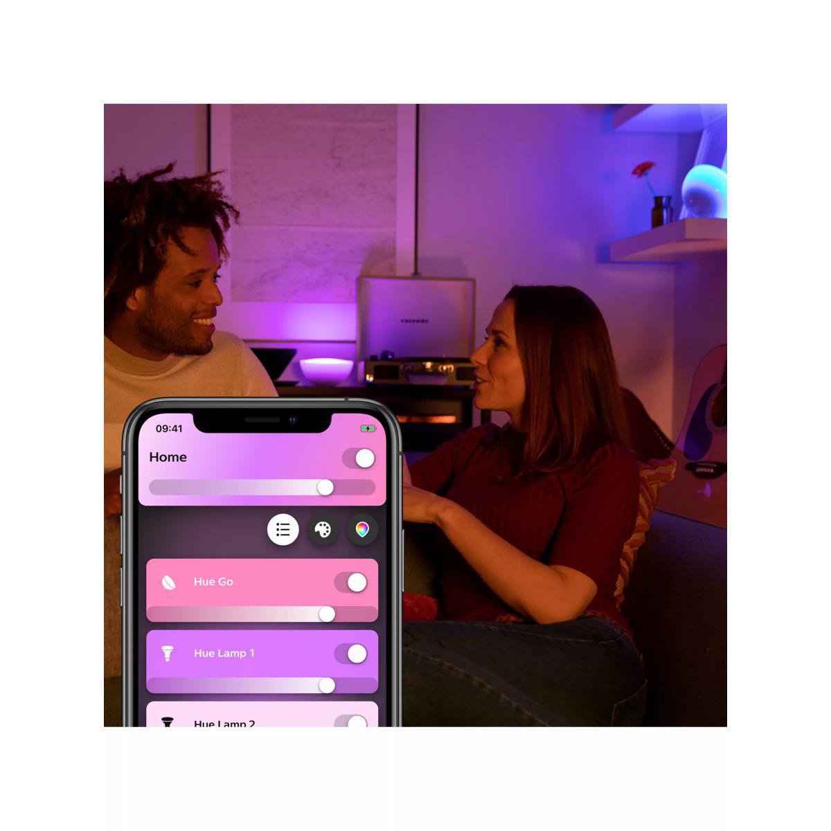 Philips Hue Go is a portable light that can colour your life with a shade of your choosing. Go can be controlled via Wi-Fi using the Philips Hue app, by Bluetooth, or by using the on-light controls. With Bluetooth, you can control this bulb straight out of the box using the Hue Bluetooth app, and it works with Alexa and the Google Assistant voice assistant devices. Pick the perfect colour 5 colour setting and 2 white settings on the light will let you easily choose a basic mood for your Go. If you want to pick a specific shade, then connecting Hue Go to your Wi-Fi via the Hue Bridge (sold separately) will let you unlock 16 million colour shades and let you pair your Go with other Hue lights on your system. Connected Connecting to your network also gives you a wide variety of other options already found in other Hue lighting products, such as creating Light Recipes, If This Then That (IFTTT) rules, and many other features that can be found through over 200 apps on the i. Tunes store. Bluetooth With the Hue Bluetooth app (available on iO. S and Android), you can control this light directly from your smart phone, without the need for the Hue bridge. The app can control up to ten bulbs and smart lights. Works with voice assistants This Philips Hue light works with compatible Alexa and Google Assistant devices. So you can control multiple lights in a room, or a single lamp, with just your voice. Long lasting battery The battery in Hue Go will last for up to 18 hours depending on light settings used, letting you take it anywhere inside or outside of your home. Please note: Hue lights require a separate Hue Bridge to connect to your home network for the full suite of available features. Hue Bridge can be purchased as part of a Hue Starter Kit.