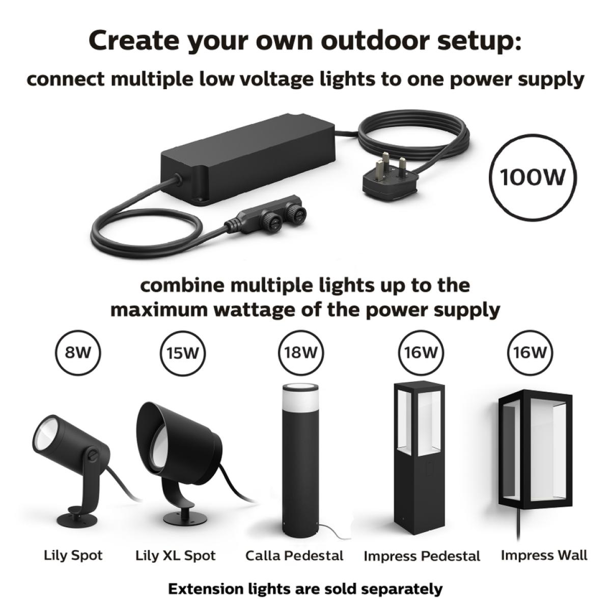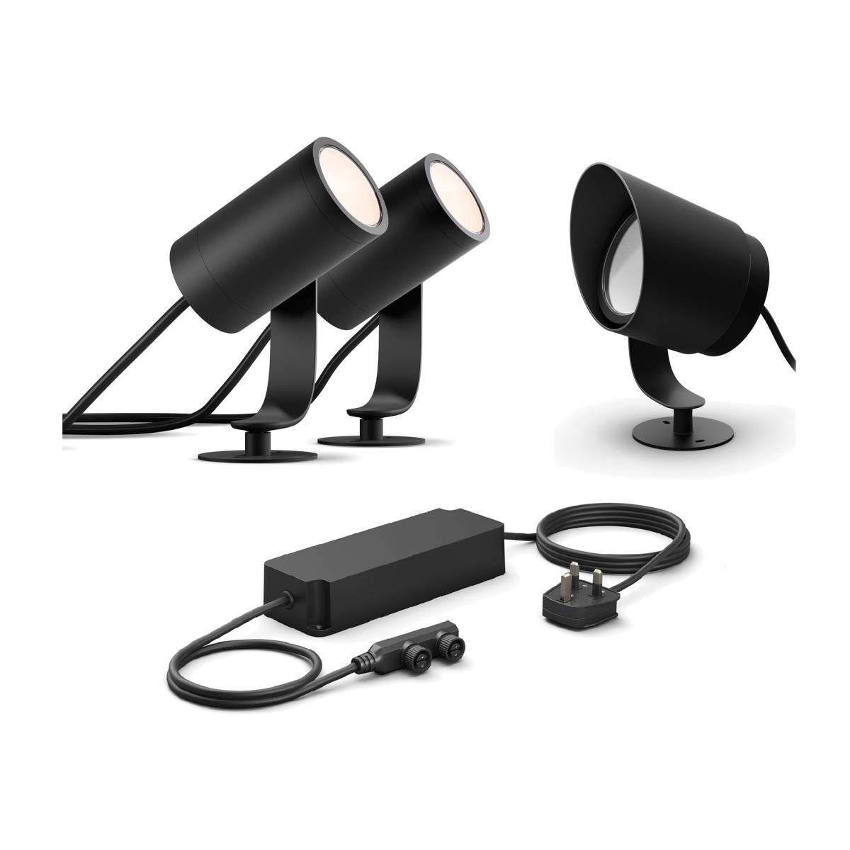 Add colour to your outdoors with Philips Hue Lily White & Colour Ambiance LED Smart Double Pack and Lily XL Extension Spotlight 100W Base Unit.