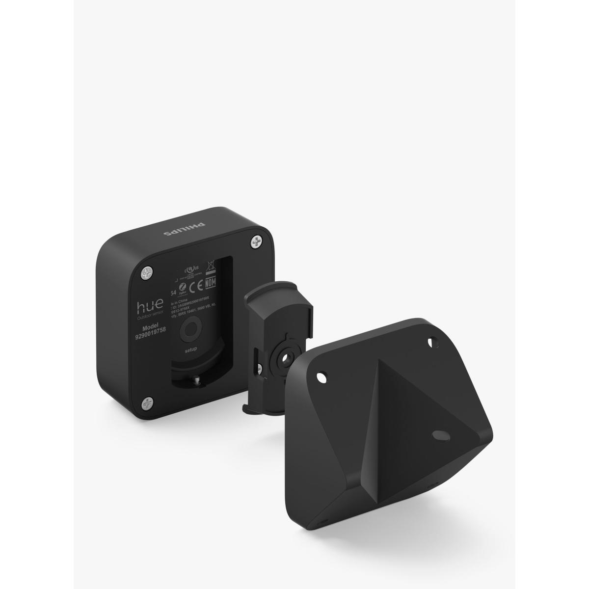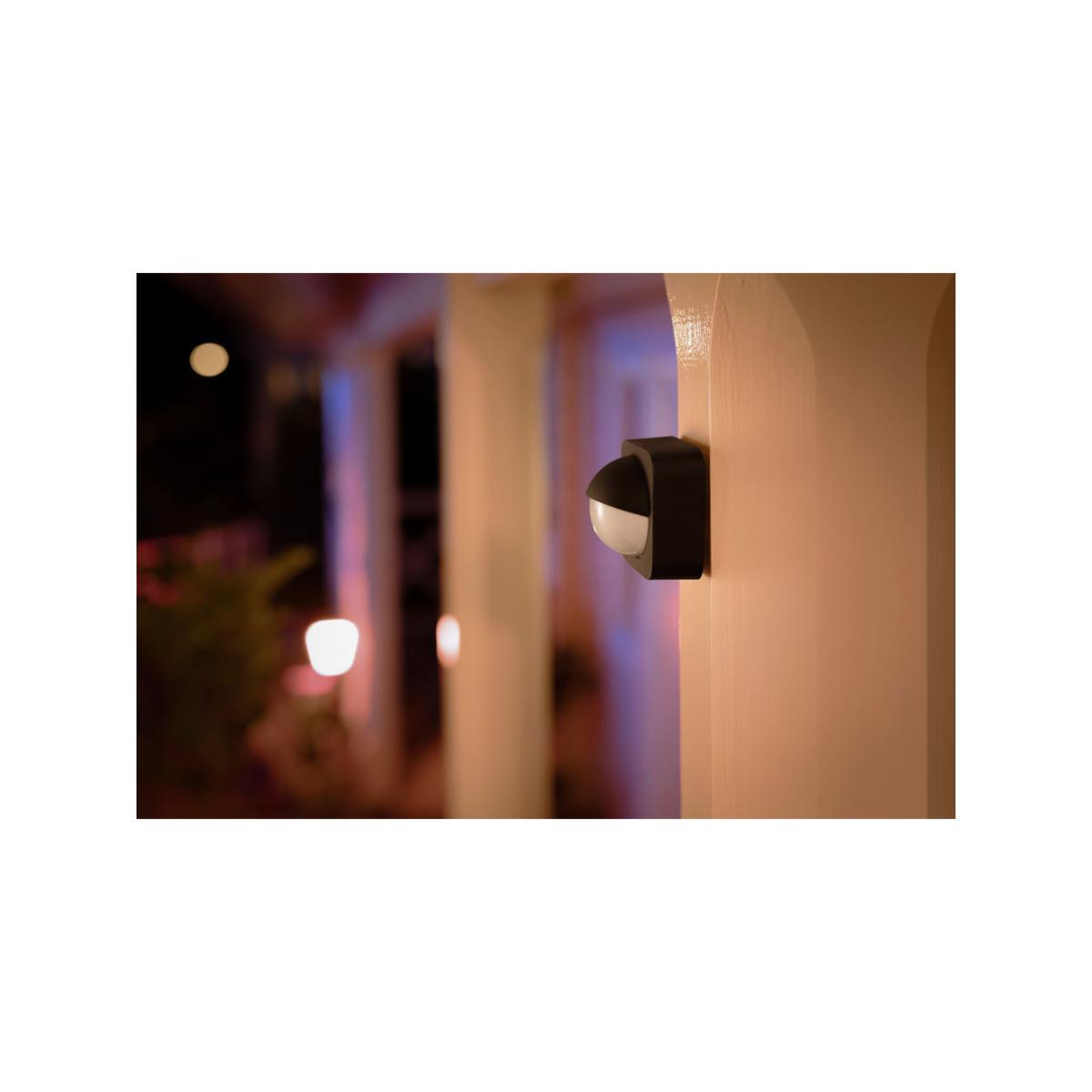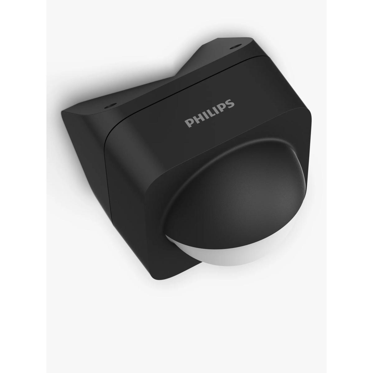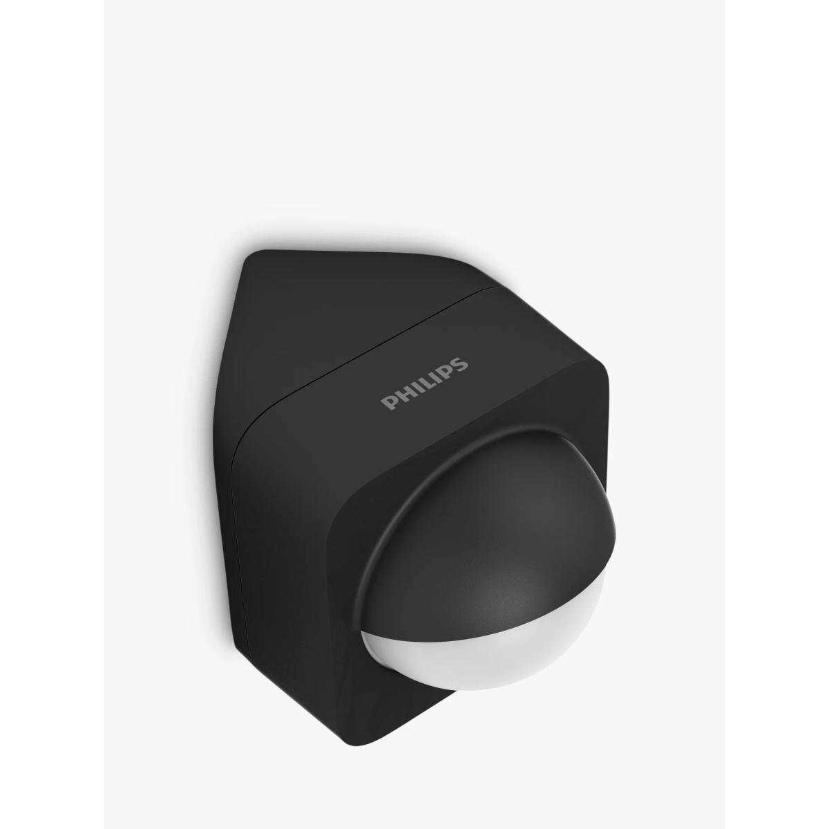 Control your outdoor and indoor lights automatically by adding this Philips Hue Outdoor Sensor to your system. Battery powered and completely wireless, it will trigger your Philips Hue lights to turn on automatically when someone passes by, thanks to a 12m PIR detection range. Thanks to its large view angle and range, the sensor will spot any movement near your home. By connecting the Hue Bridge with the Philips Hue app, pick which lights you want to turn on and when. The integrated dusk-to-dawn sensor ensures your lights only switch on when it detects darkness, helping you to conserve energy. Requires Philips Hue Bridge A Philips Hue Bridge is required for smart lighting control and available to purchase separately. Once connected, you'll experience the full potential of this smart light and can use the Philips Hue app to control it from your smart phone or tablet. Place it where you want This sensor comes with different mounting components so you can install it on a flat wall, or on the inner or outdoor corner of a wall or post. You can also mount it on a pole or drain pipe, so it's easy to place anywhere in your garden or around your house. Install in a matter of minutes Wireless and easy to mount, you don't need an electrician for installation. Set the sensor up and configure its daylight and motion sensitivity through the Philips Hue app. IP54 rated This sensor is specially designed for use in outdoor environments and has undergone rigorous testing to ensure its performance. Its IP54 rating means that it's protected against splashing water from any direction and will withstand heavy rainfall and other weather conditions.