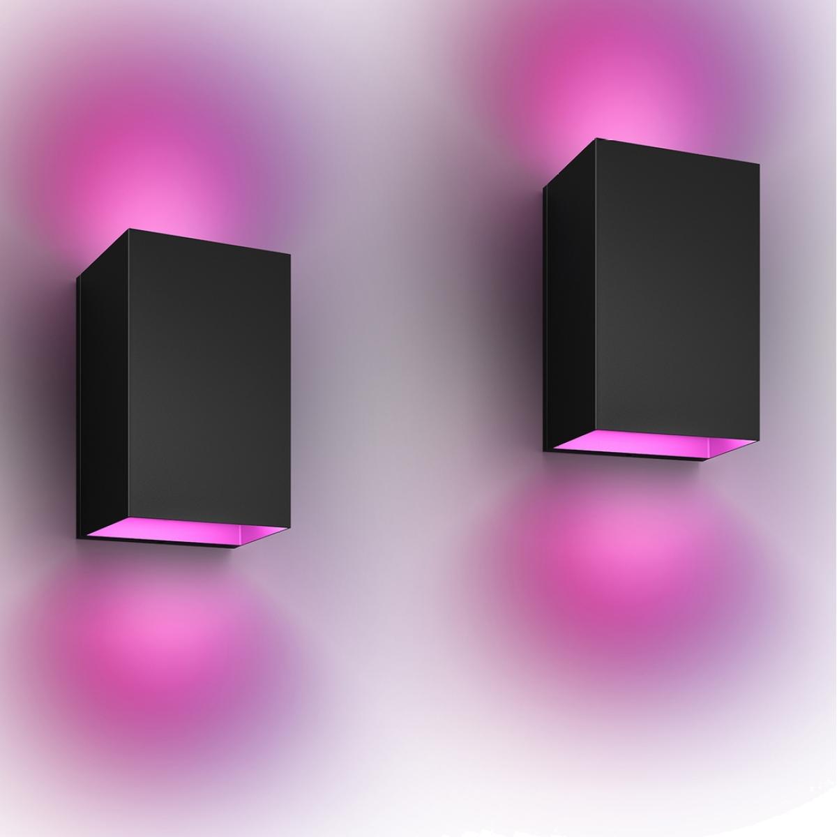 Directing its light in triangular light effects both up and down, this twin pack Resonate wall light in black allows you to illuminate your porches and patios with elegant, colourful light.