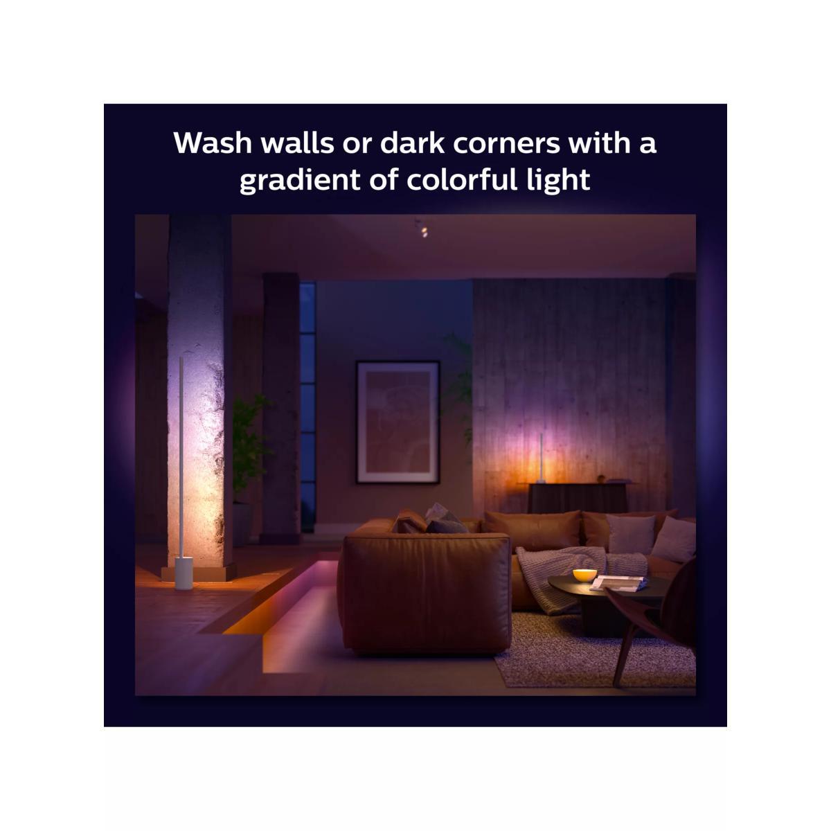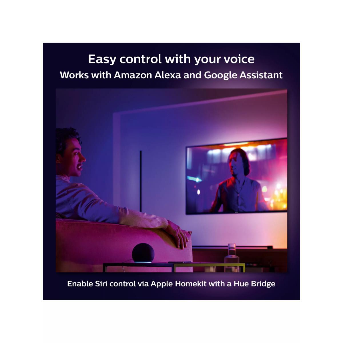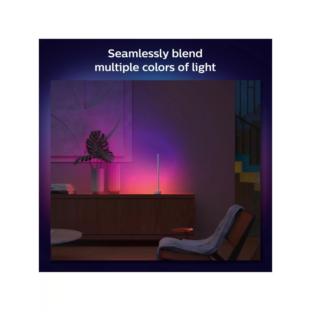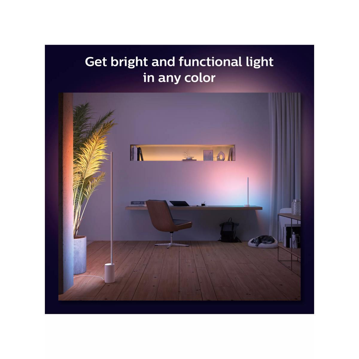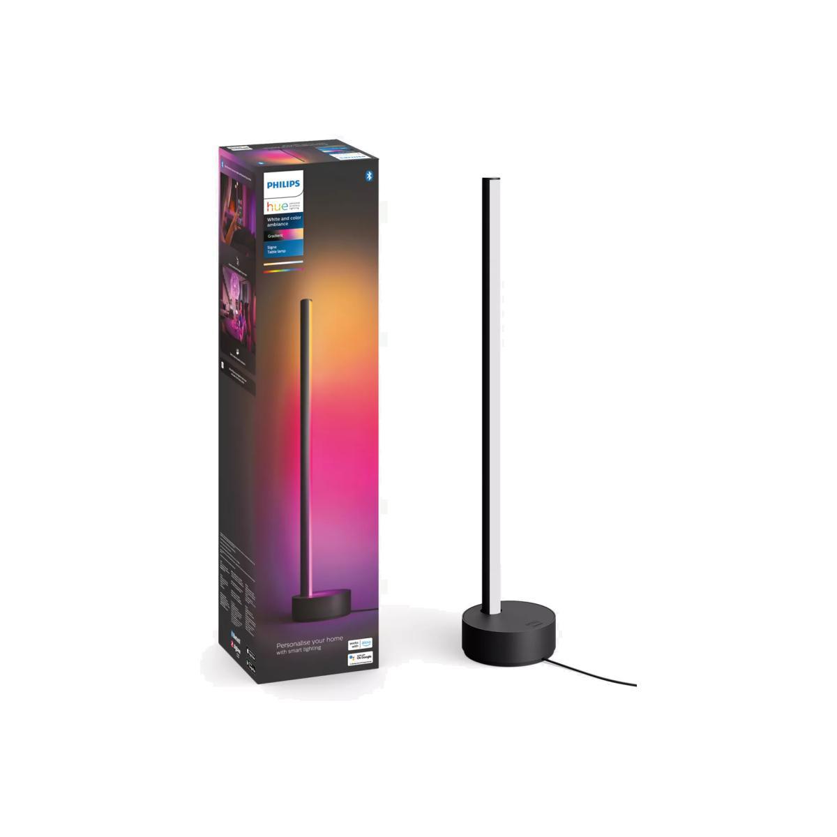 Get a gradient of colourful light with the Signe Gradient table lamp from Philips Hue. Create dynamic light scenes that blend any of millions of colours. You can control it directly from your smart device with Bluetooth, add the Hue Bridge for full connected smart light features, and even sync it to your TV for lighting that matches your home entertainment with the Hue Sync box. The Hue Bridge and Sync box are both sold separately. Play with colour Choose from 16 million colours including warm to cool white light to create an ambiance that suits any mood. Perfect for film nights, parties, bedtime stories, or just relaxing. Control lights with your voice Works with Alexa, Google Assistant and Apple Home Kit devices for hands-free voice control. Bluetooth With the Hue Bluetooth app (available on iO. S and Android), you can control this light directly from your smart phone, without the need for the Hue bridge. The app can control up to ten lights. Unlock all smart features with the Hue Bridge Add a Hue Bridge (sold separately) to your smart lights to experience the full suite of Philips Hue features. With a Hue Bridge, you can add up to 50 smart lights to control throughout the home, create routines, and control lights while away from home. Sync your lights with entertainment with the Hue Sync box And if you add the Hue sync box too (also sold separately) you can augment your home entertainment with synchronised lighting. Enjoy your smart lighting matching the colours or rhythms of your films, music or games.