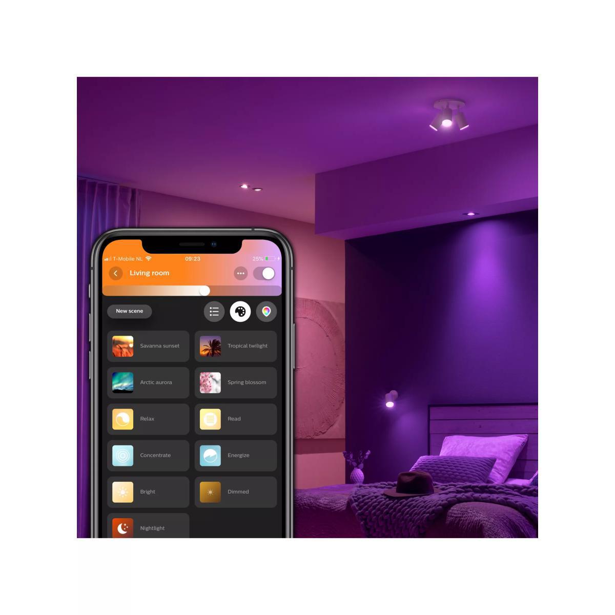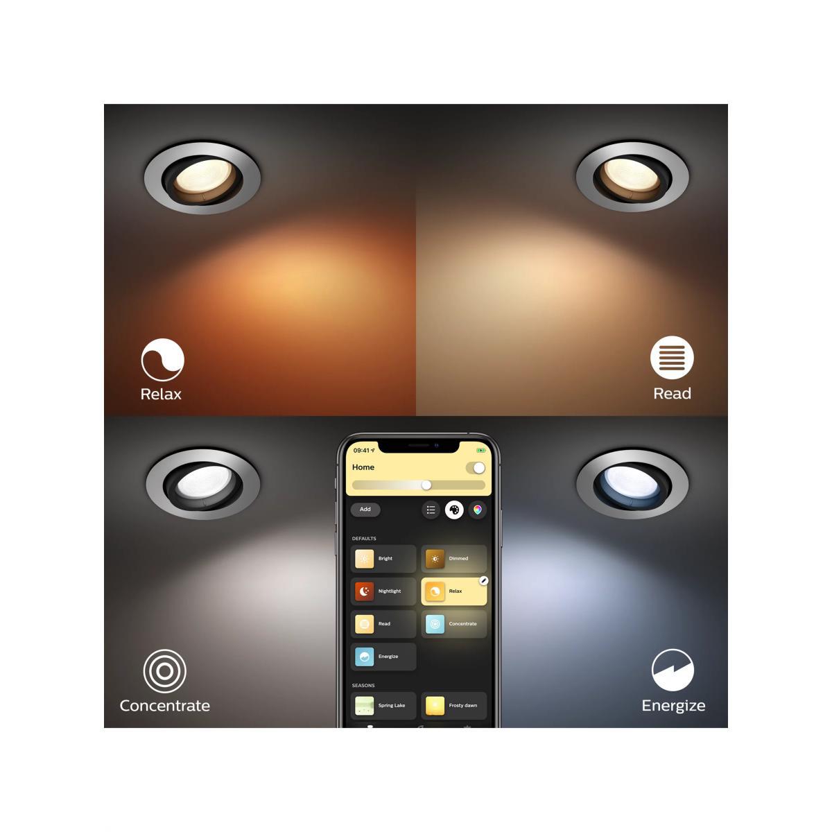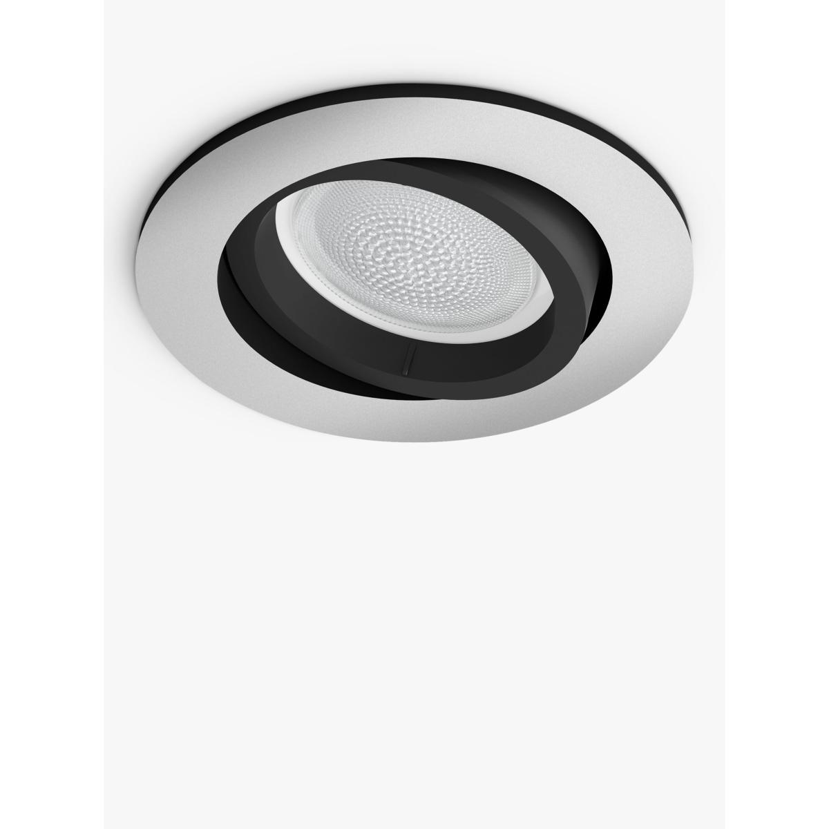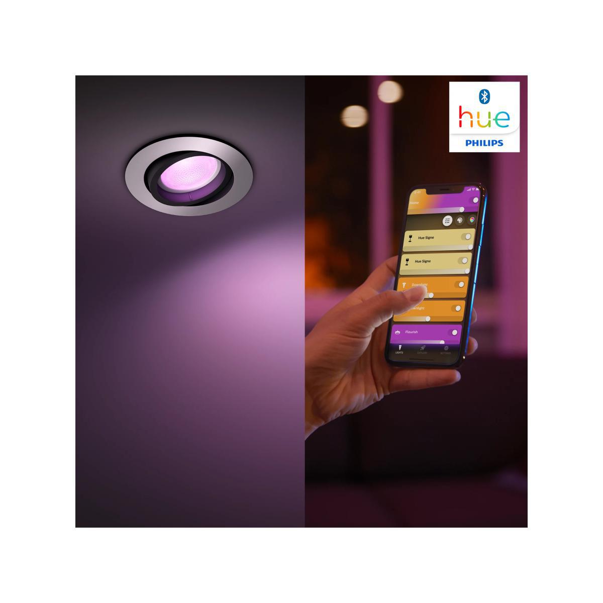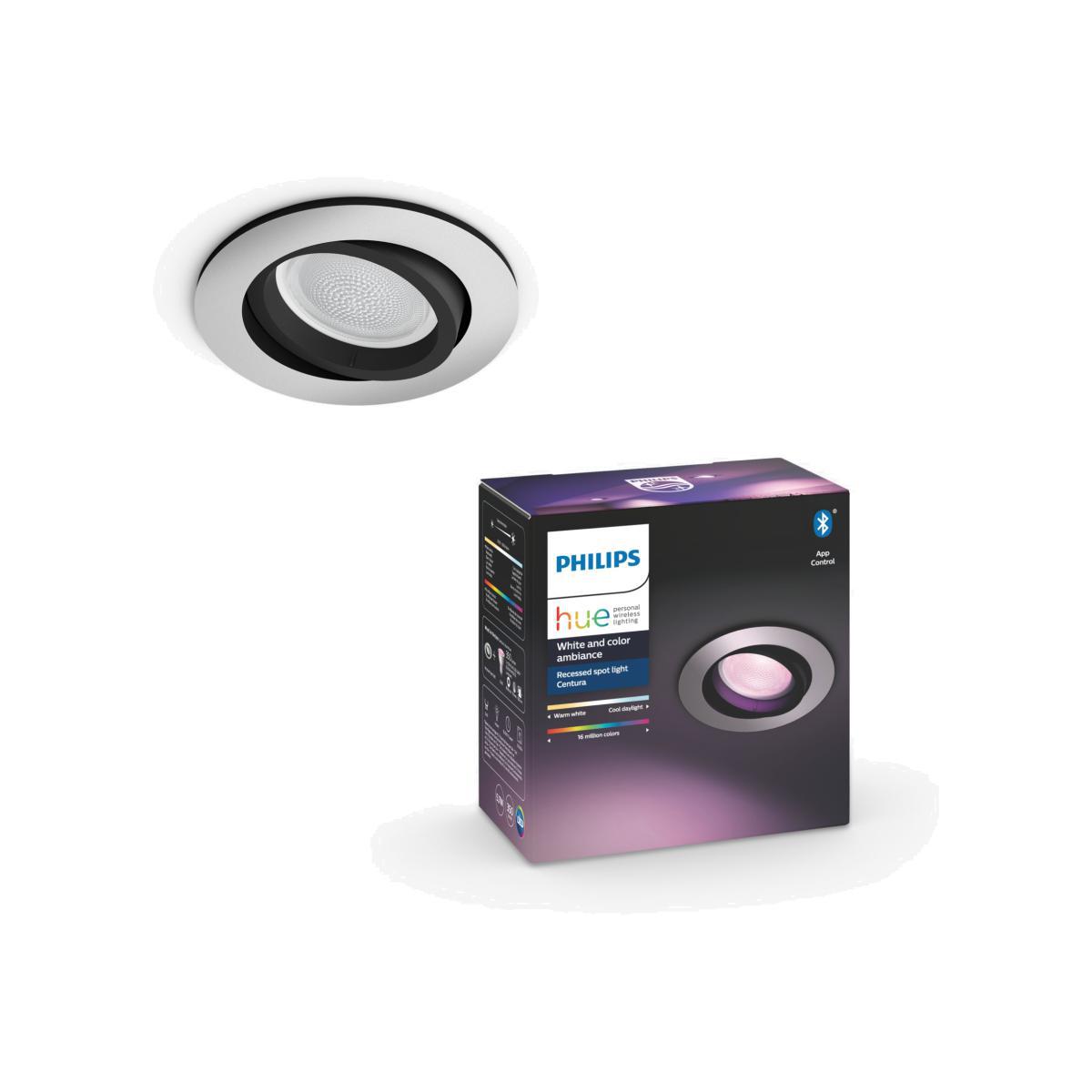 The Centura recessed spotlight from Philips provides a direct wash of light exactly where you need it. Designed with a powerful LED and Hue technology, this smart ceiling light allows you to create the perfect ambience with shades of white and coloured light. What's more, it's easier than ever to operate, with the compatible Bluetooth app and voice demands, as well as the Hue Bridge, available to purchase separately. Smart control straight out of the box This light works with the free Philips Hue Bluetooth app. Simply install your new Hue light and connect to the Bluetooth app for instant, smart lighting control. Shades of light Transform your space with shades of coloured light, ideal for setting the scene when hosting parties at home. The light is fully dimmable so you can can also tune different shades of warm and cool white light to match the time of day. Built-in light recipes Cool-toned, bright-white daylight is best at the start of the day as it helps to energise your body and mind. A soft glow of warm white light is better in the evening and will help you to unwind and relax. Voice-assisted, hands-free control Control this light with simple voice commands. Philips Hue works with Alexa and the Google Assistant when paired with a compatible device. Unlock additional features with the Hue Bridge To experience the full potential of this smart light, connect to a Philips Hue Bridge (optional extra, available to purchase separately). Additional Philips Hue features include: setting timers and routines with light, controlling your lights remotely and automating your entire smart home lighting set up. There's also the option to add other accessories, including motion sensors and smart switches.